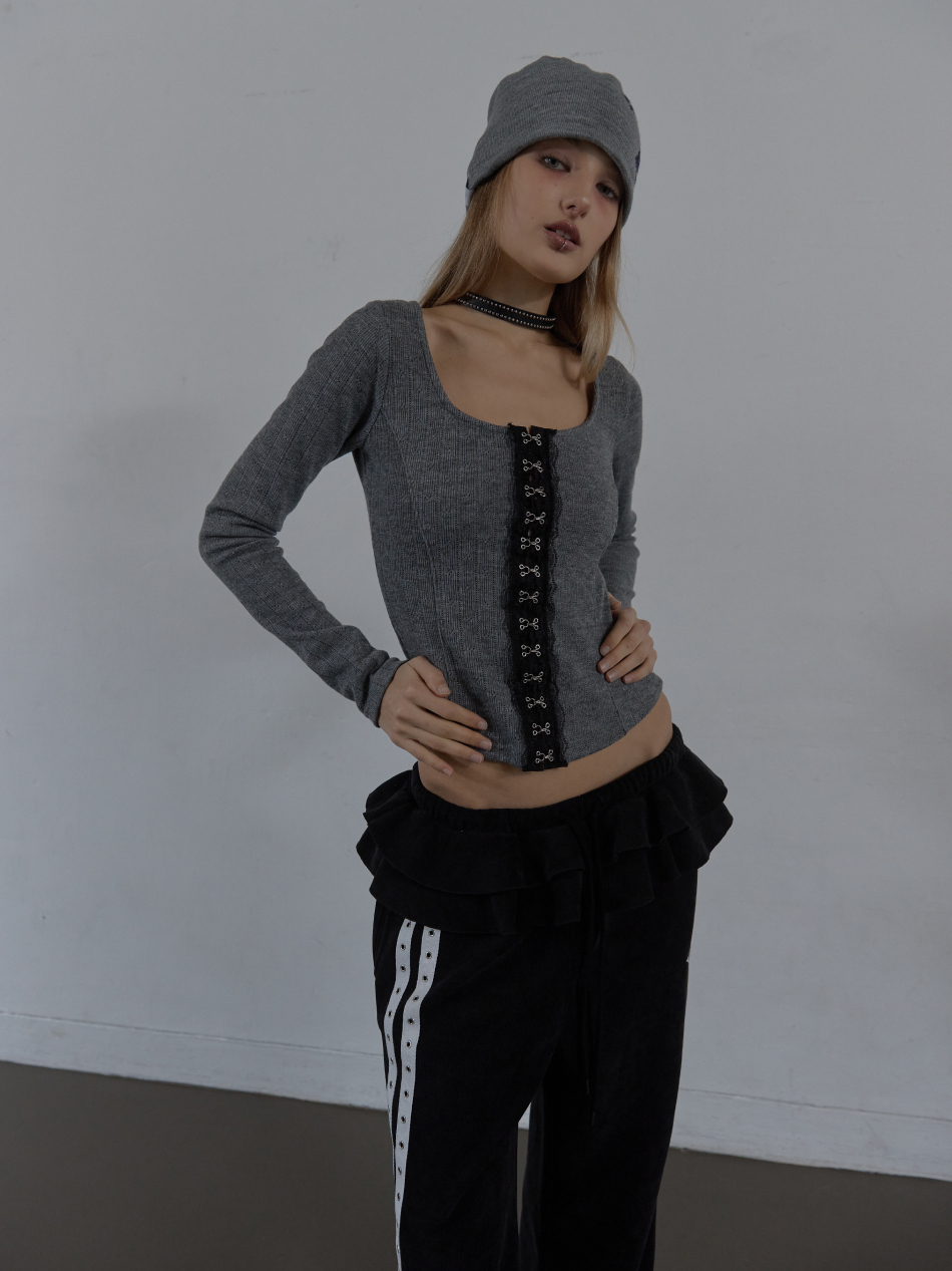 HOOK LONG SLEEVE TOP / CHARCOAL