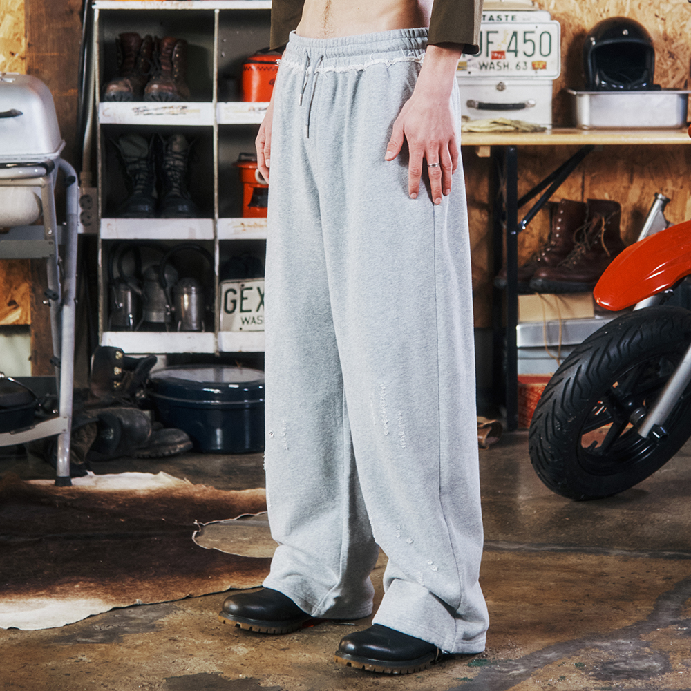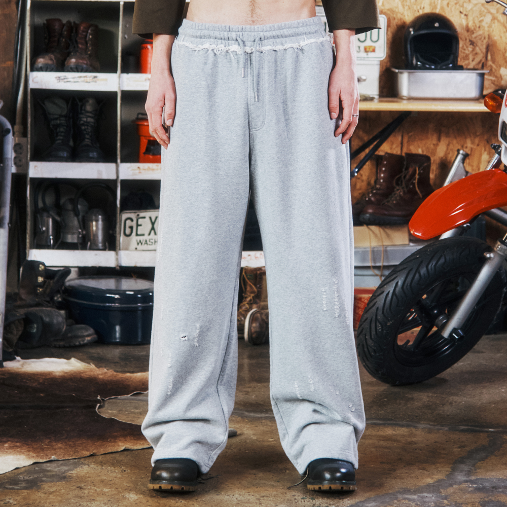DAMAGED SWEAT PANTS GREY