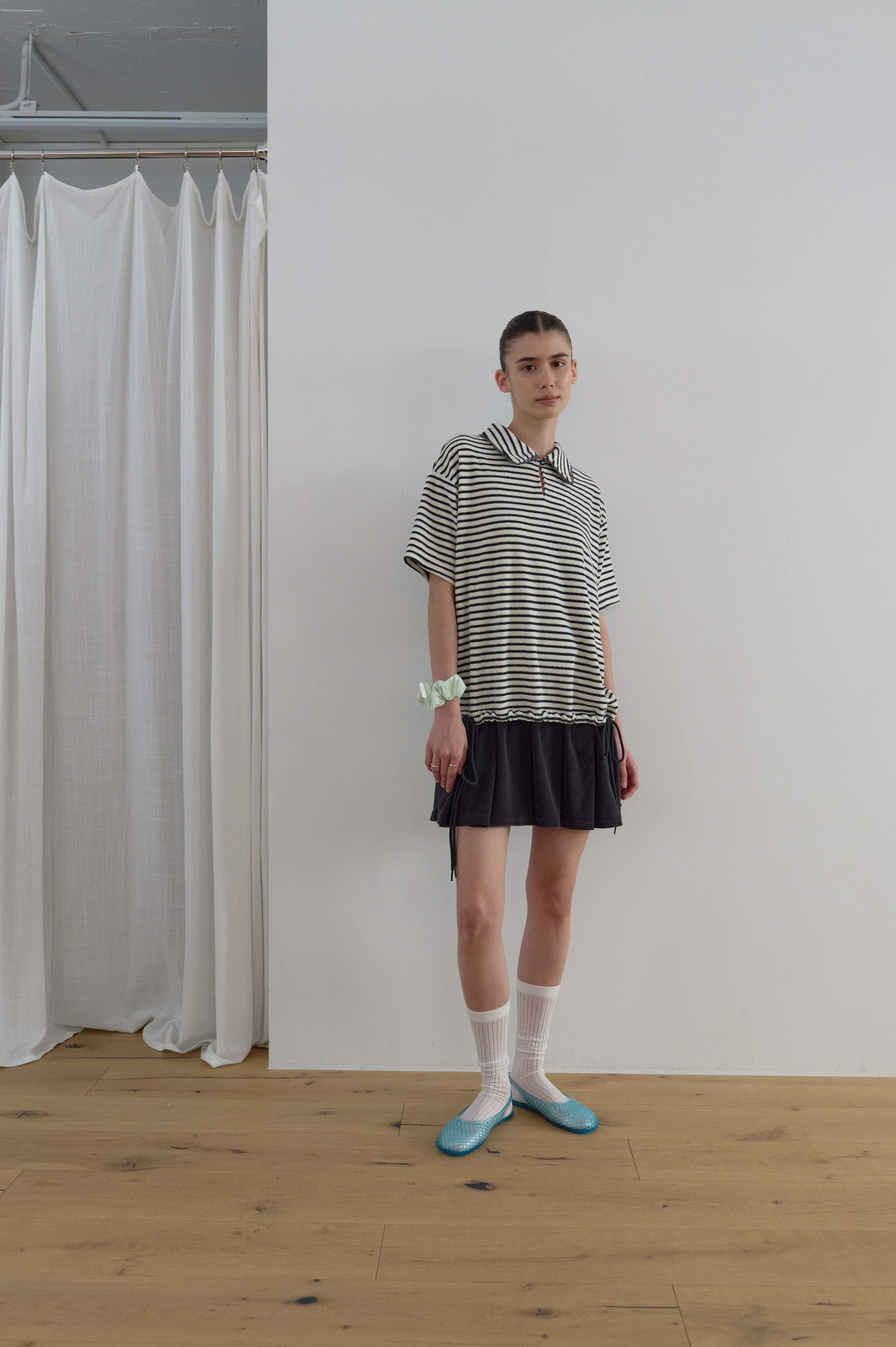 TERRY PLEATS MINI DRESS_CHARCOAL