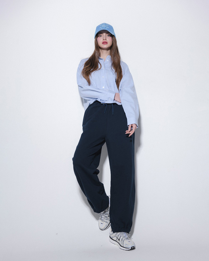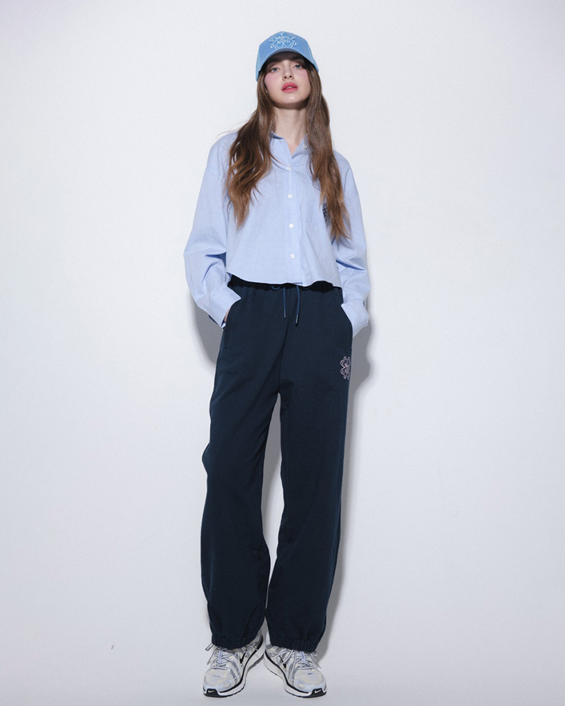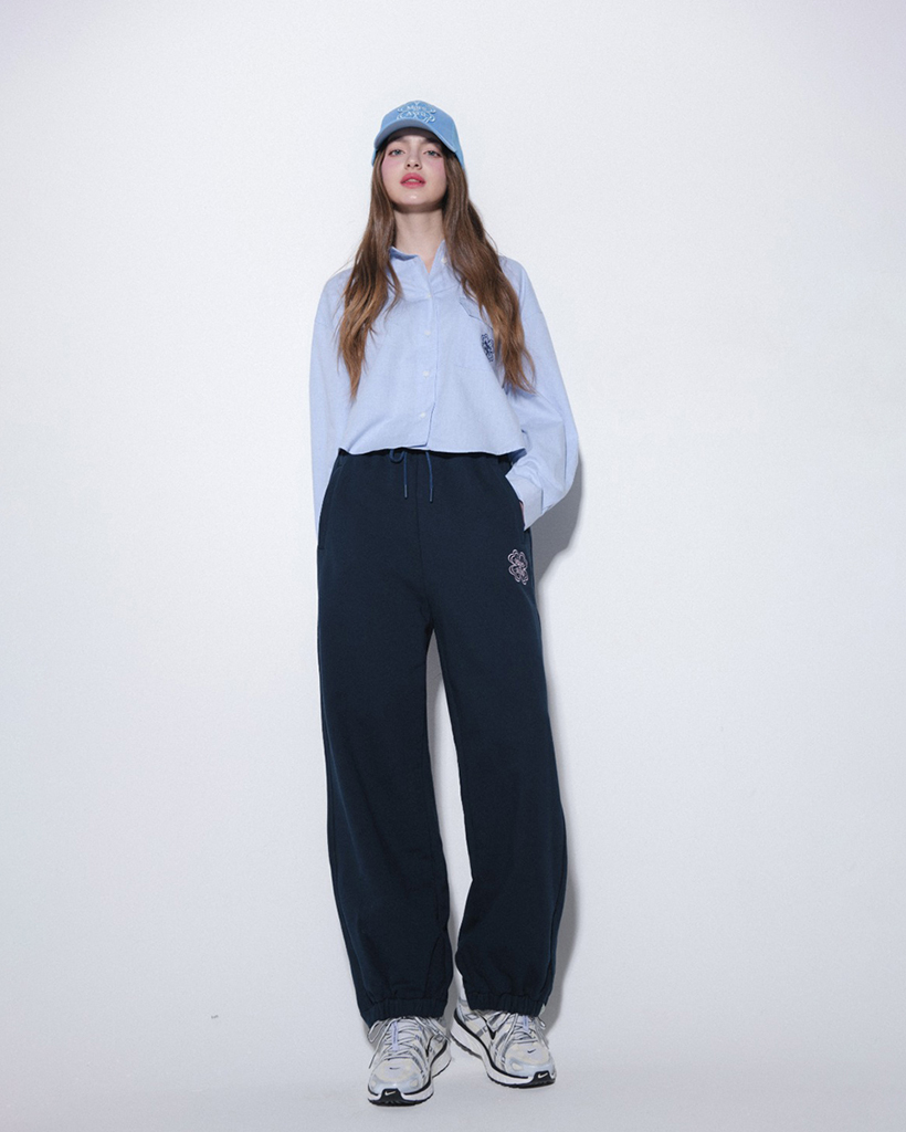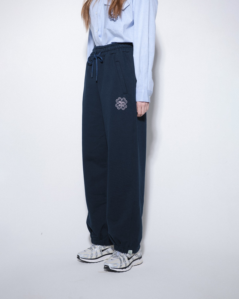 CLOVER NEEDLEWORK ZIPPOCKET SWEAT PANTS_NAVY PINK/BEIGE IVORY