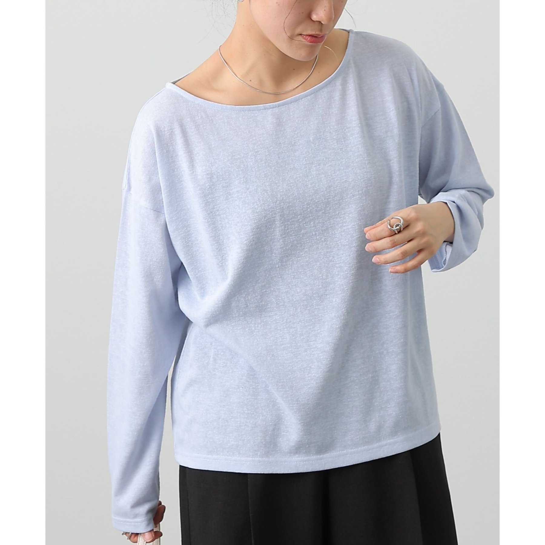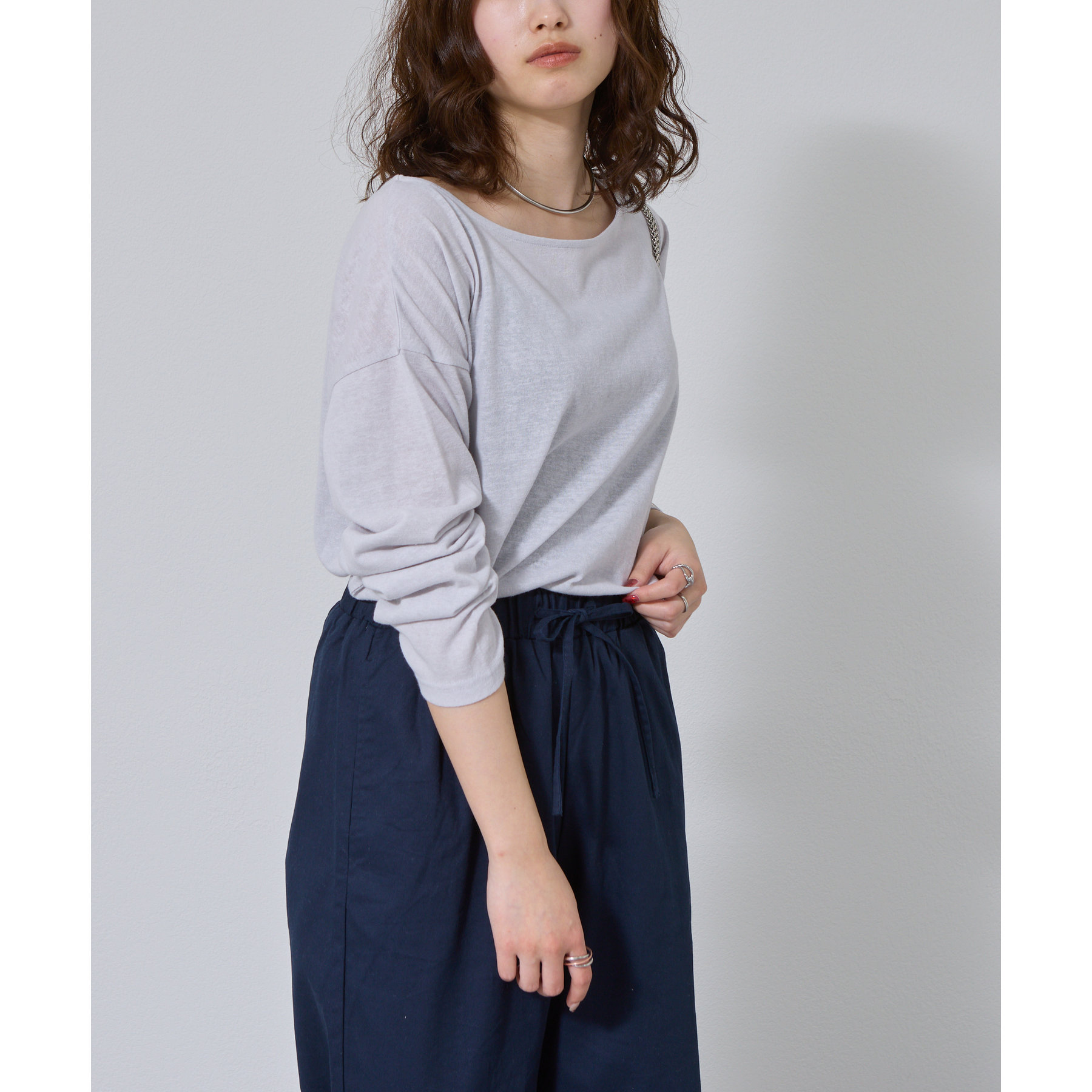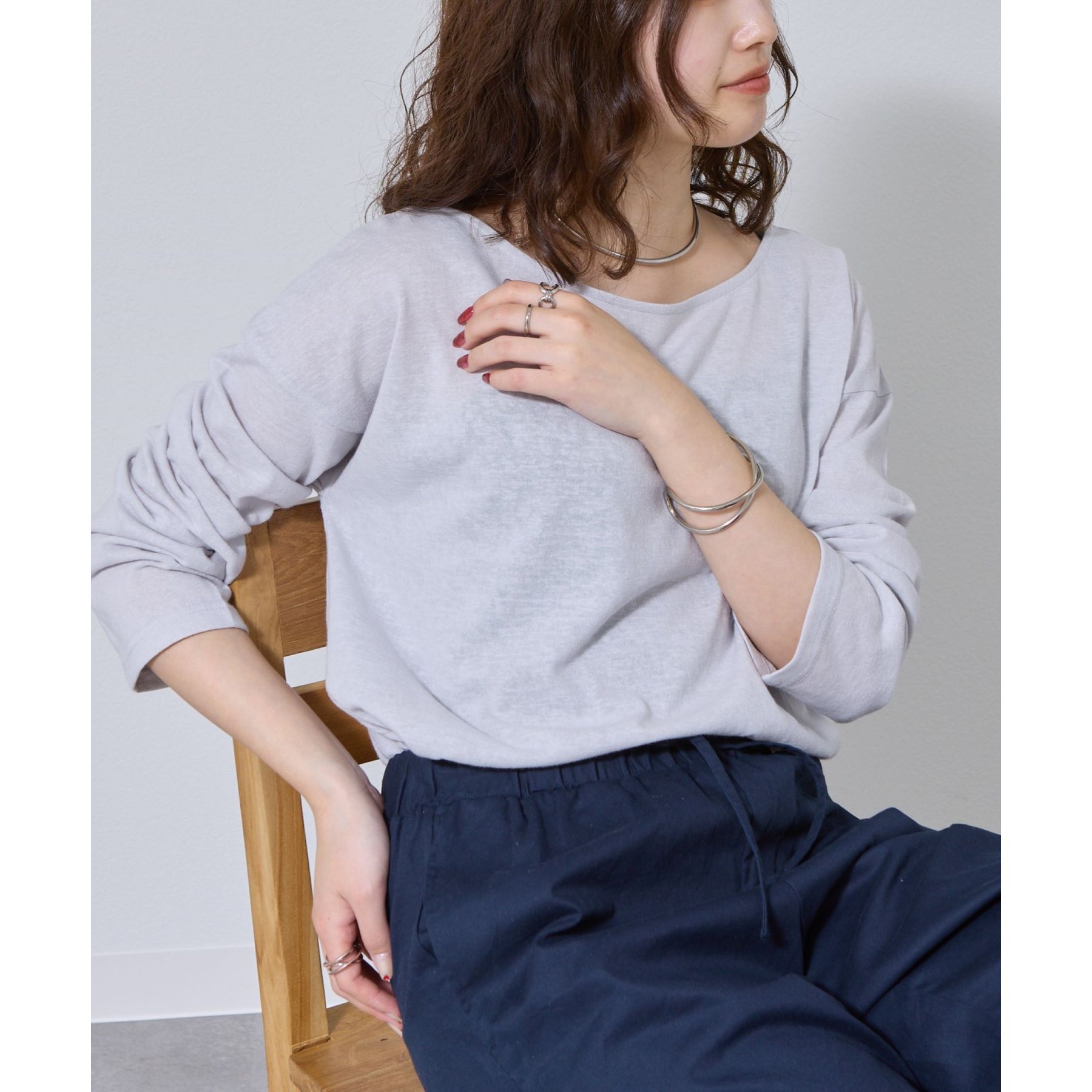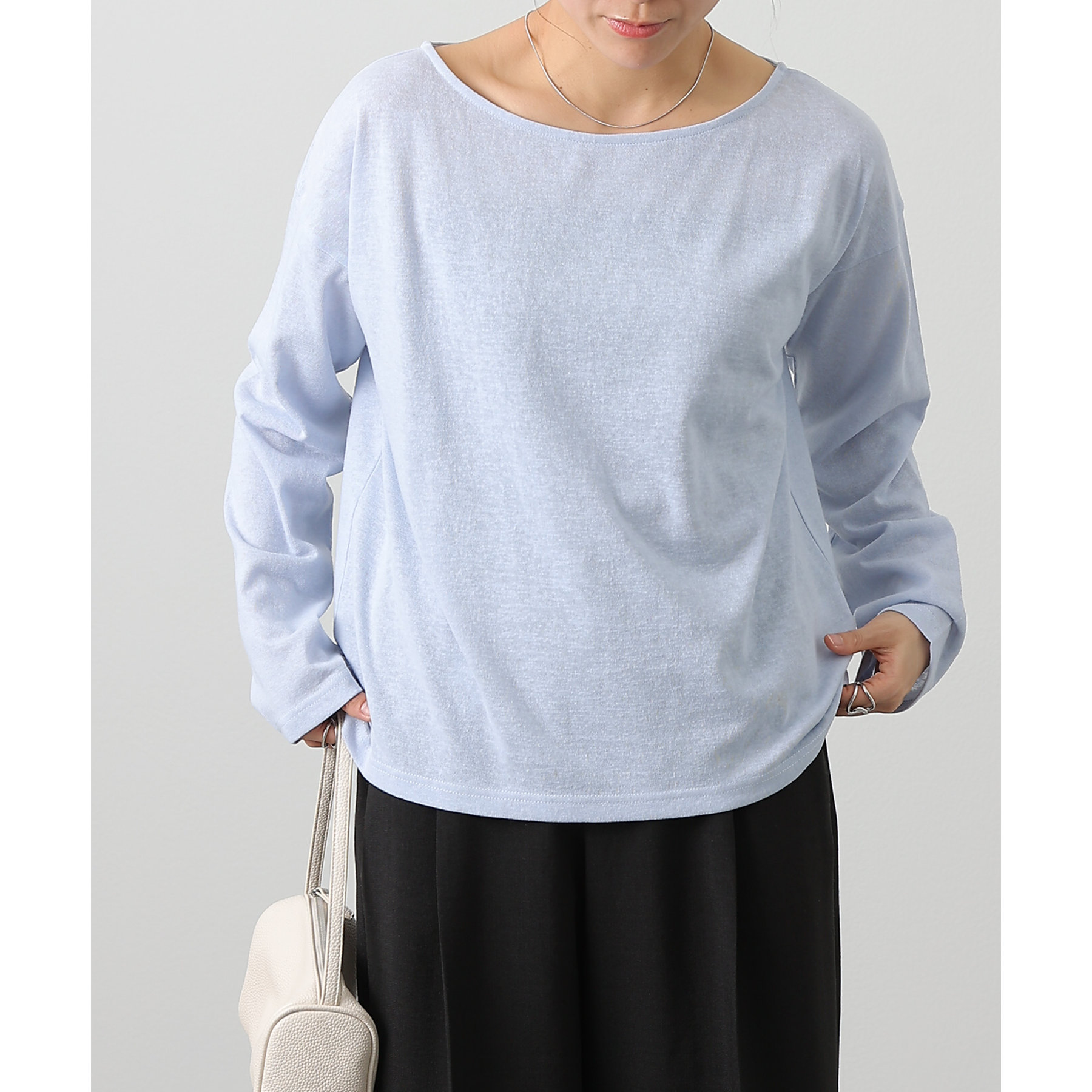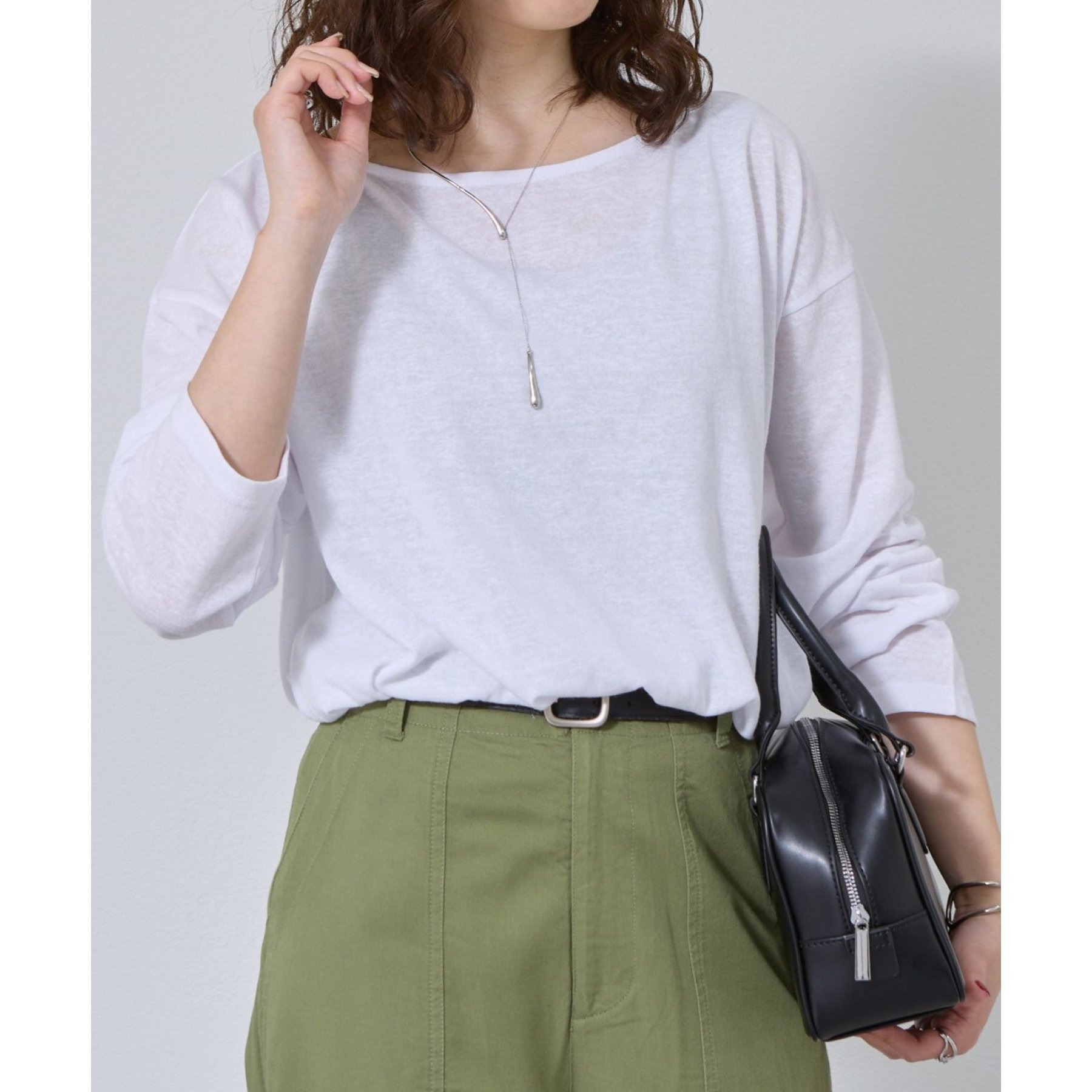 一枚着でもインナーとしても様になるネックラインで抜け感をプラス。