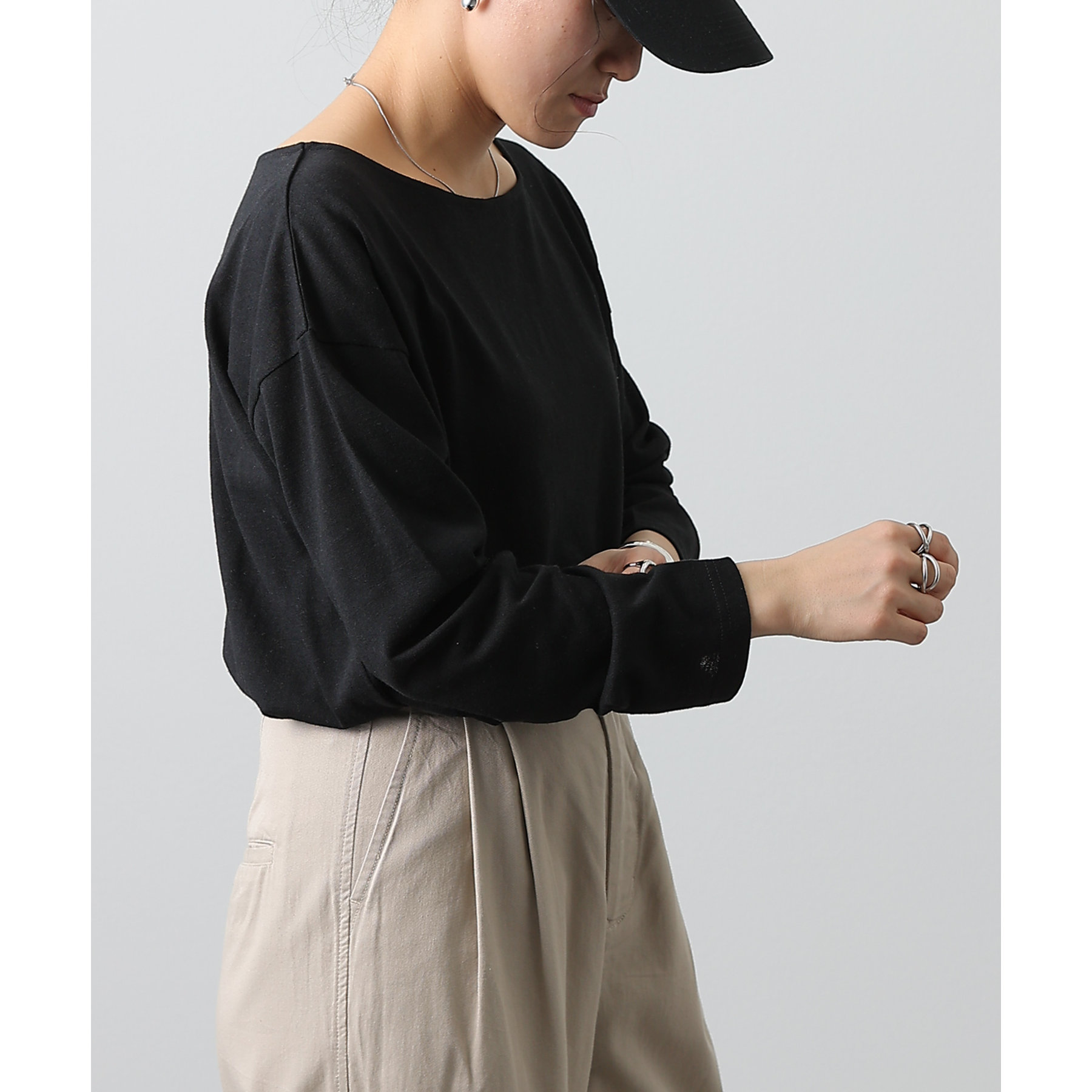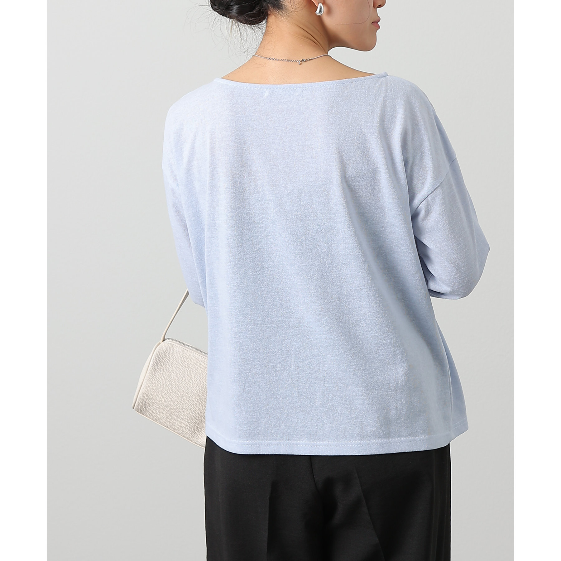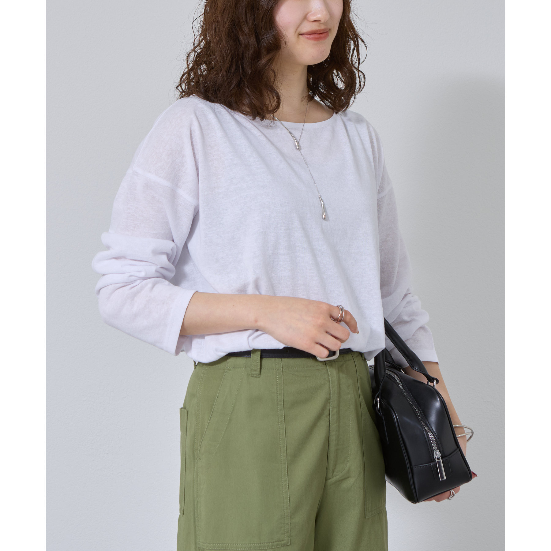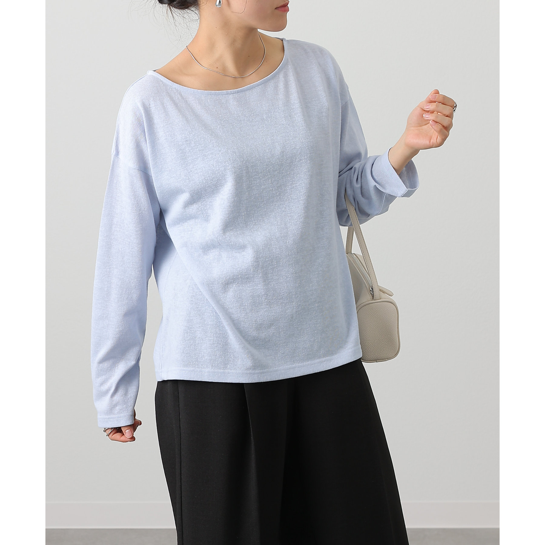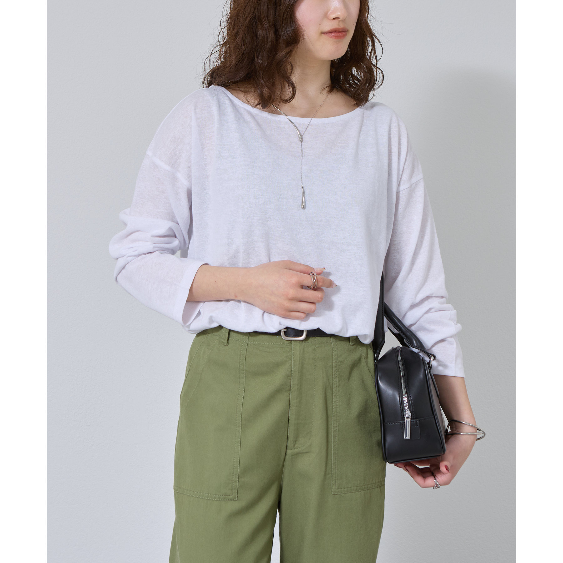 一枚着でもインナーとしても様になるネックラインで抜け感をプラス。