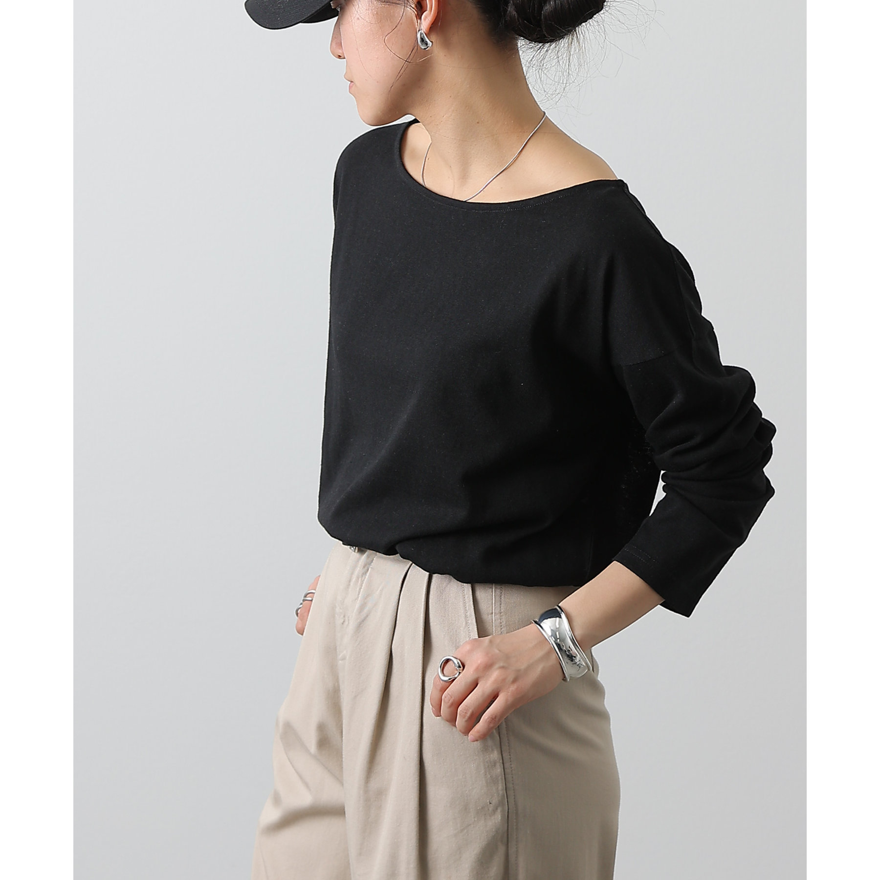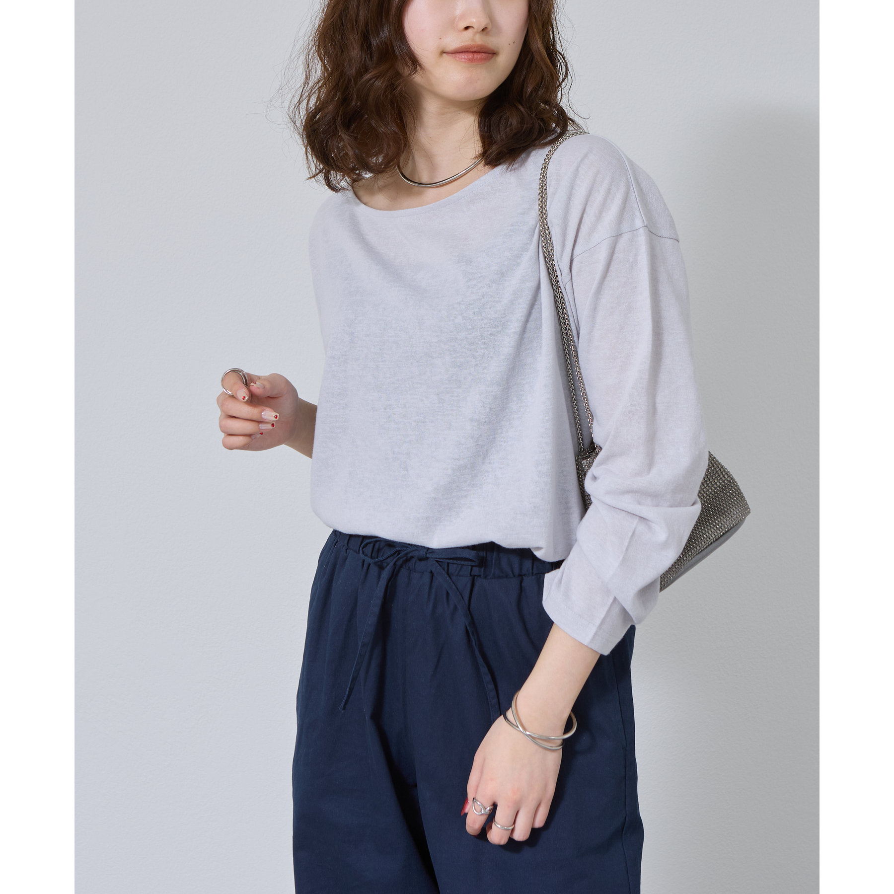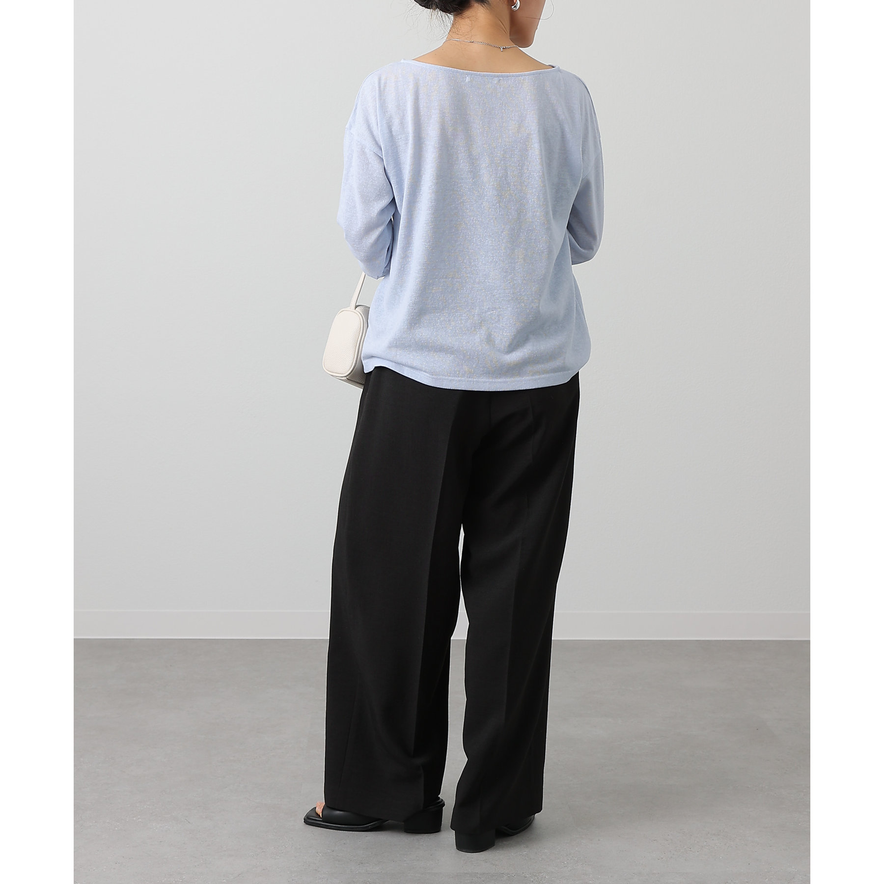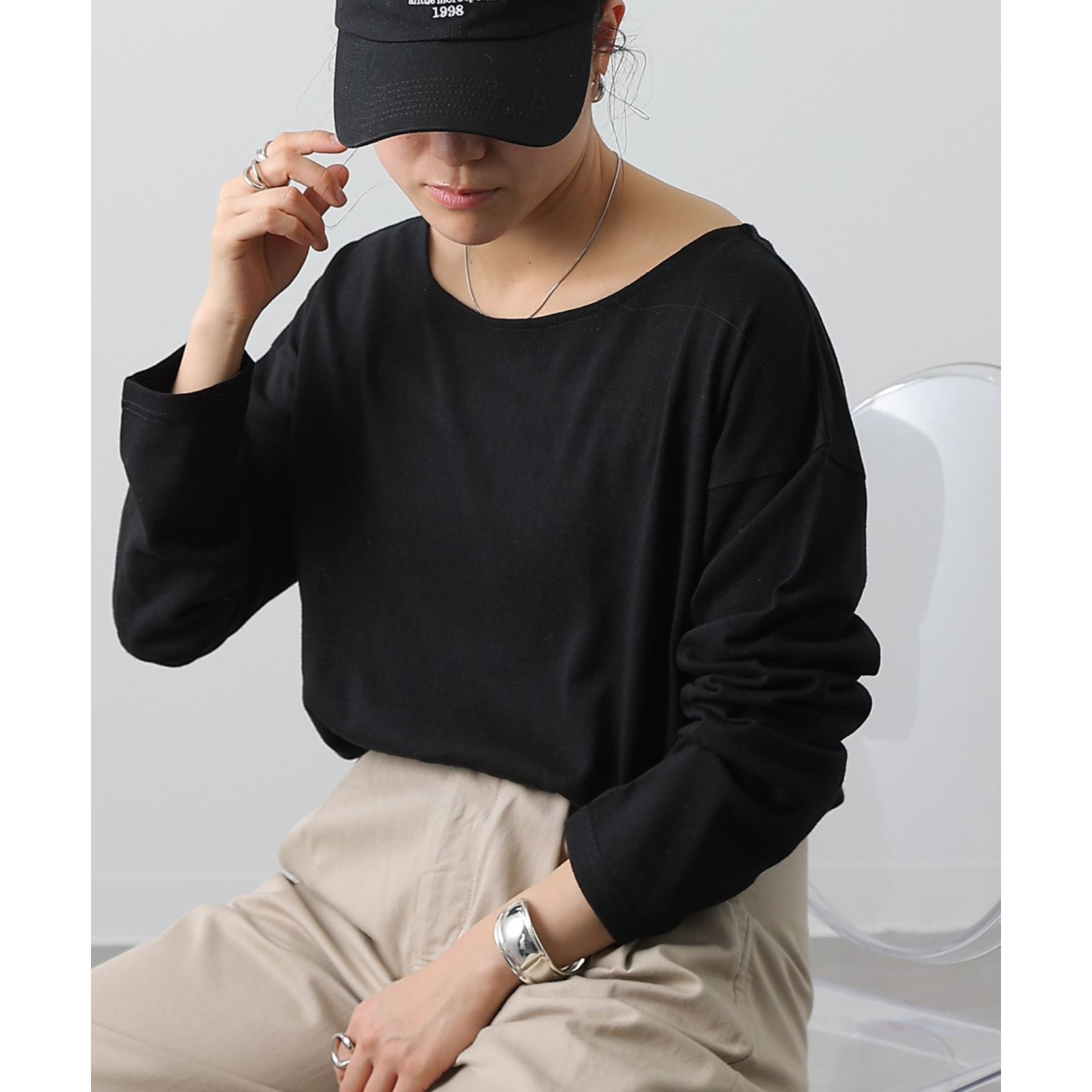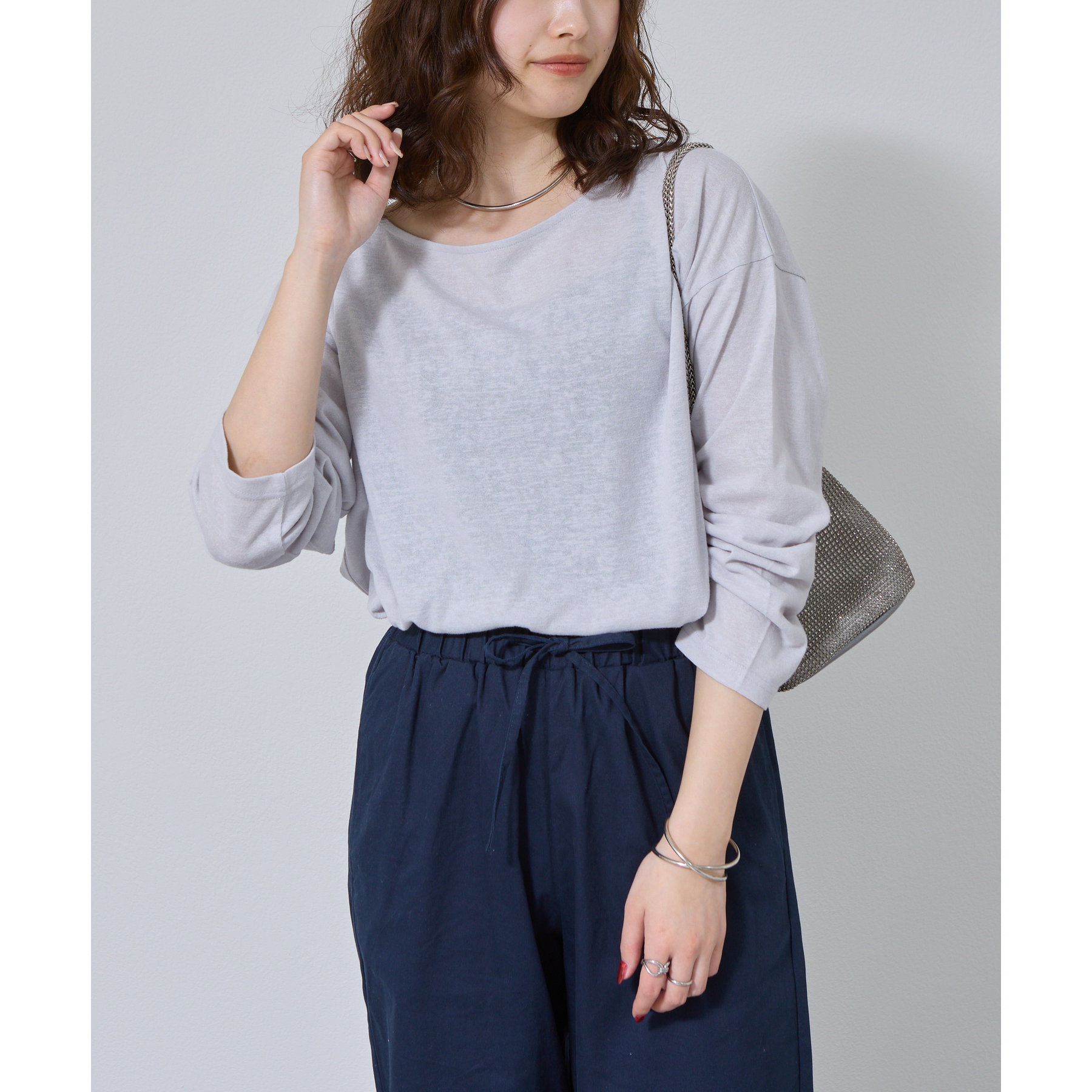 一枚着でもインナーとしても様になるネックラインで抜け感をプラス。