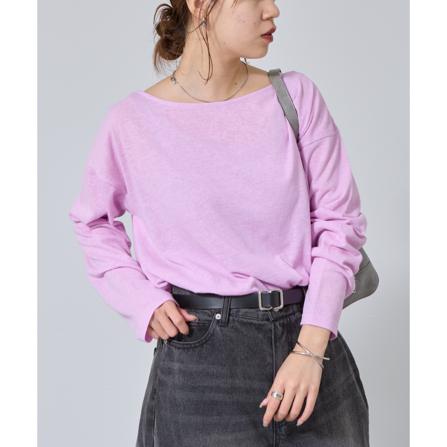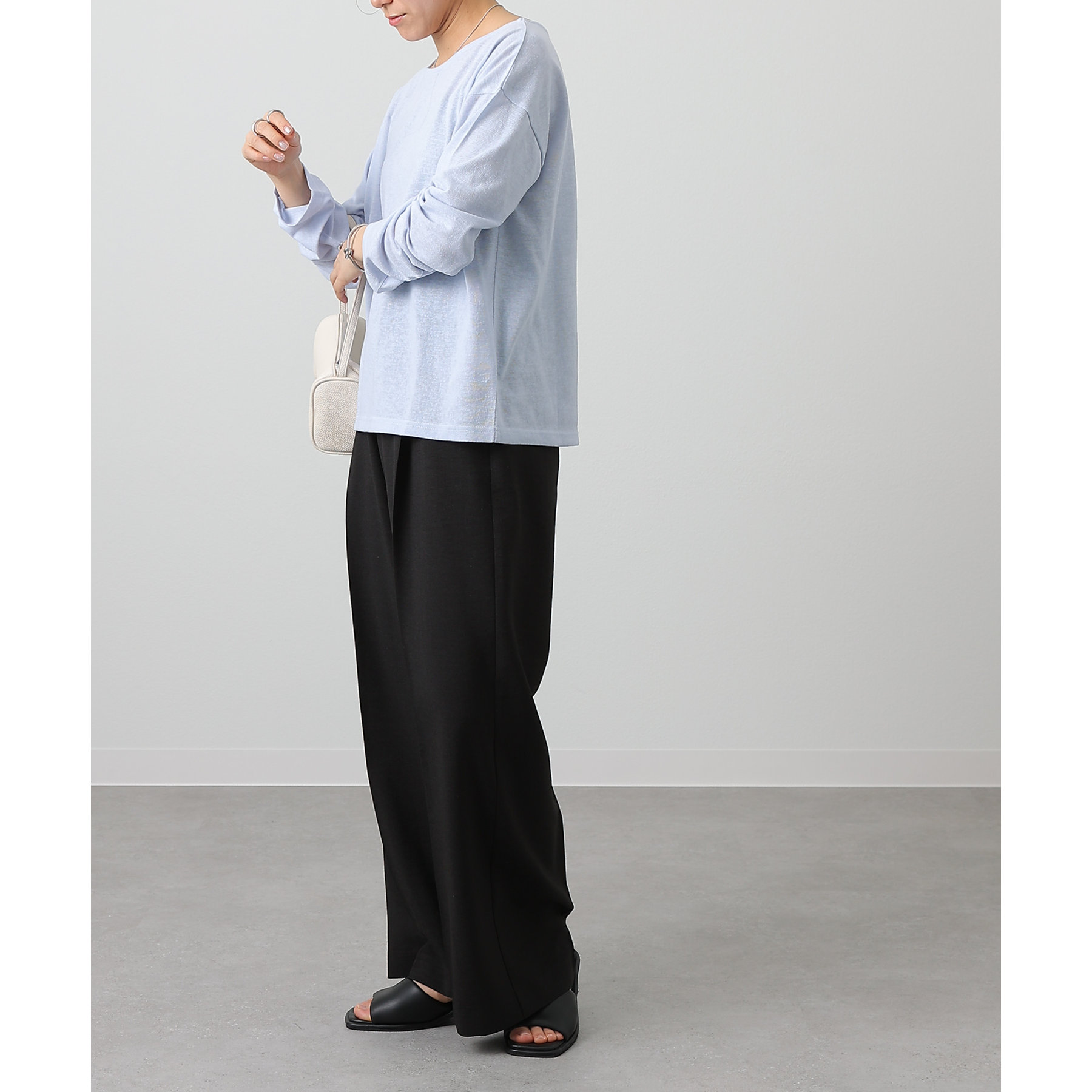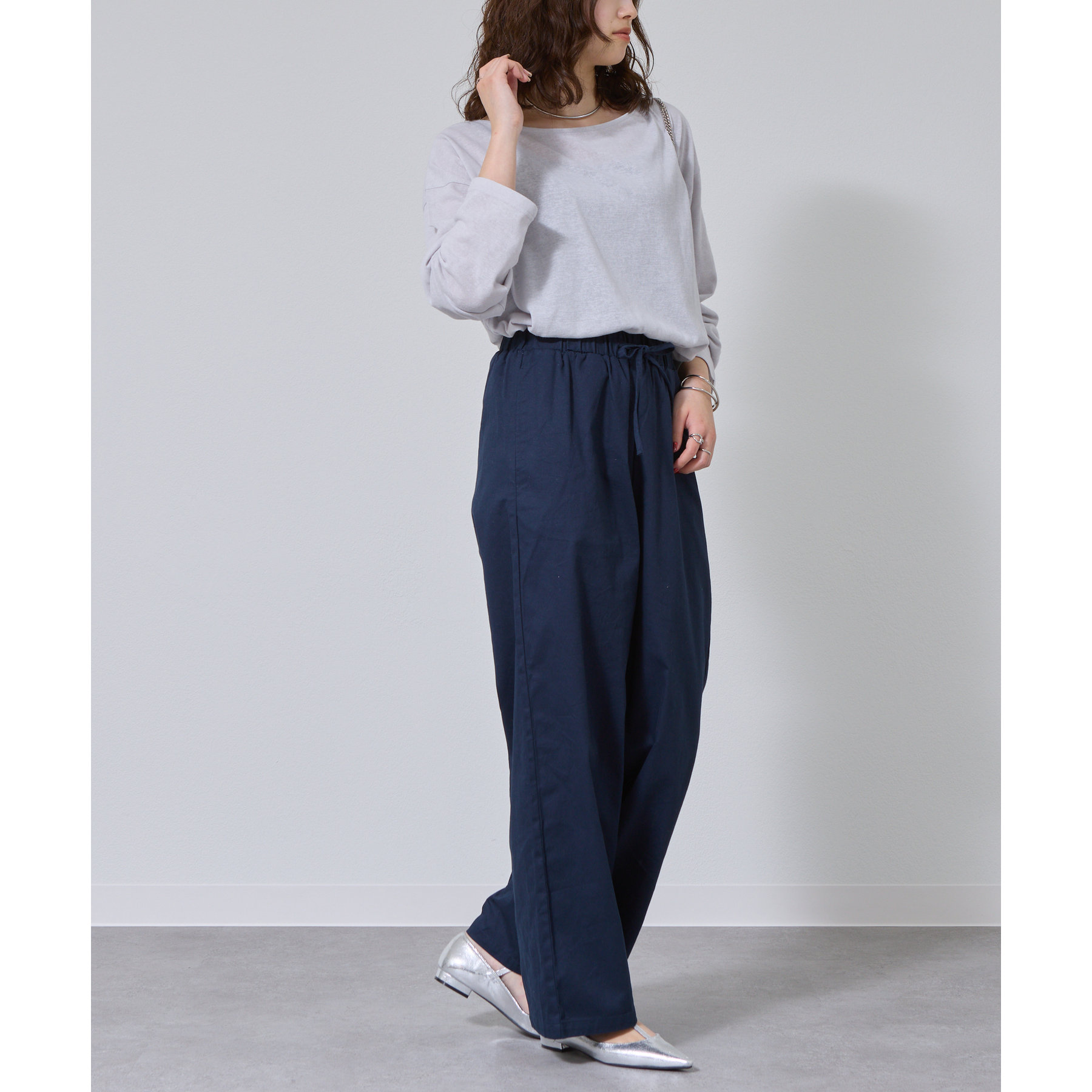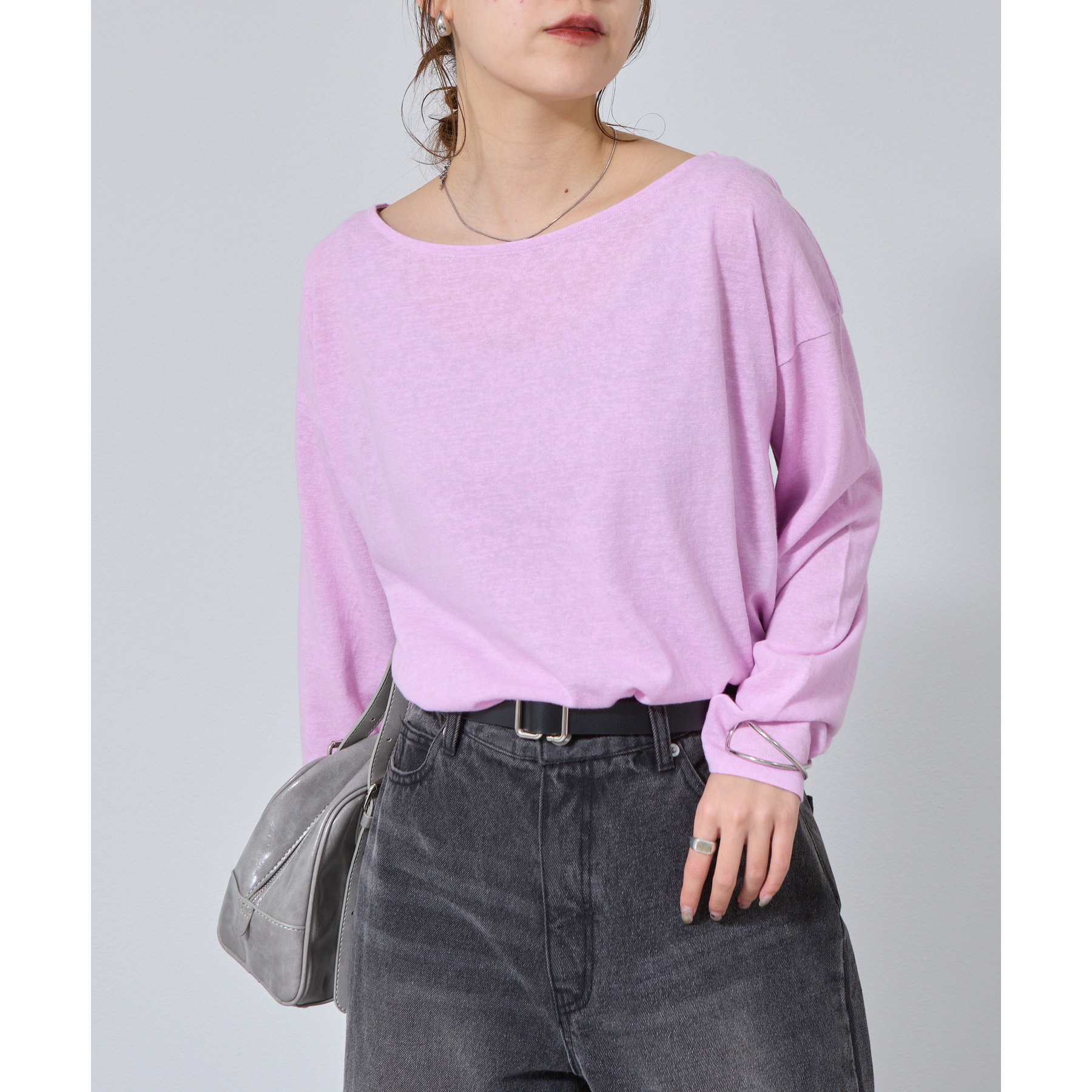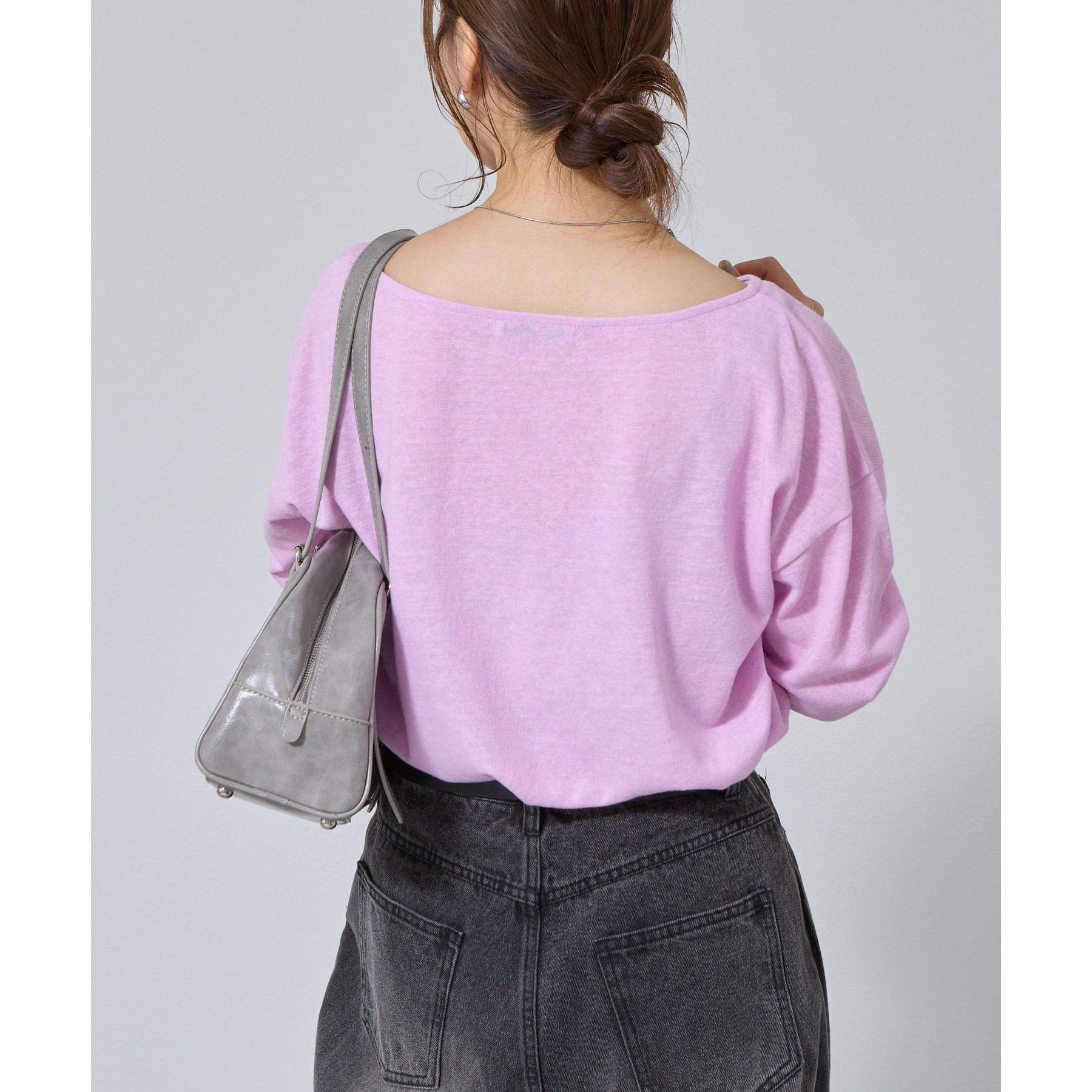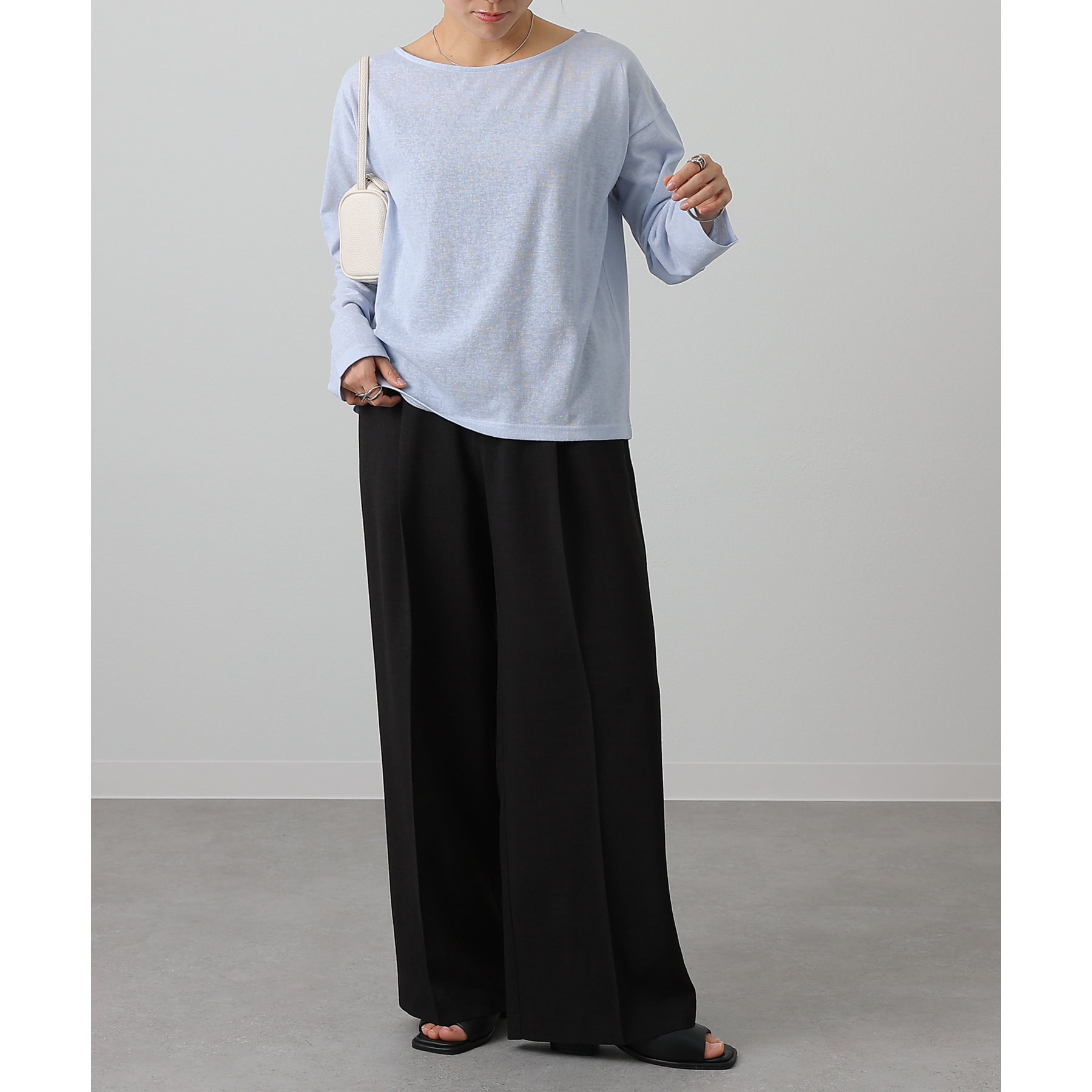 一枚着でもインナーとしても様になるネックラインで抜け感をプラス。