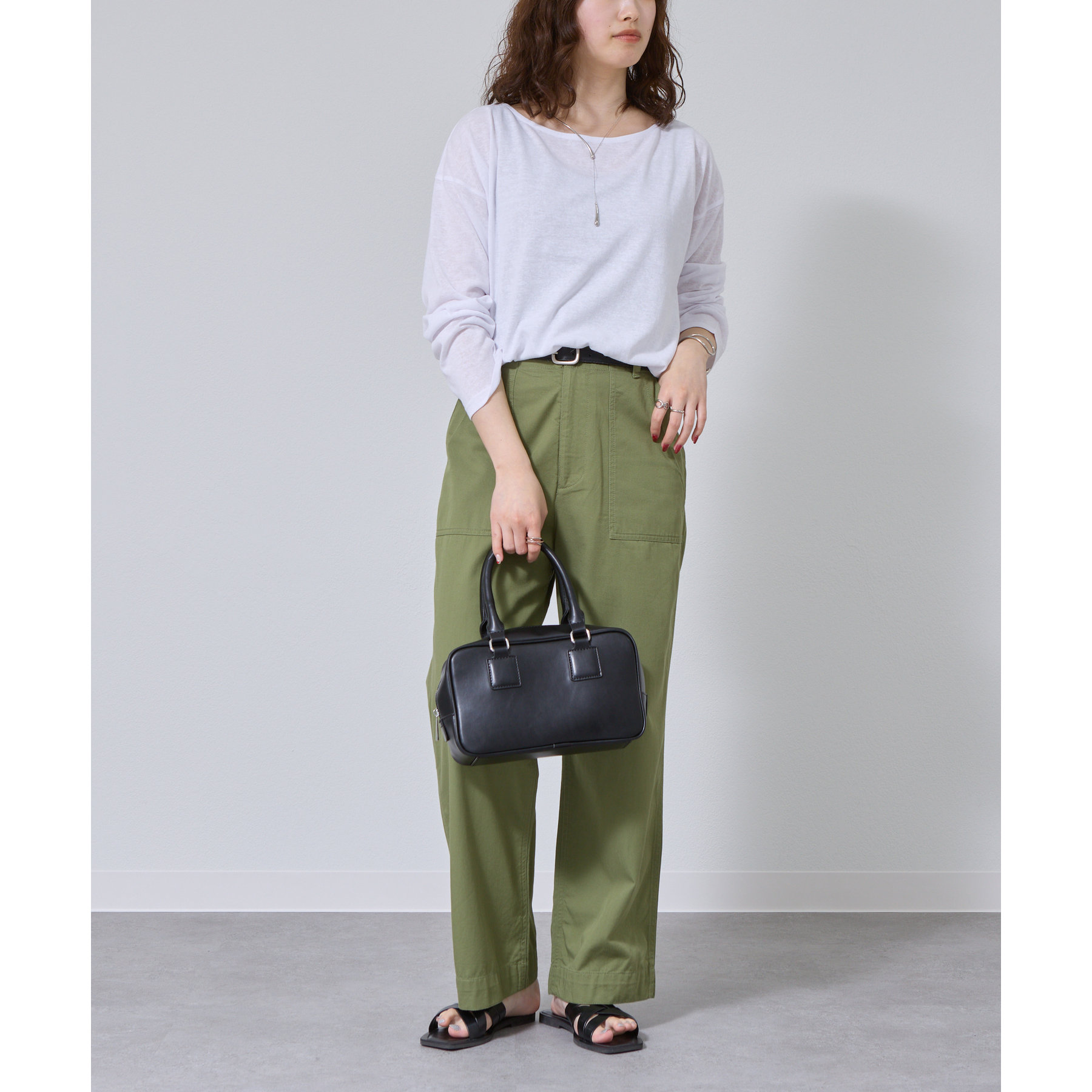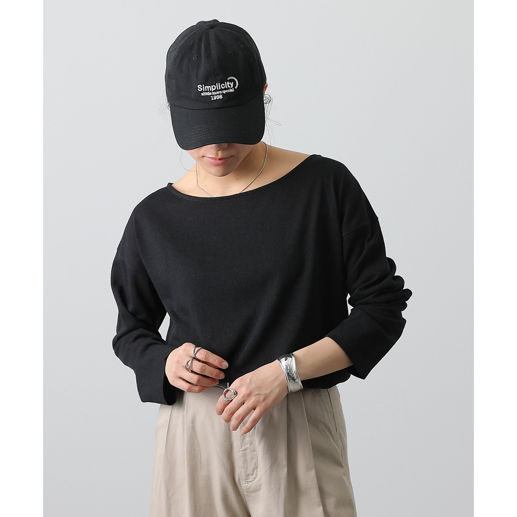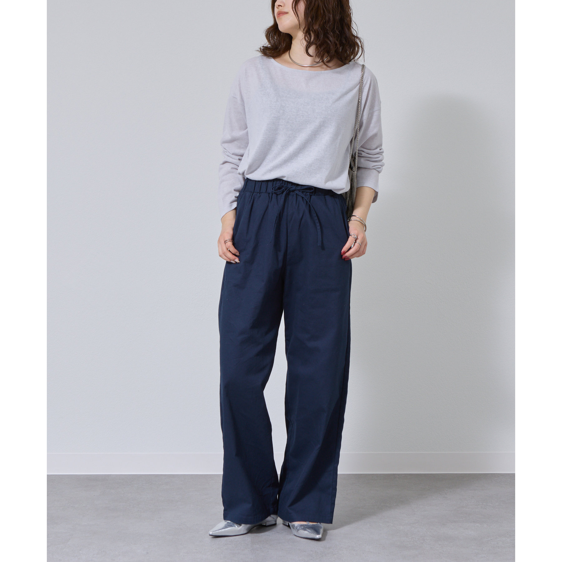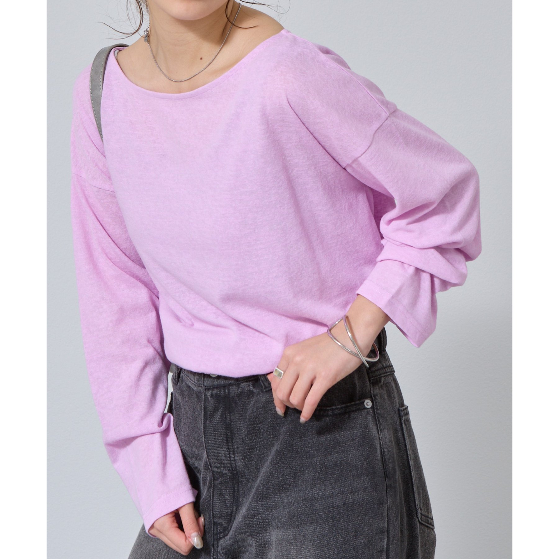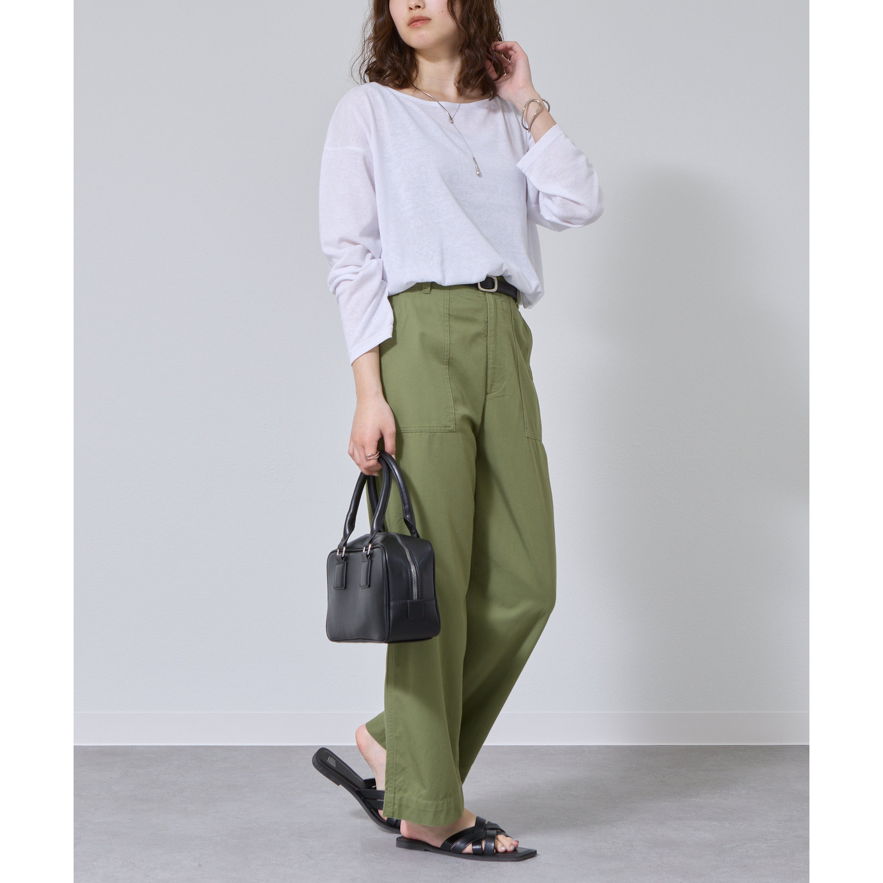 一枚着でもインナーとしても様になるネックラインで抜け感をプラス。