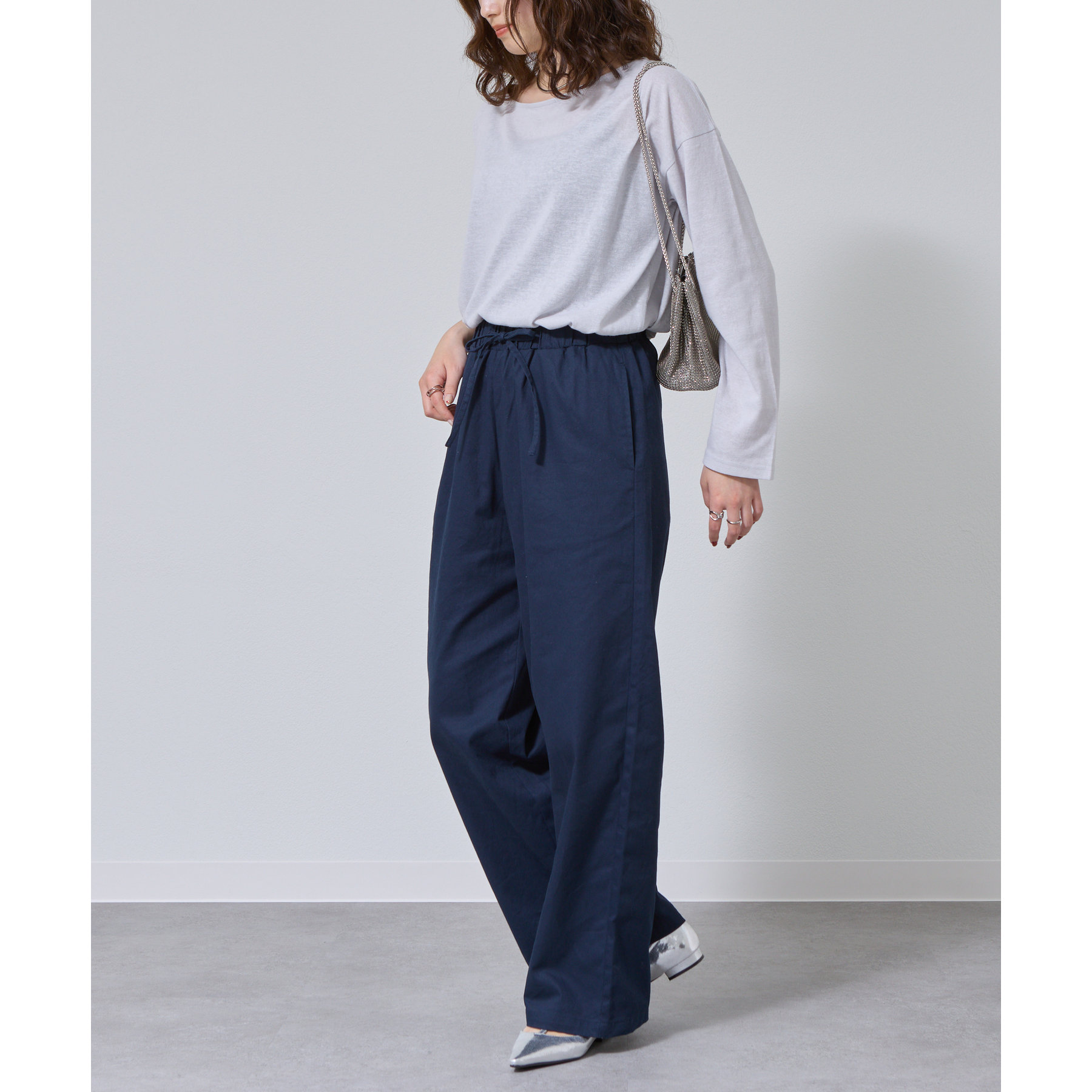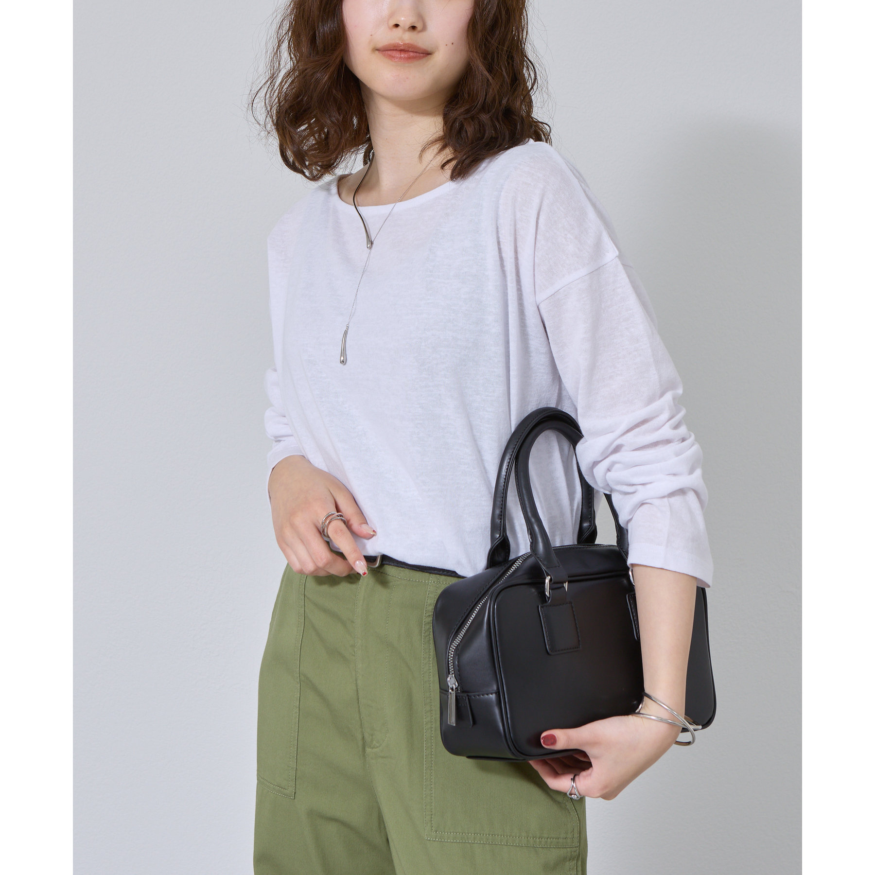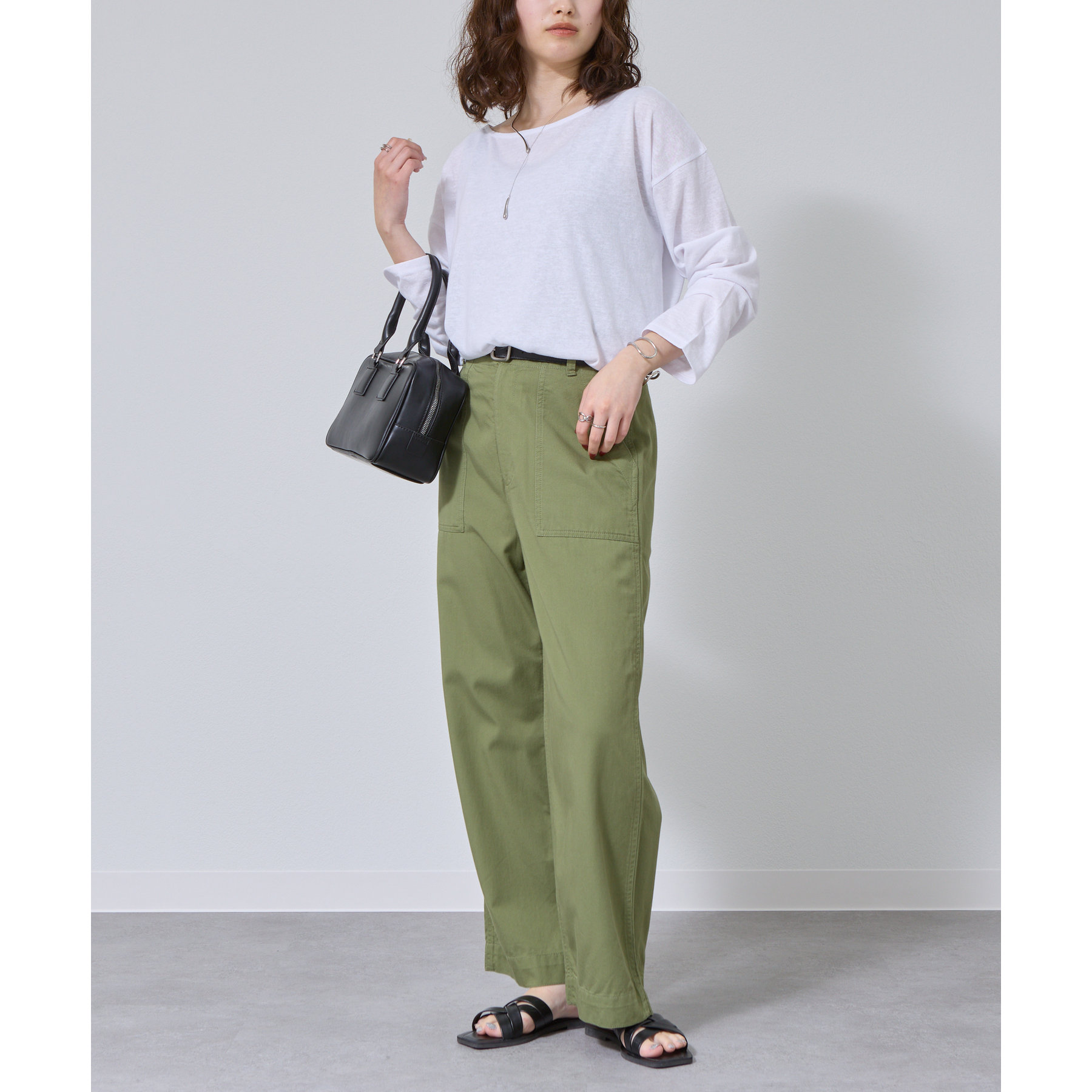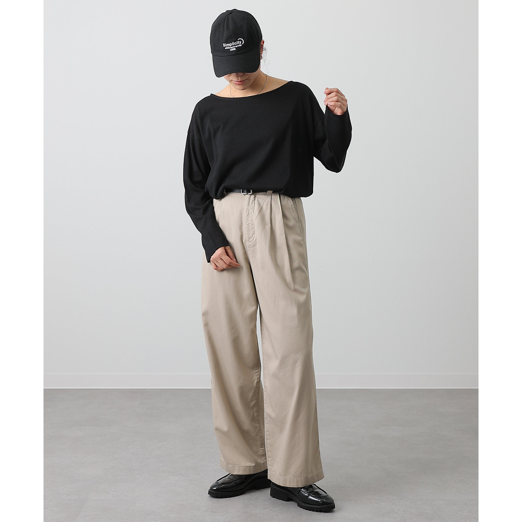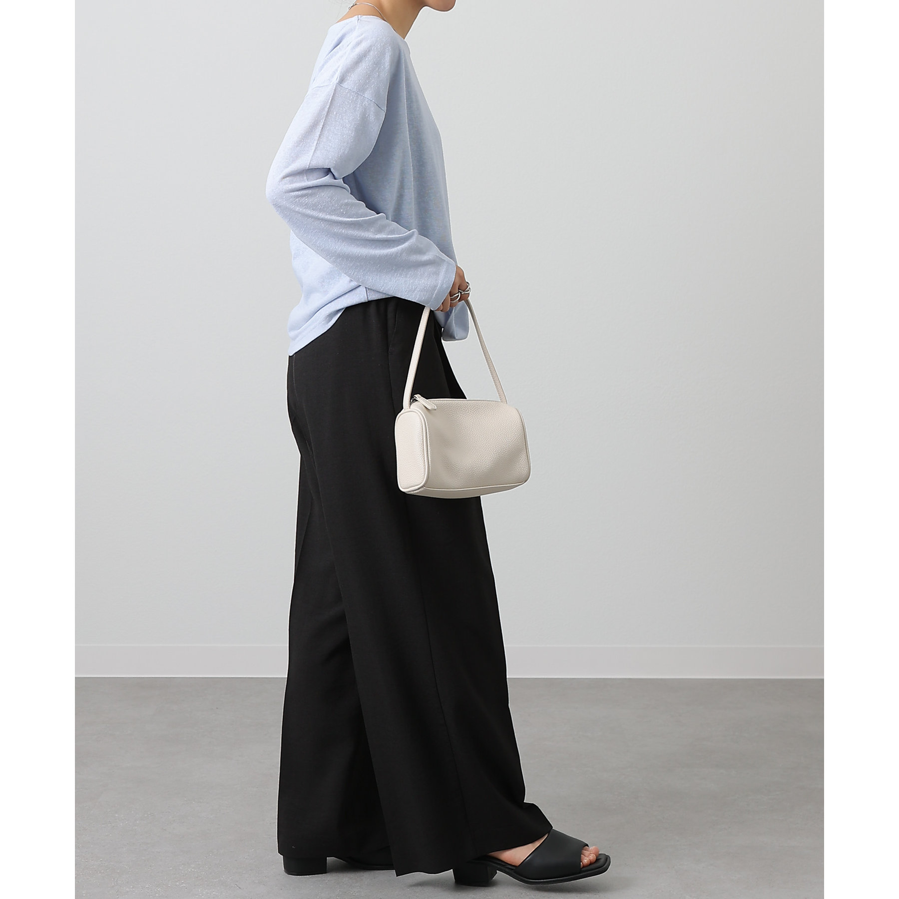一枚着でもインナーとしても様になるネックラインで抜け感をプラス。