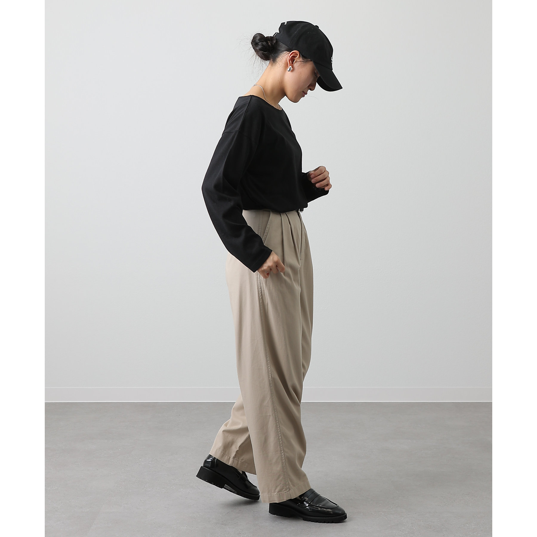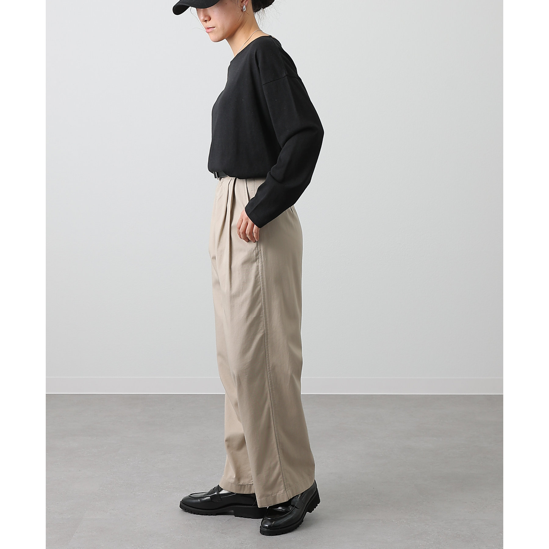 シンプルなシルエットと程よい丈感の長袖のカットソーはロングシーズン活躍すること間違いなしのアイテムです。