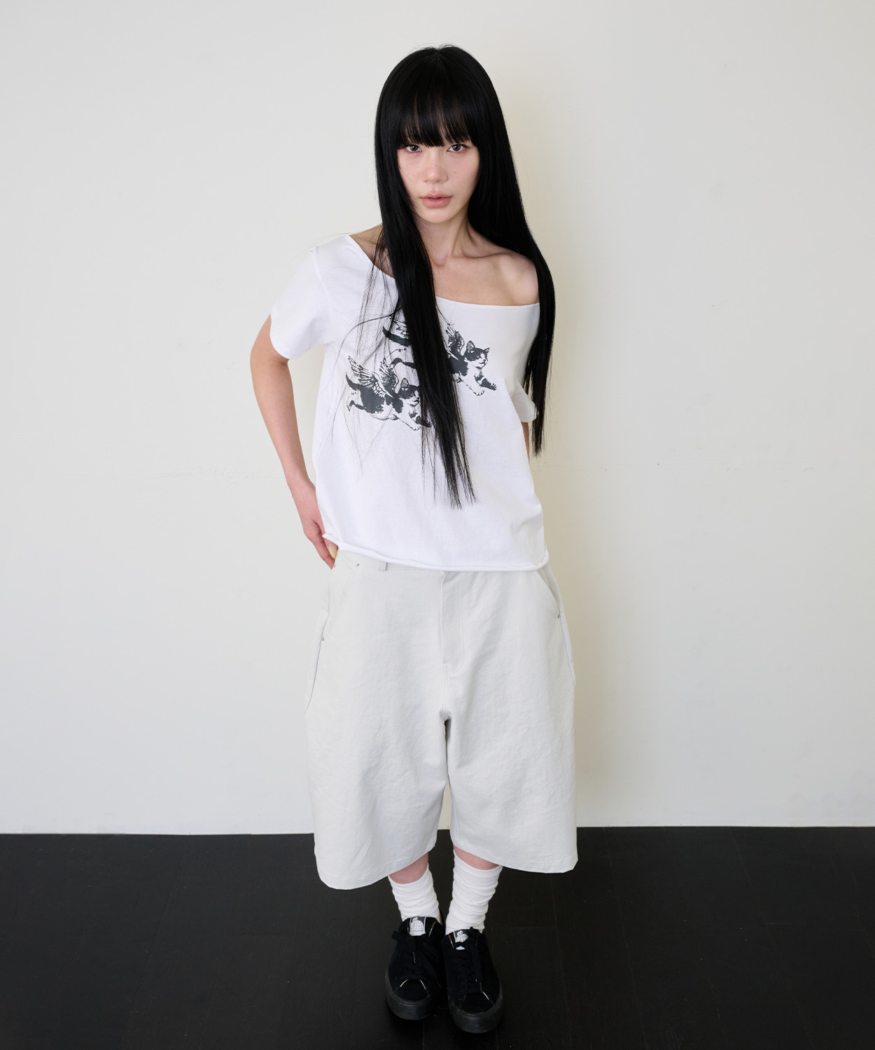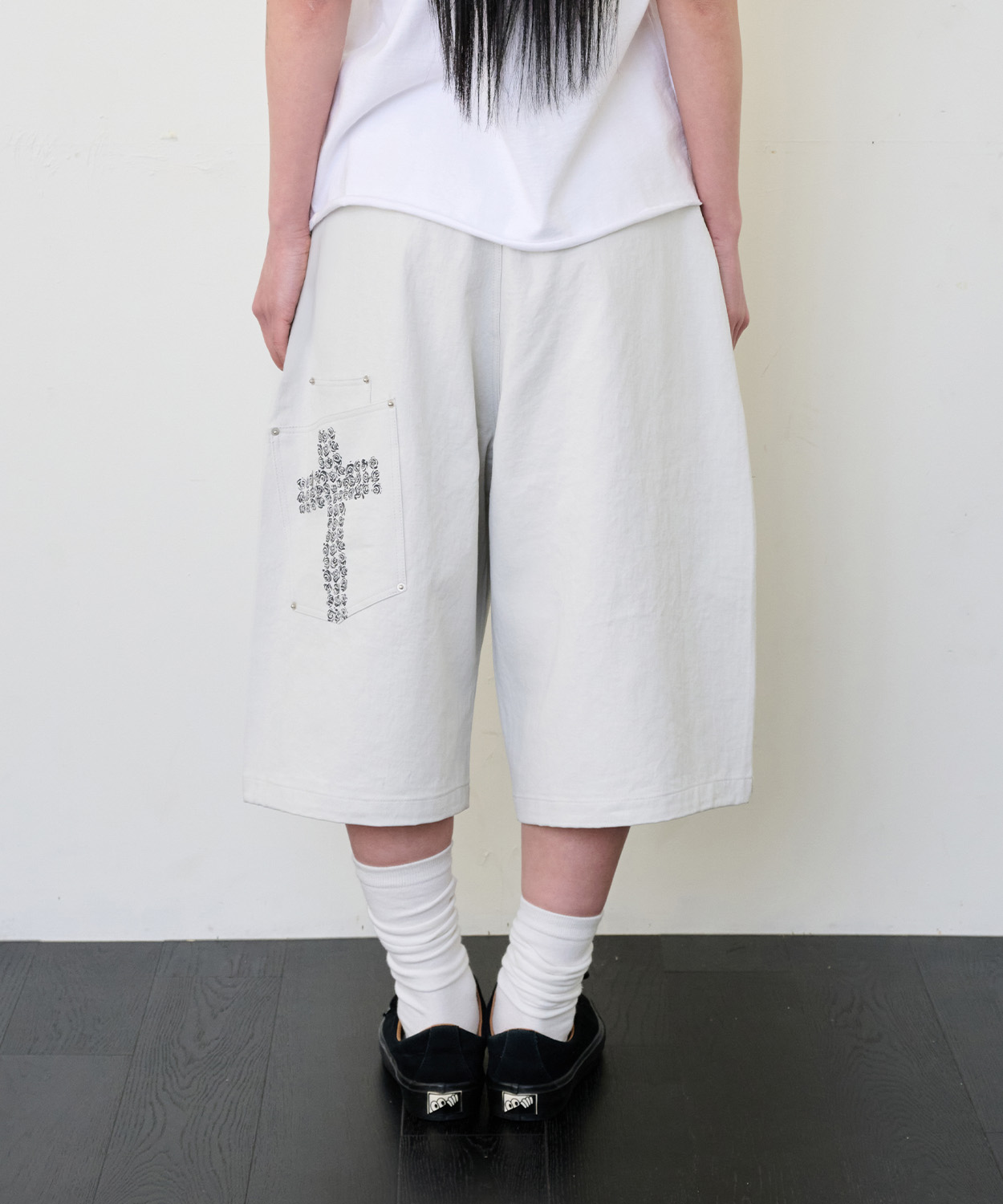 CROSS POCKET BERMUDA PANTS - LIGHT GRAY