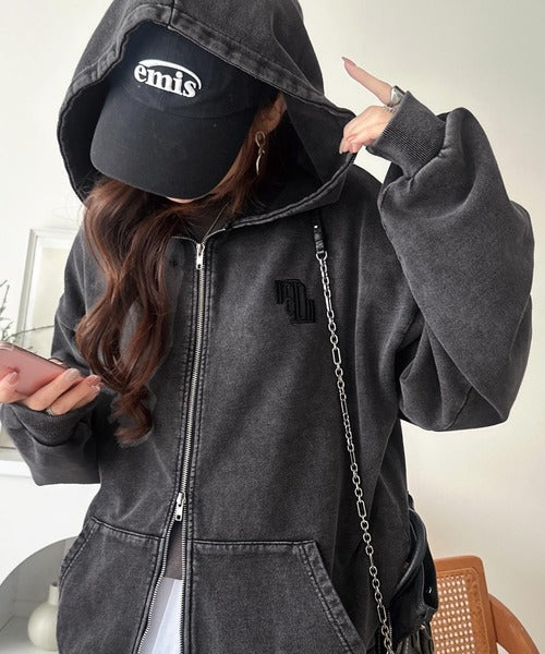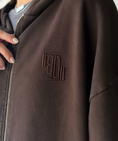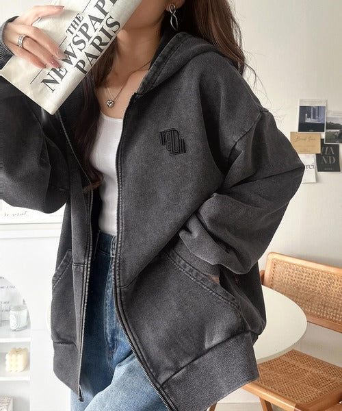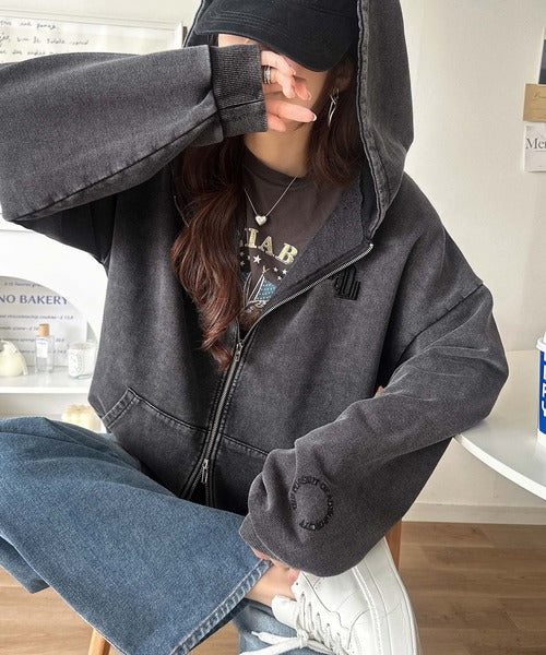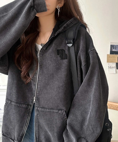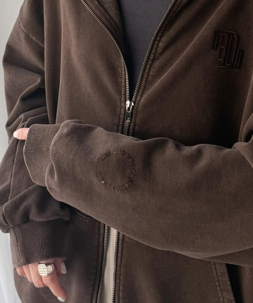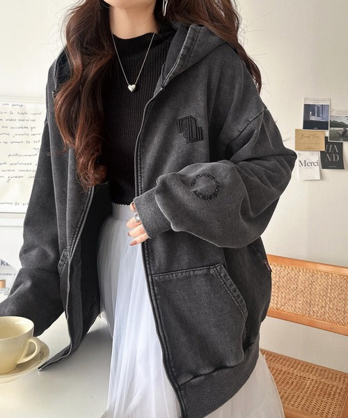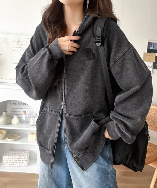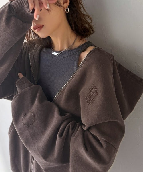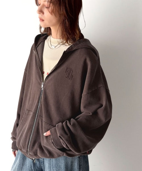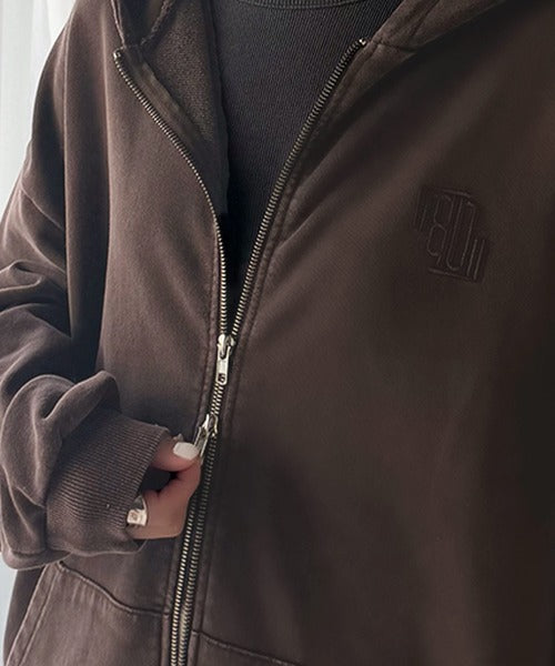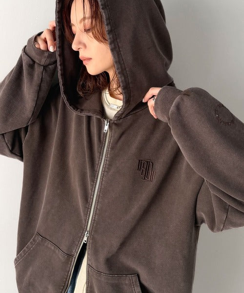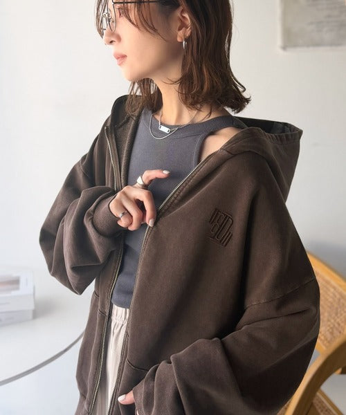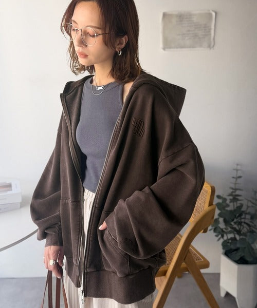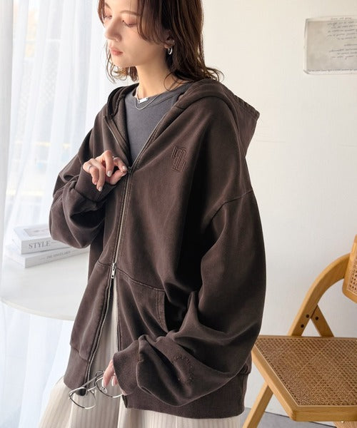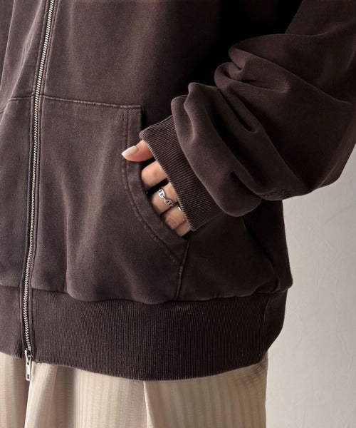 《JaVa ジャバコラボ》大人の抜け感◎ニュアンス色が映える。アシッドウォッシュロゴZIPパーカー jv1260600