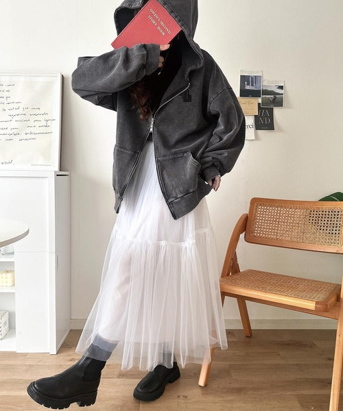 トレンドのアシッドウォッシュで、こなれたムードをひと羽織り。