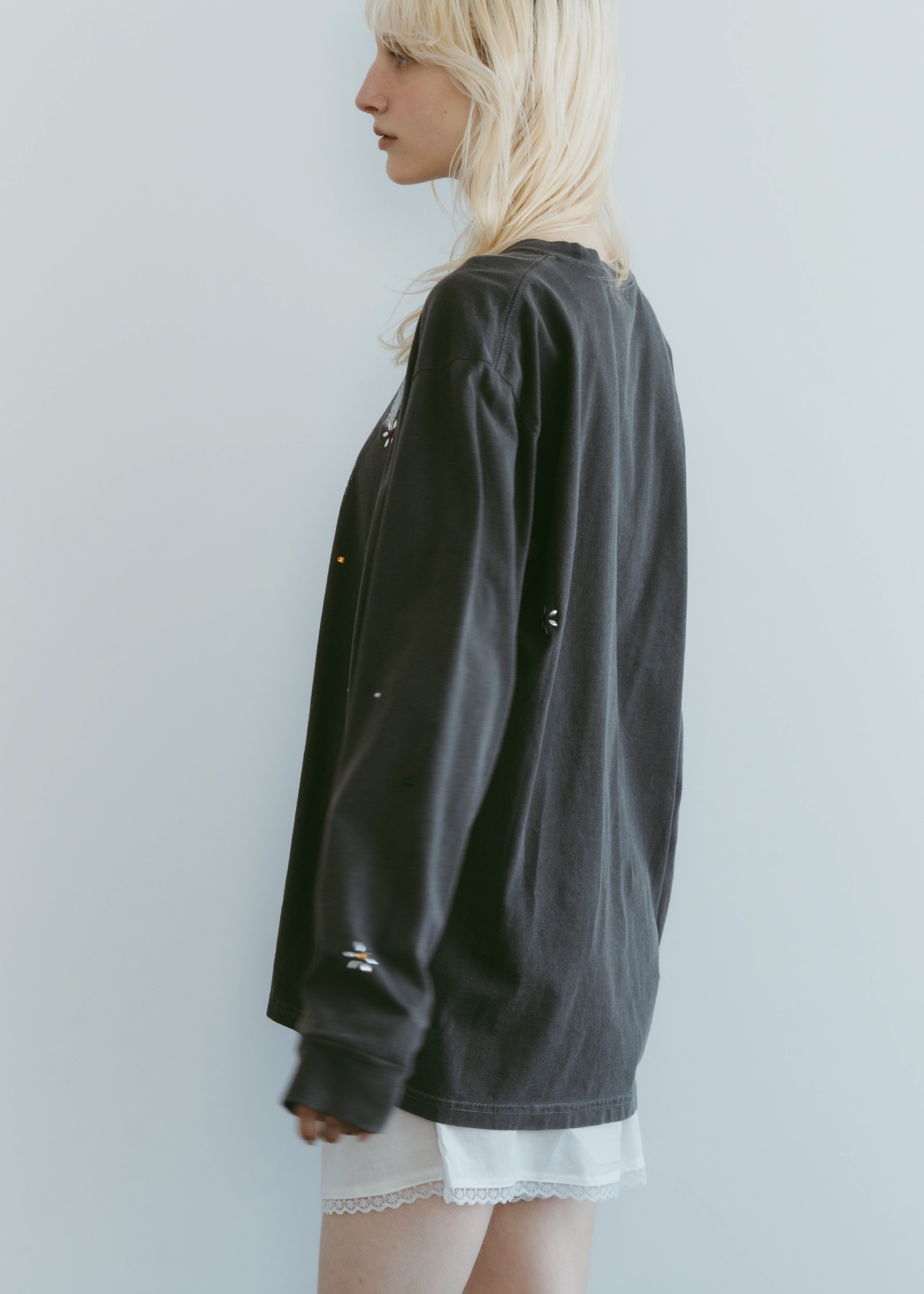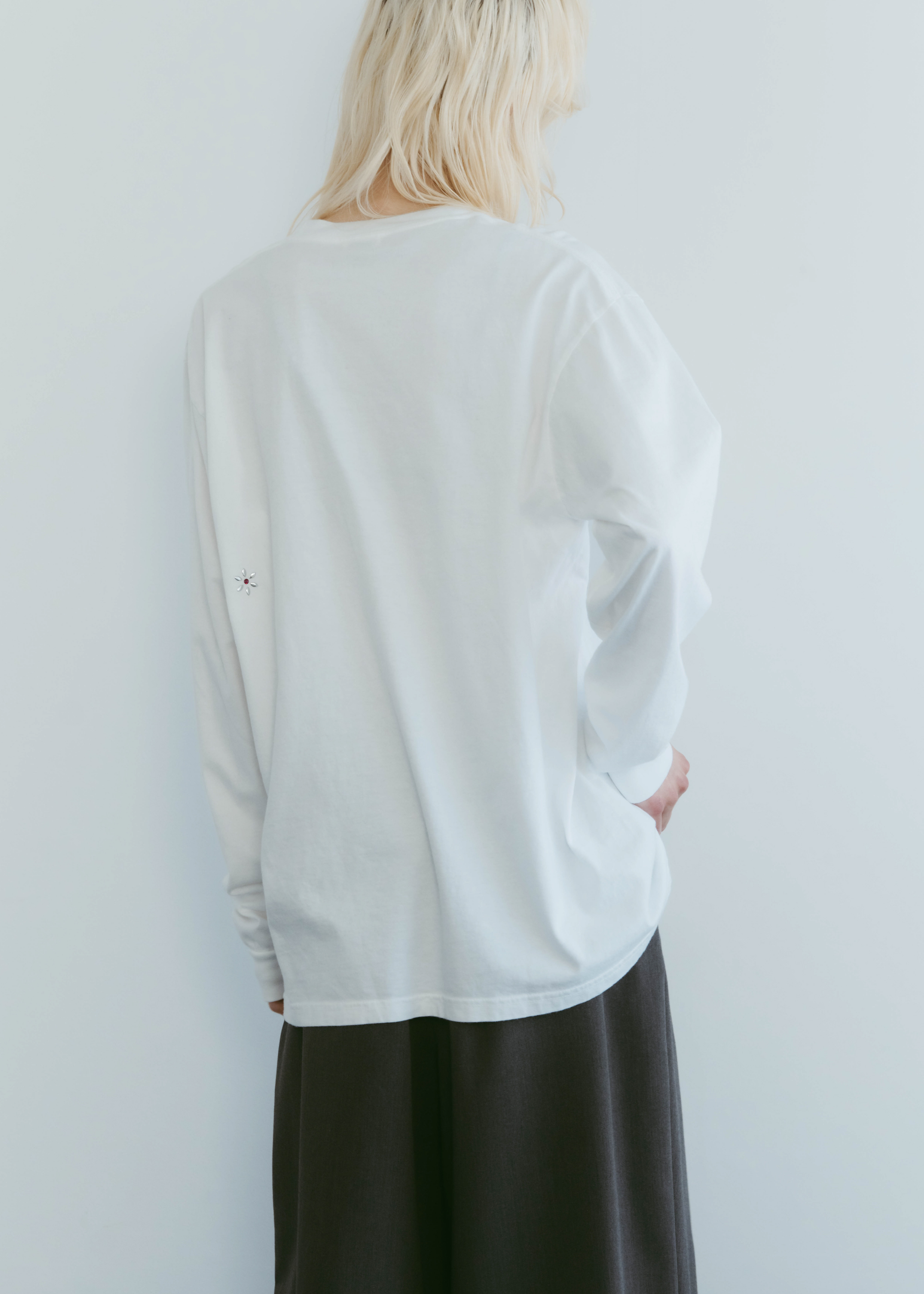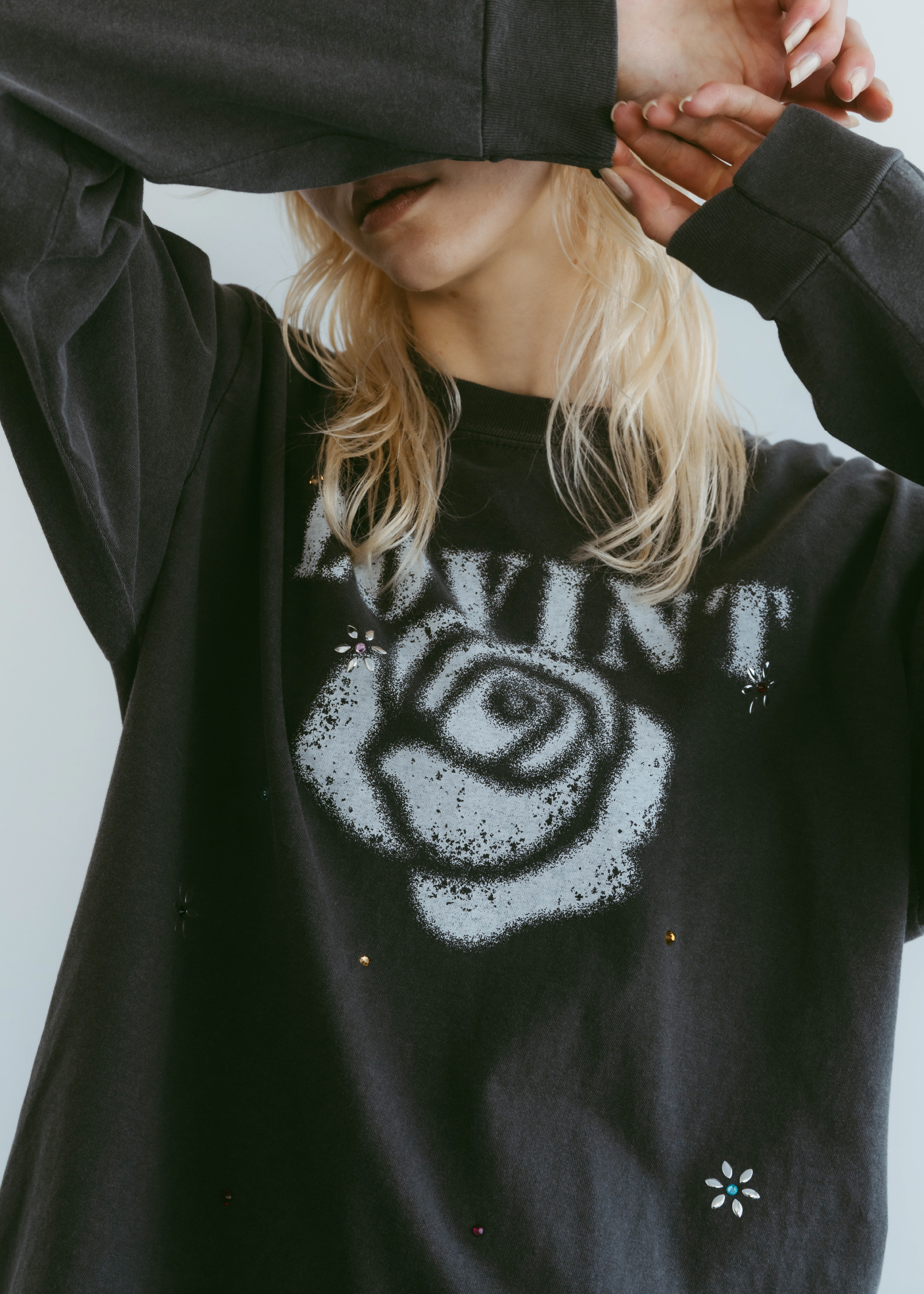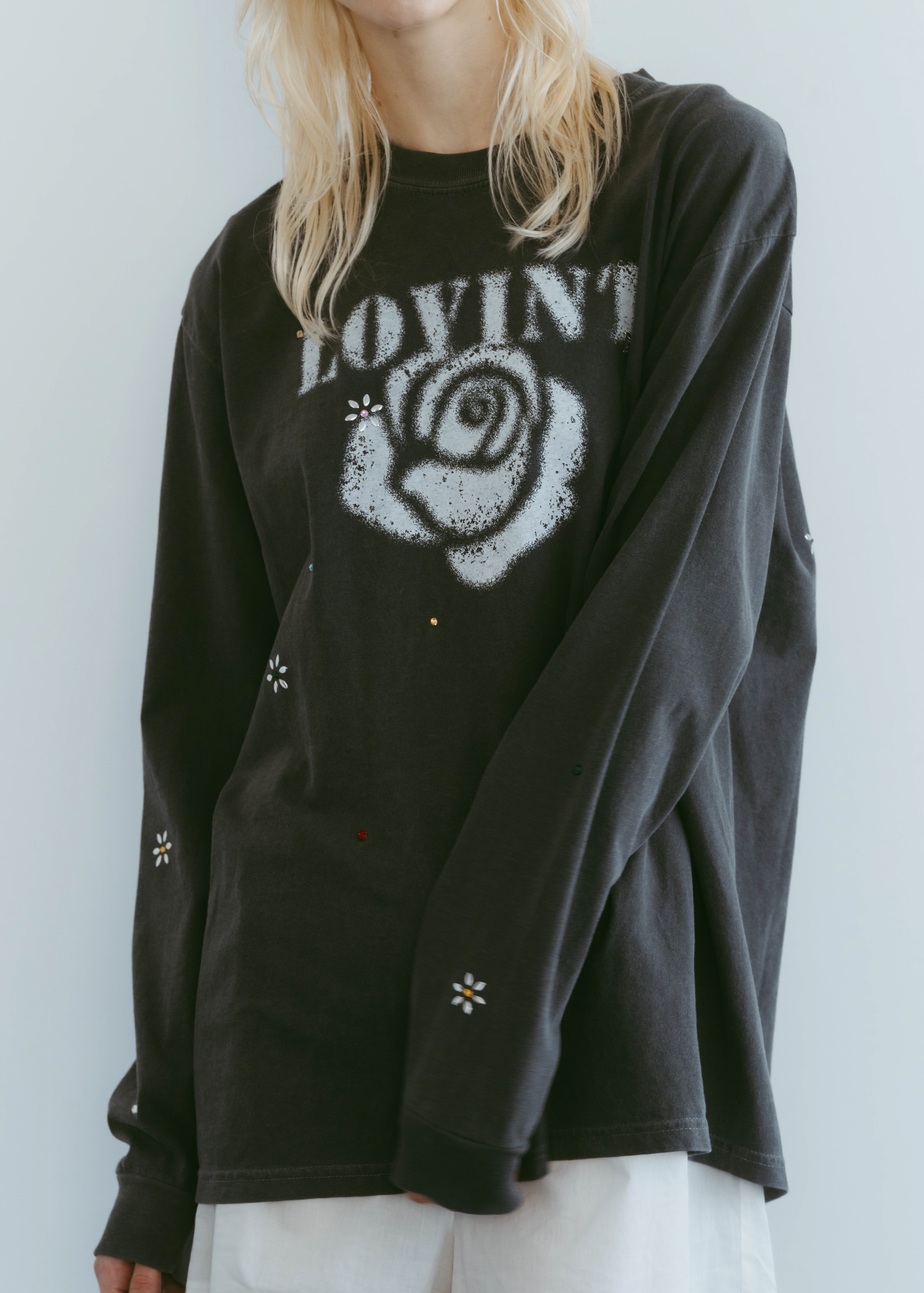 ヴィンテージライクなローズモチーフが印象的なロングスリーブTシャツ。
