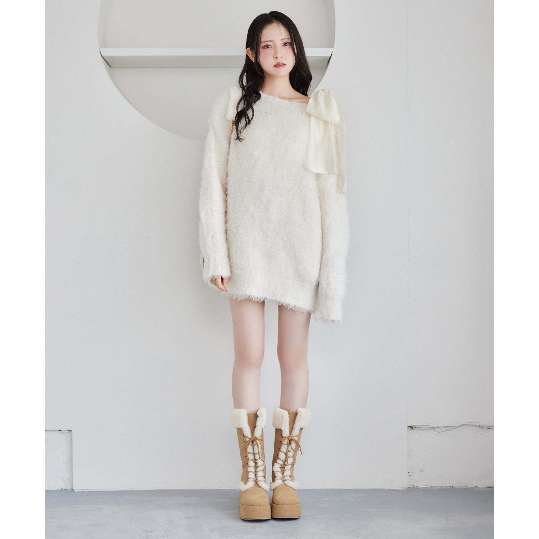 トレンドのウェーブファー素材が目を引く、愛されチュニックニットが登場!