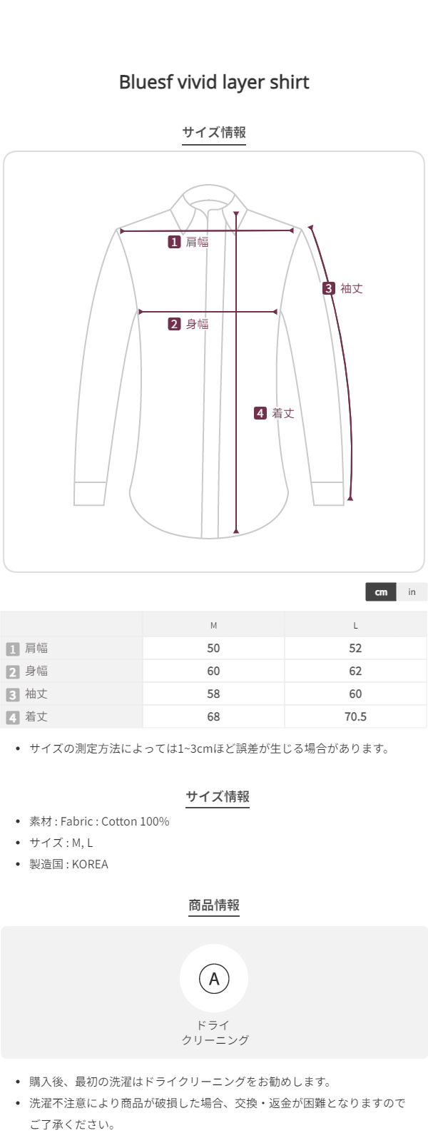 サイズは測り方により多少の誤差が生じる場合がございます。 カラーはモニターの解像度により、 実物と多少異なって見える場合がございます。 |