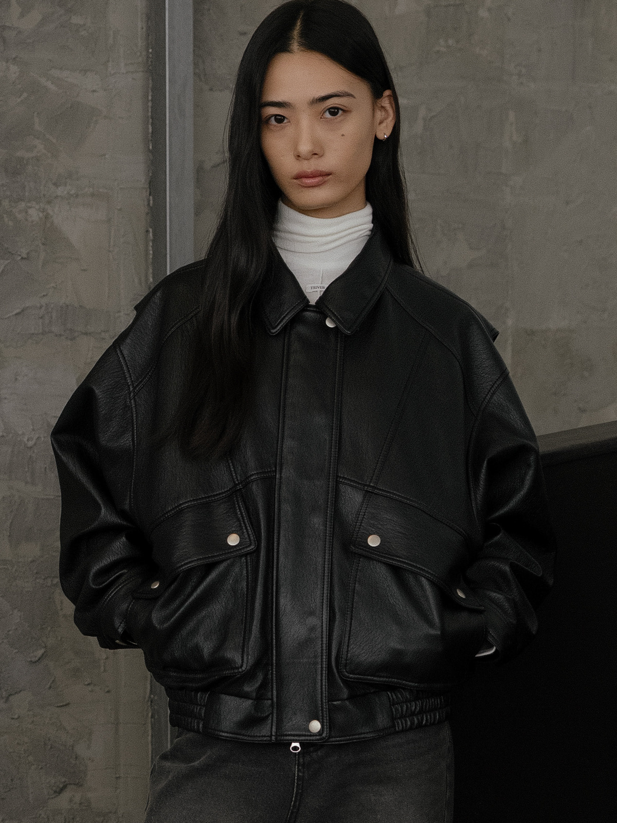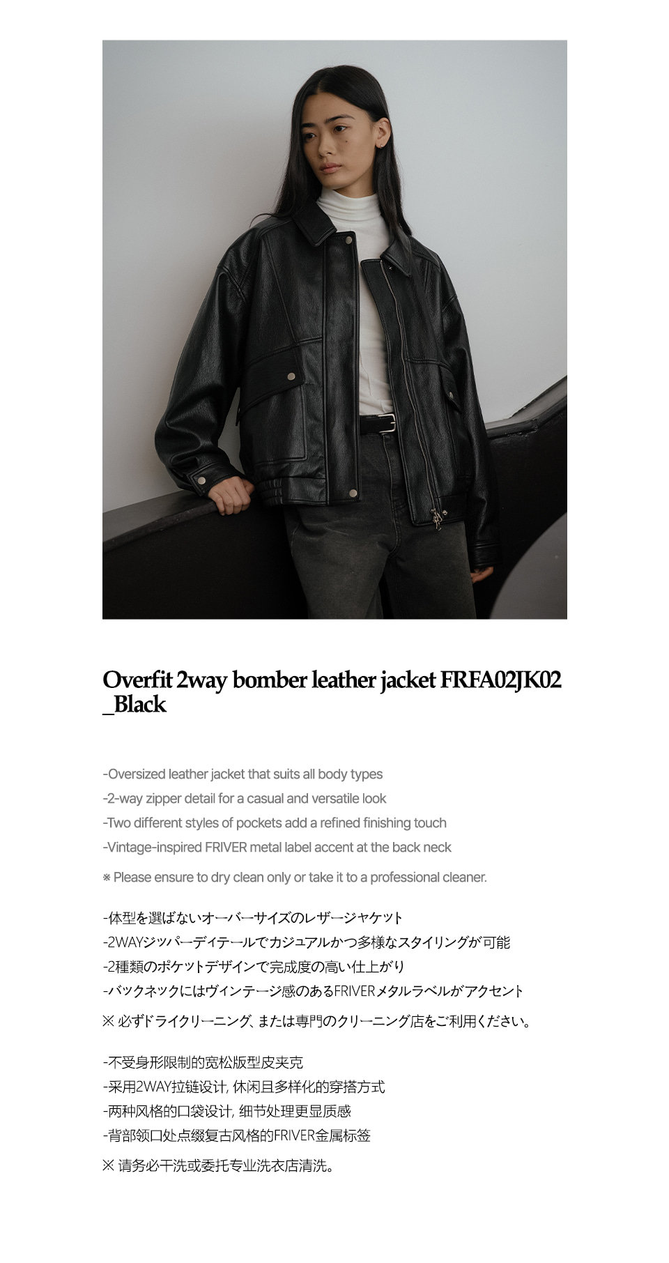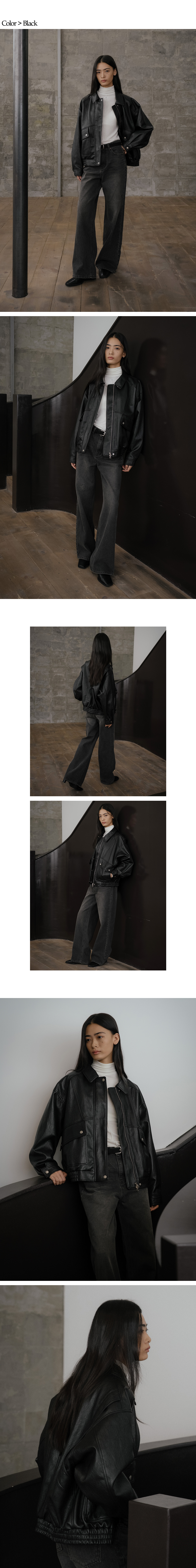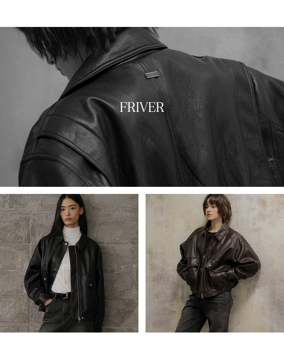 Overfit 2way bomber leather jacket FRFA02JK02_Black