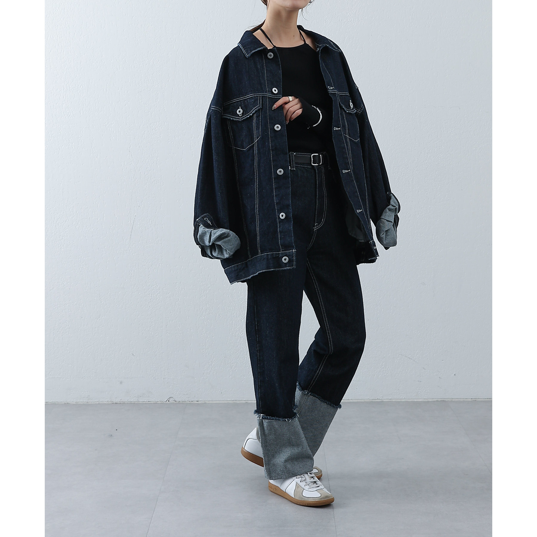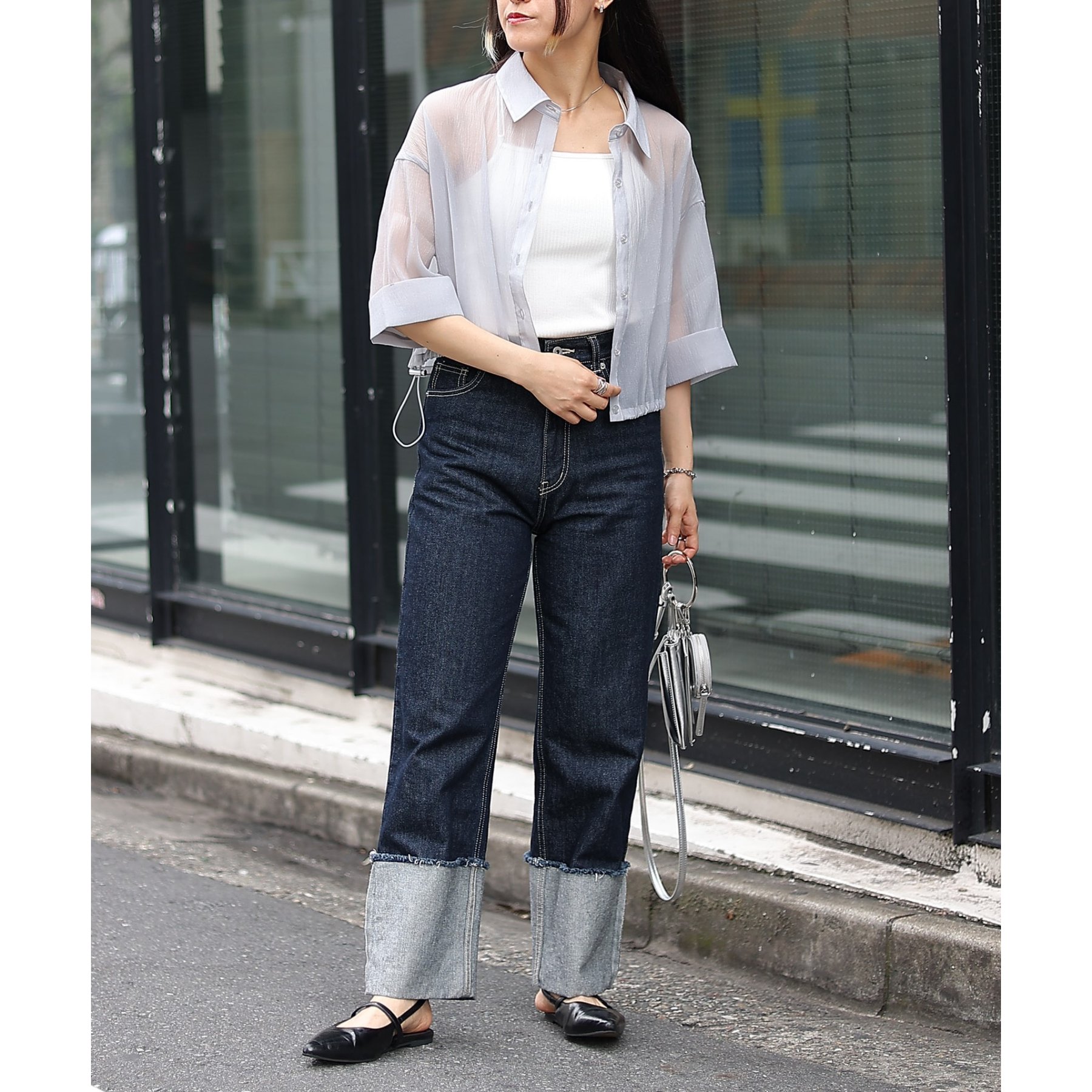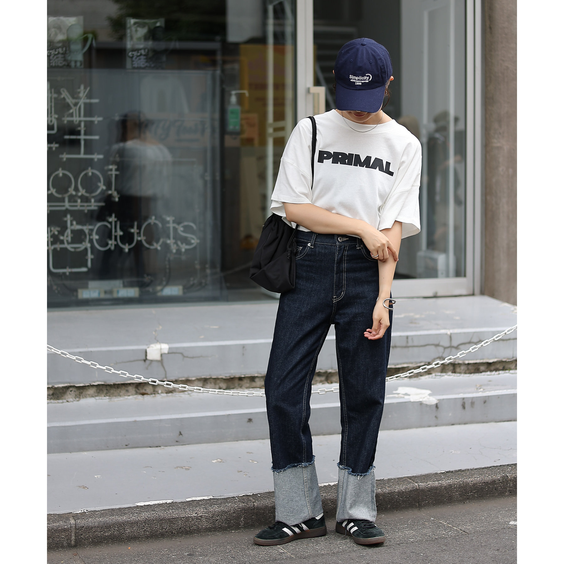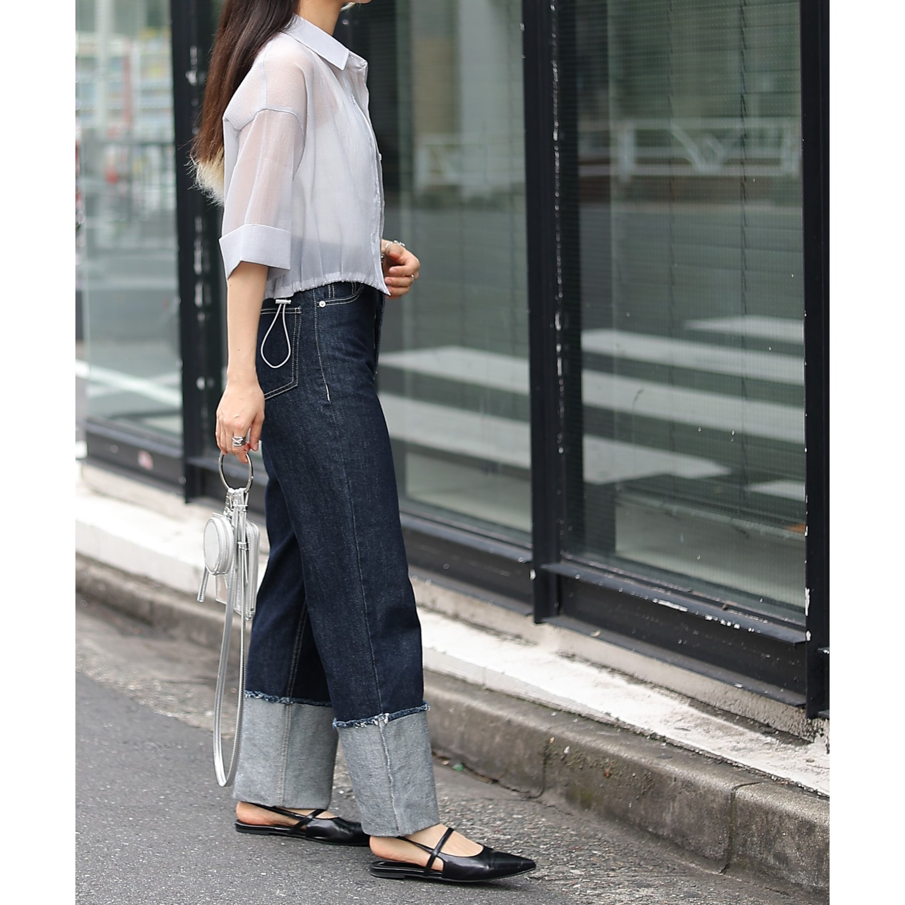 シンプルなスタイリングでもロールアップがワンポイントになってくれるので、幅広く着まわせます◎