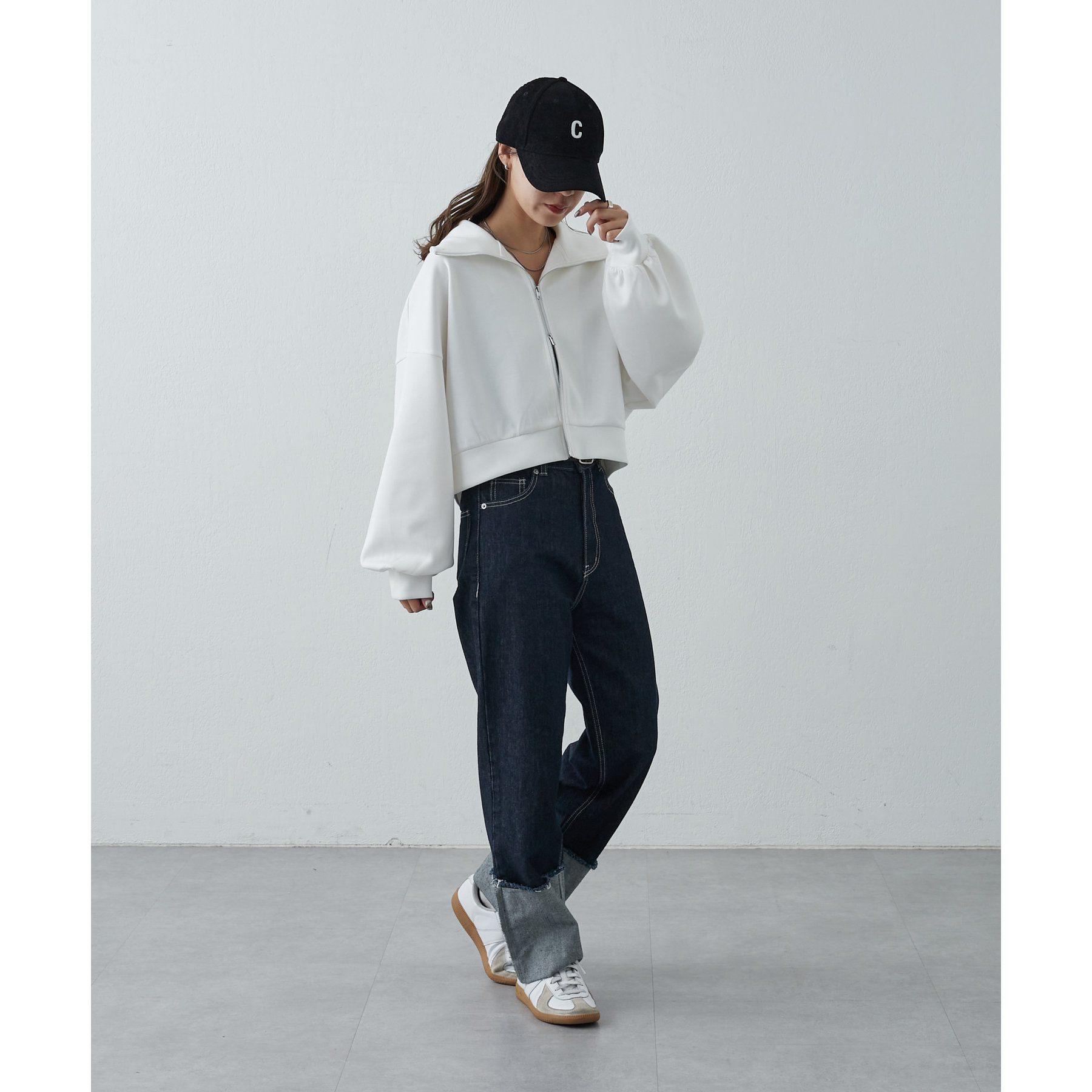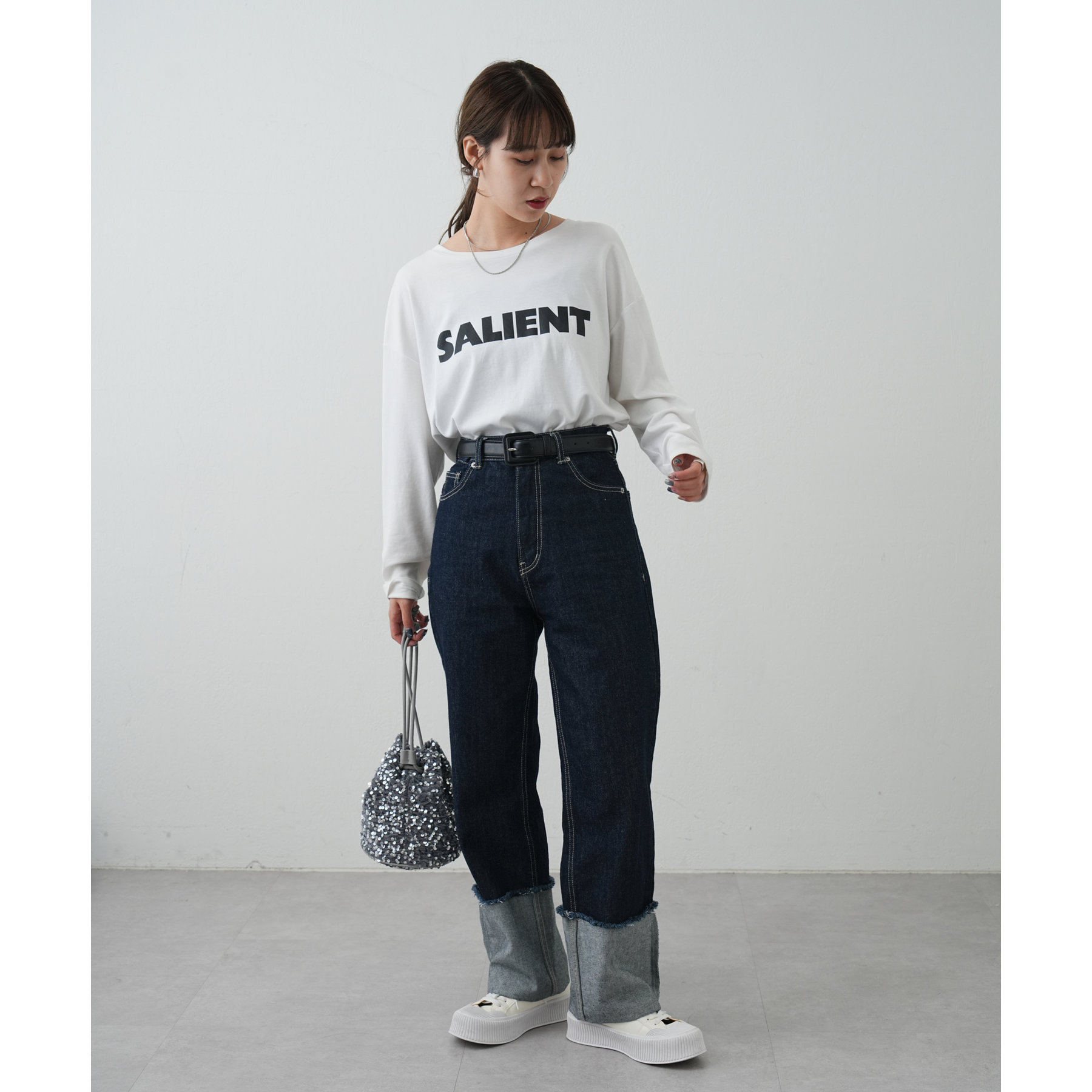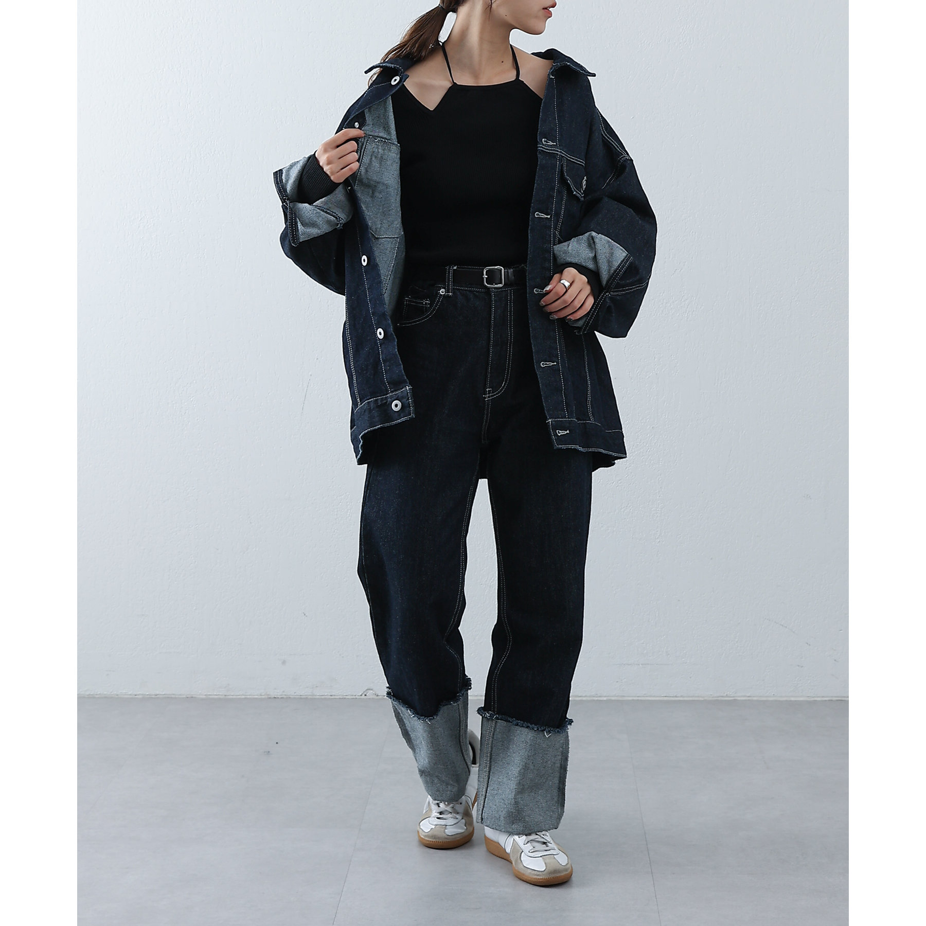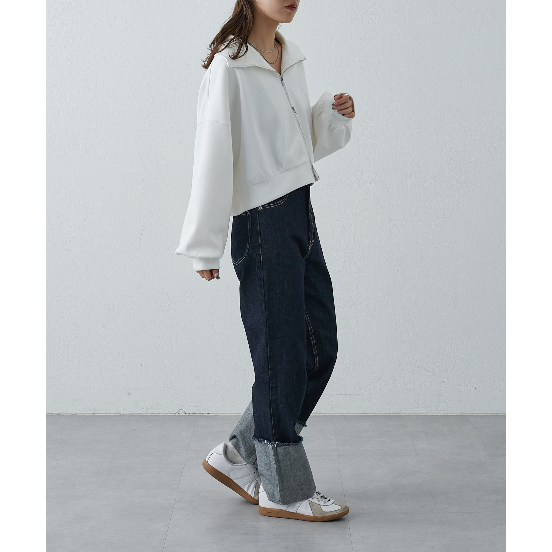 シンプルなスタイリングでもロールアップがワンポイントになってくれるので、幅広く着まわせます◎