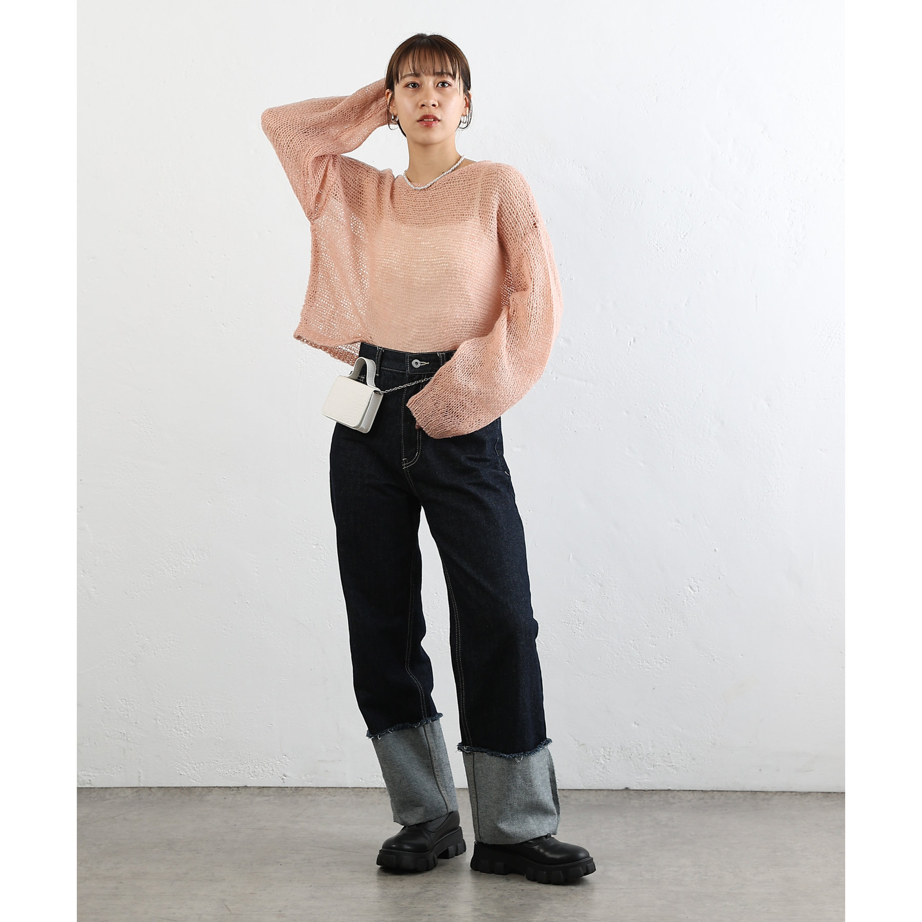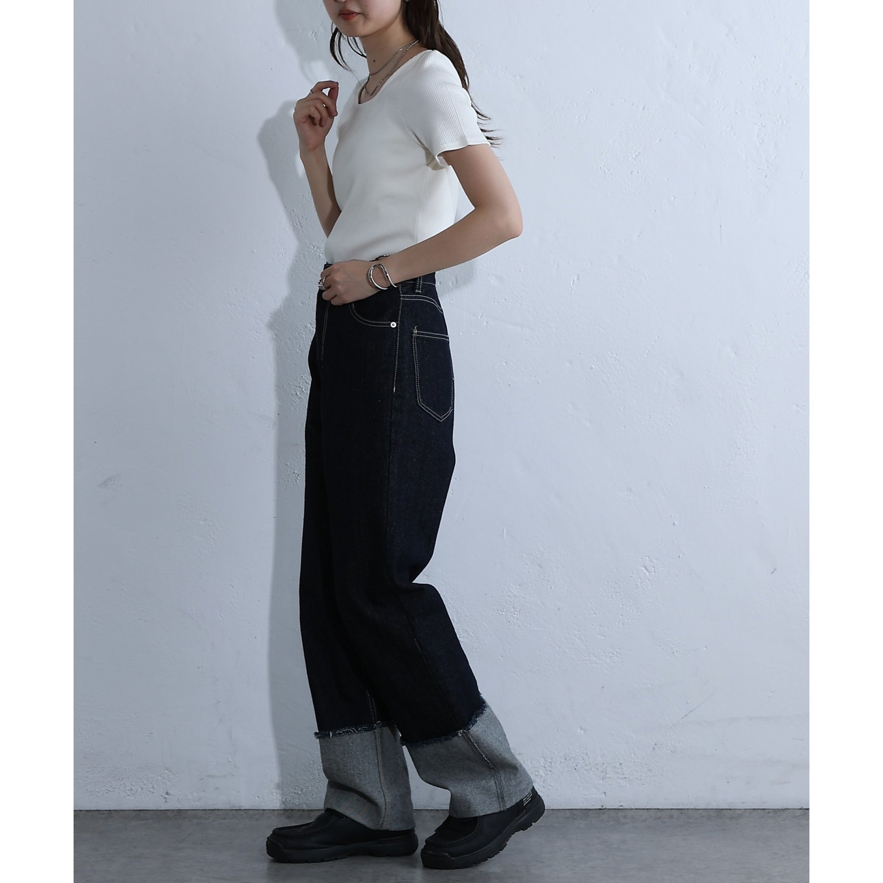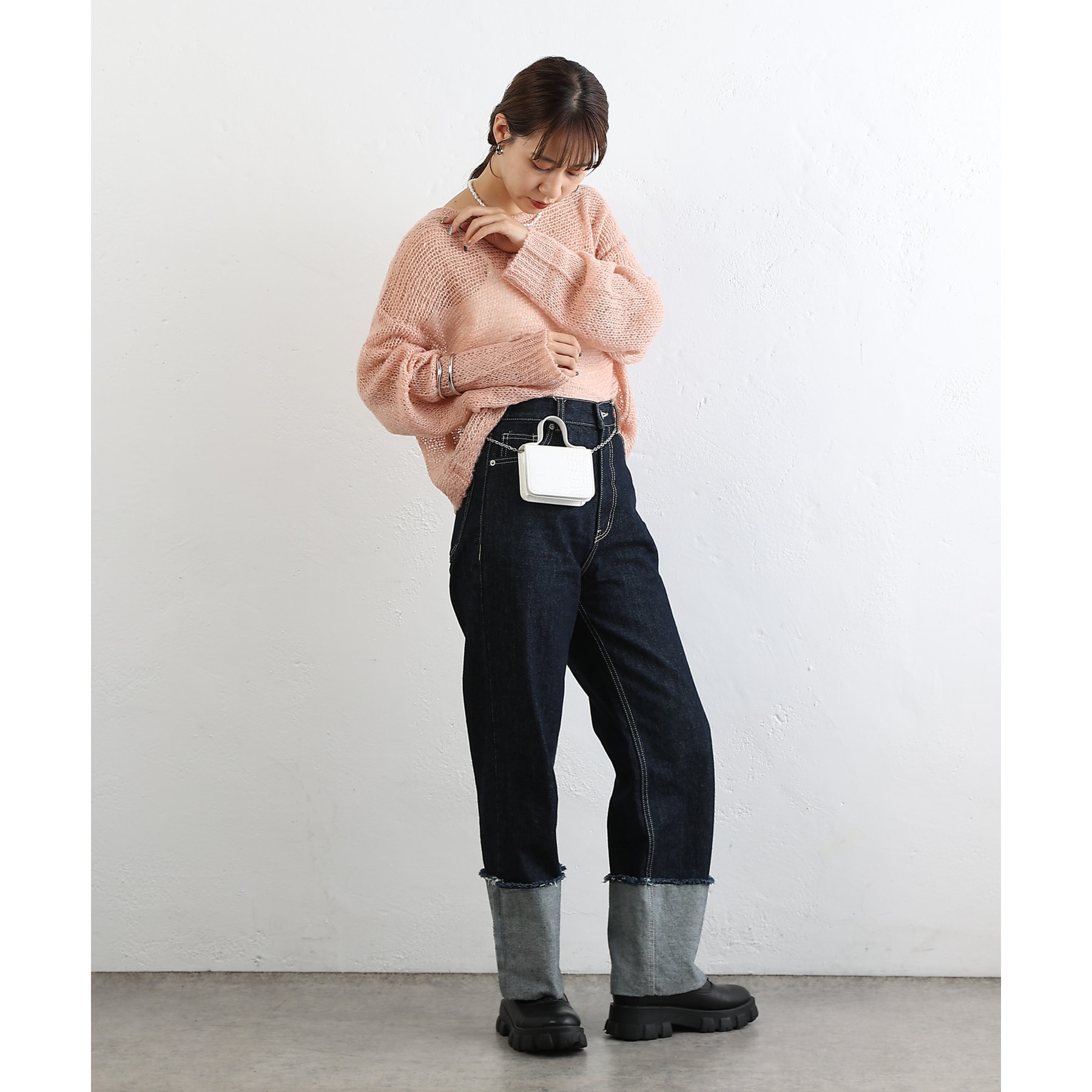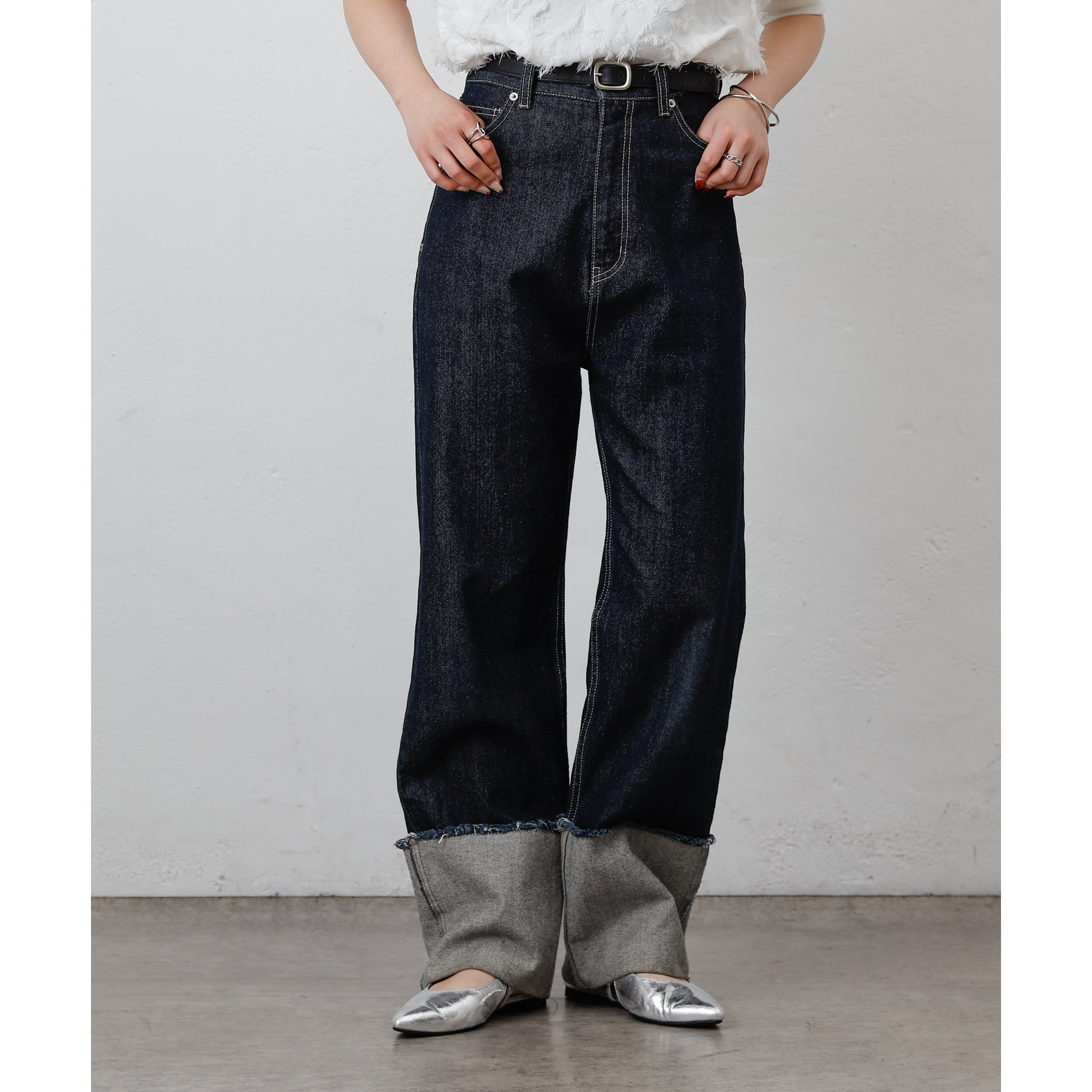 存在感のある太めなロールアップがオシャレなデニムパンツ。
