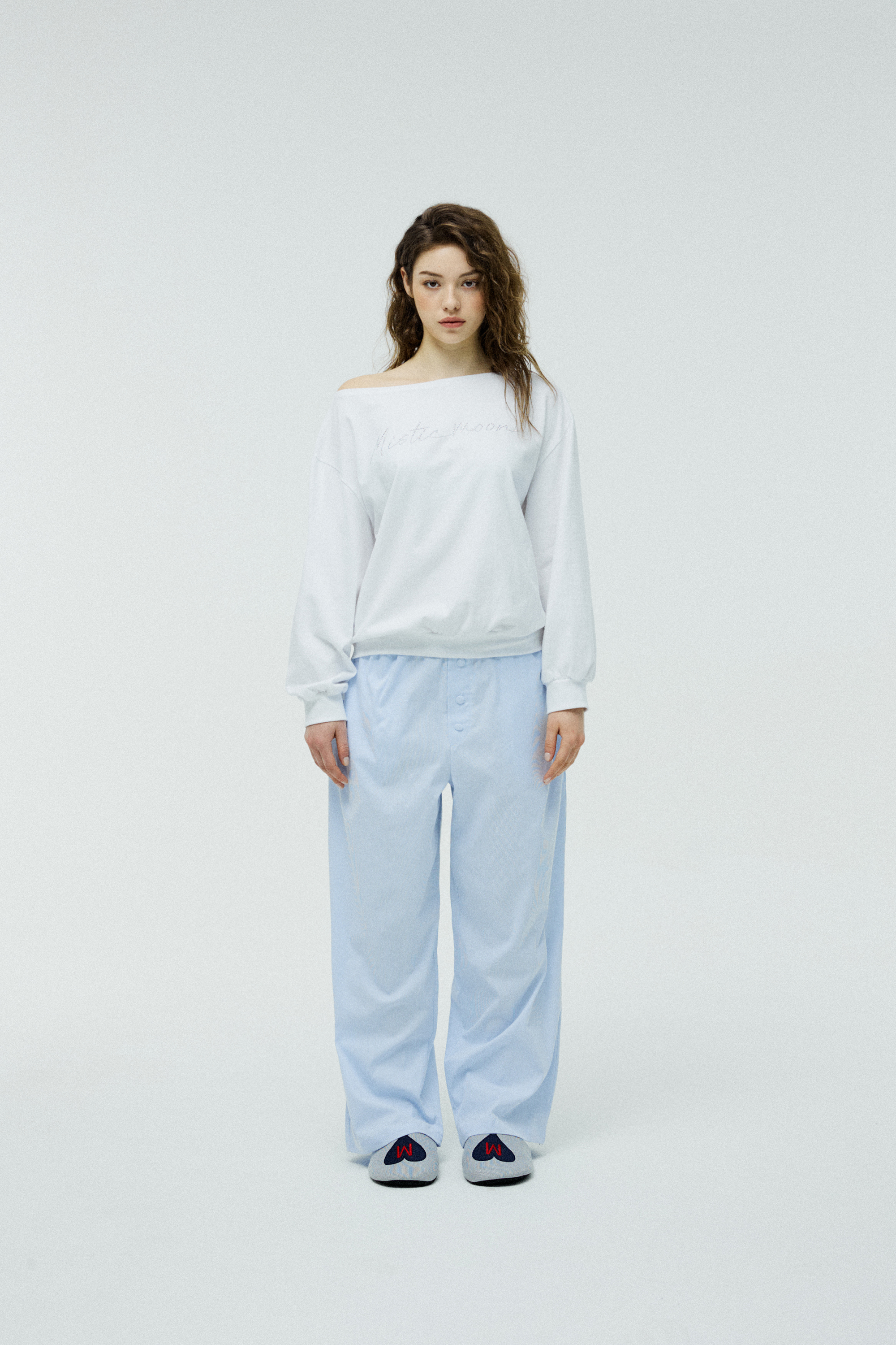 コージーで上品なムードが漂う、キュービック付きオフショルダーTシャツです。 全体的にゆとりのあるオーバーフィットシルエットで、リラックスして着用でき、華奢でやわらかな印象を演出します。 感性と実用性を兼ね備えたデザインで、ルームウェアとしてはもちろん、さまざまなスタイリングに遊び心を加えたコーディネートもおすすめです。 キュービックポイント オフショルダー