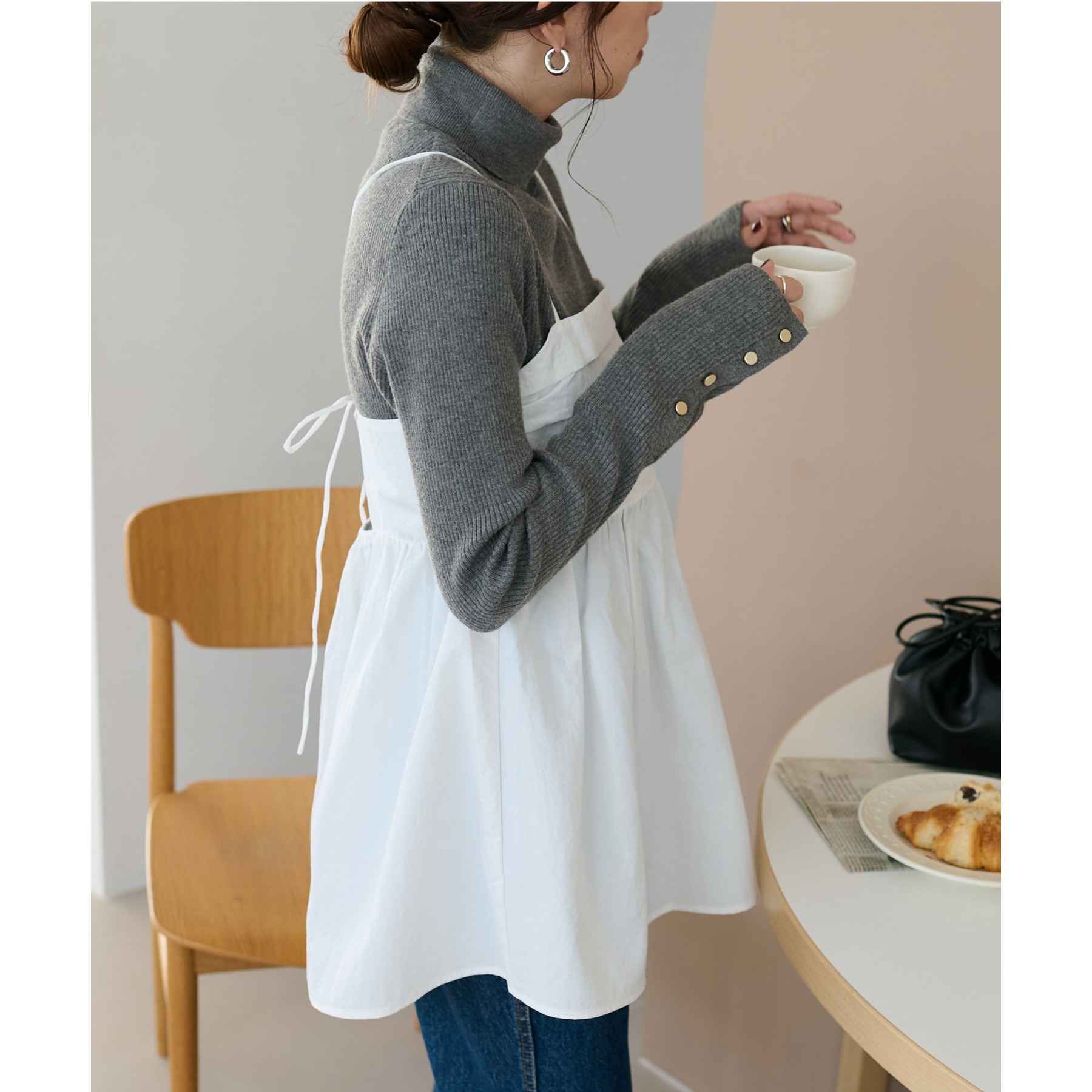 胸元にたっぷり寄せたギャザーデザインとふわっと広がるシルエットが女性らしく華やかな印象に♪ナイロン生地で軽く抜け感もあり、ヒップが隠れる丈感で体型カバーもできます。肩紐部分は結び目で調整できるのでお好みの着丈で、バランスよく着用いただけます。シンプルなトップスにプラスするだけでトレンドコーデに仕上がるアイテムです!