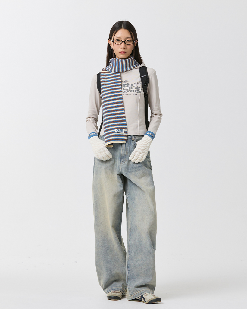 [K-POPアイドル着用] Odsd Stripe Knit Muffler - 4COLOR