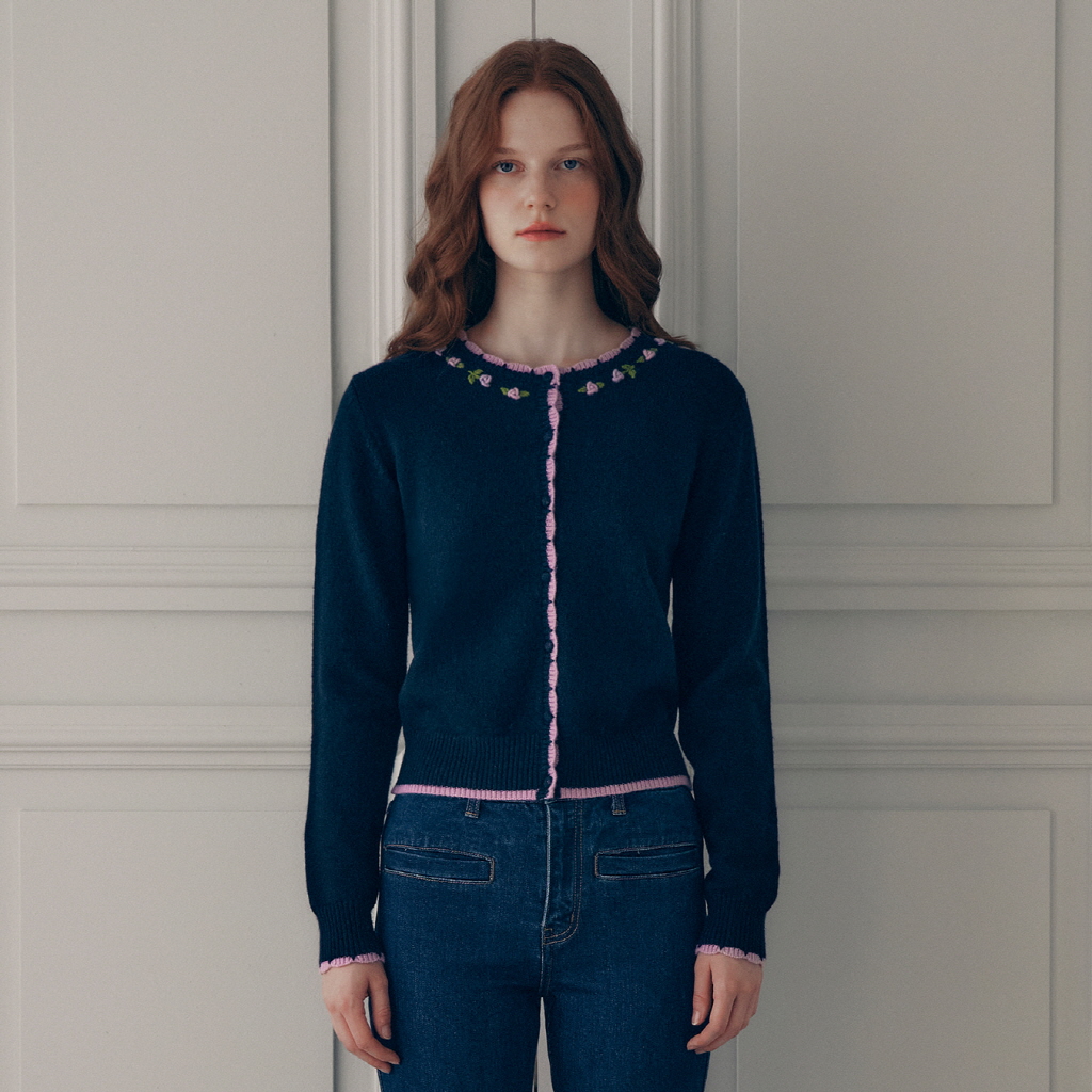 HAND ROSE EMBROIDERY CARDIGAN NAVY