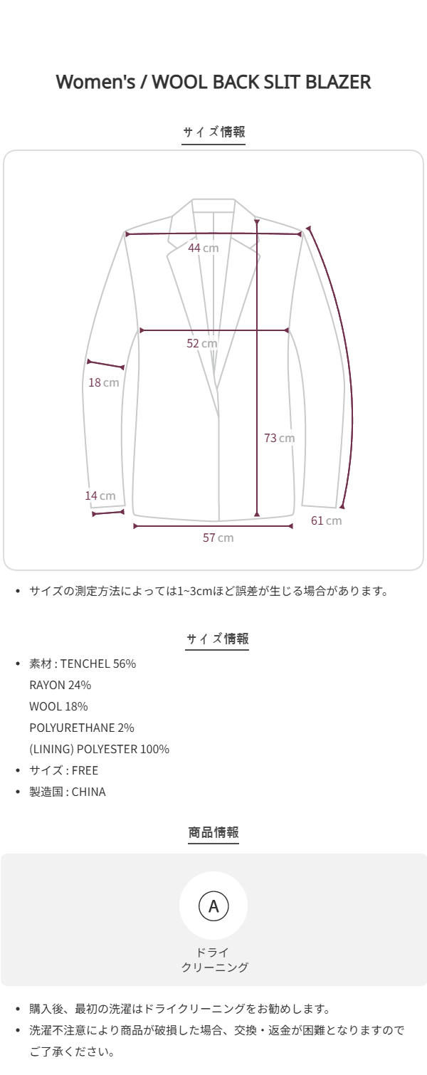 このブランドの商品はお客様の都合による交換および返品はお受けいたしかねます。 十分にご注意の上、ご注文をお願い致します。