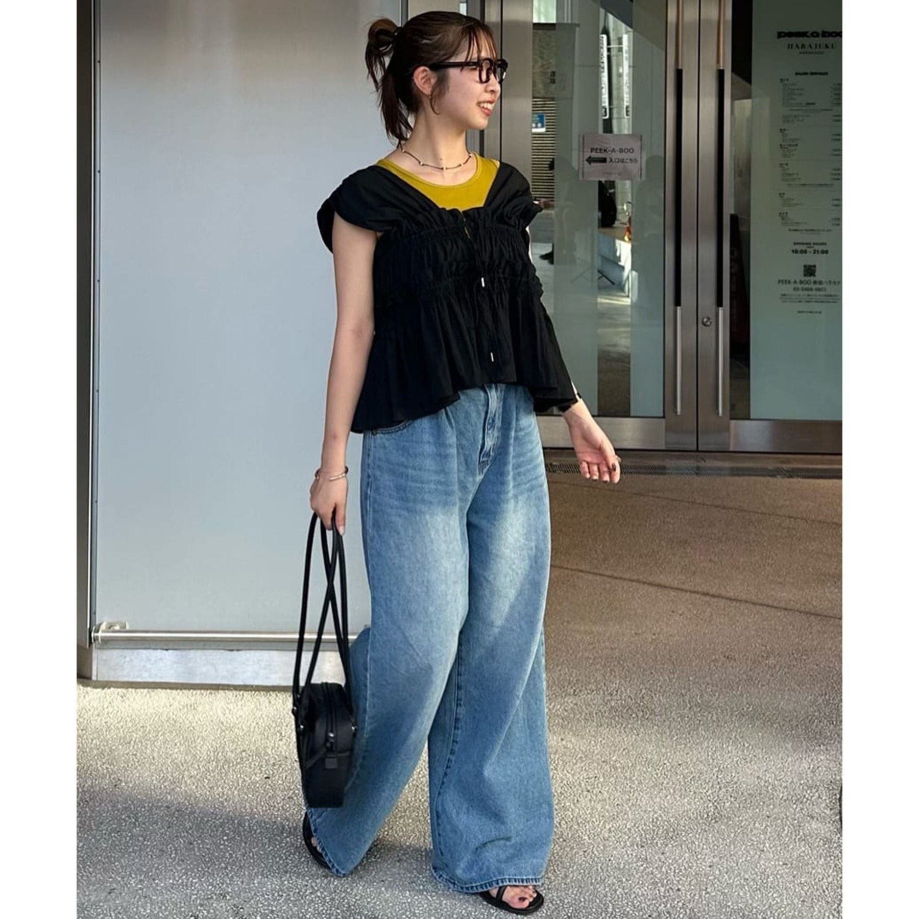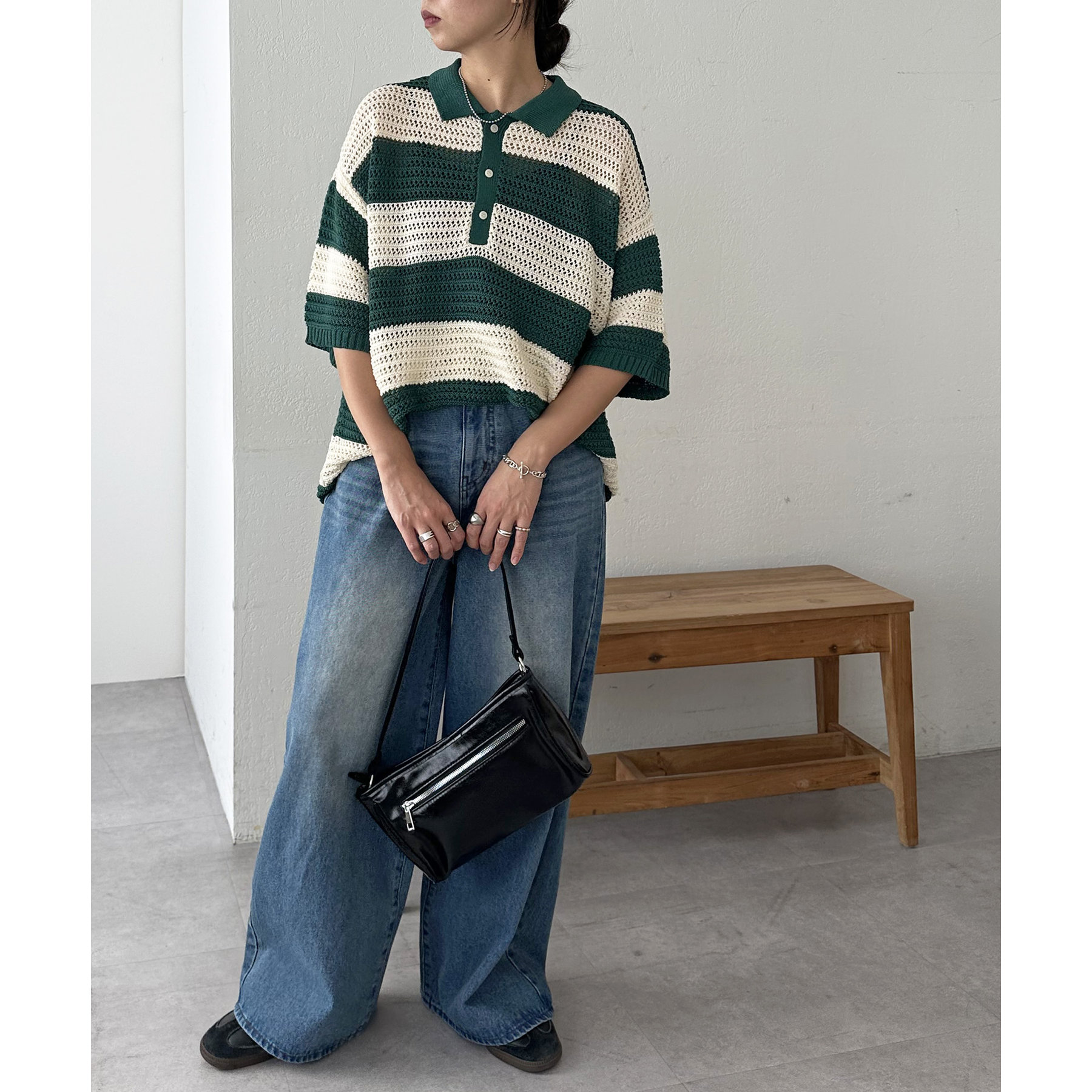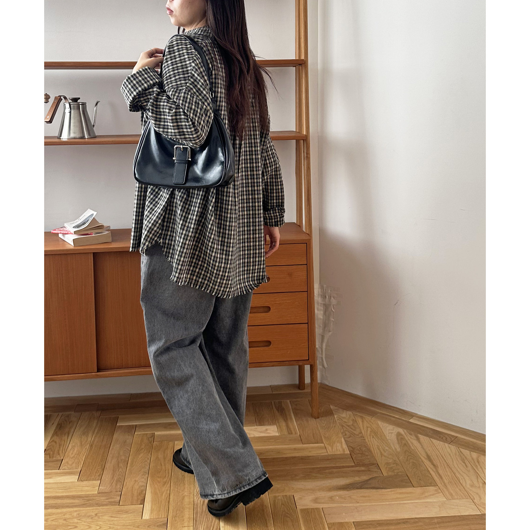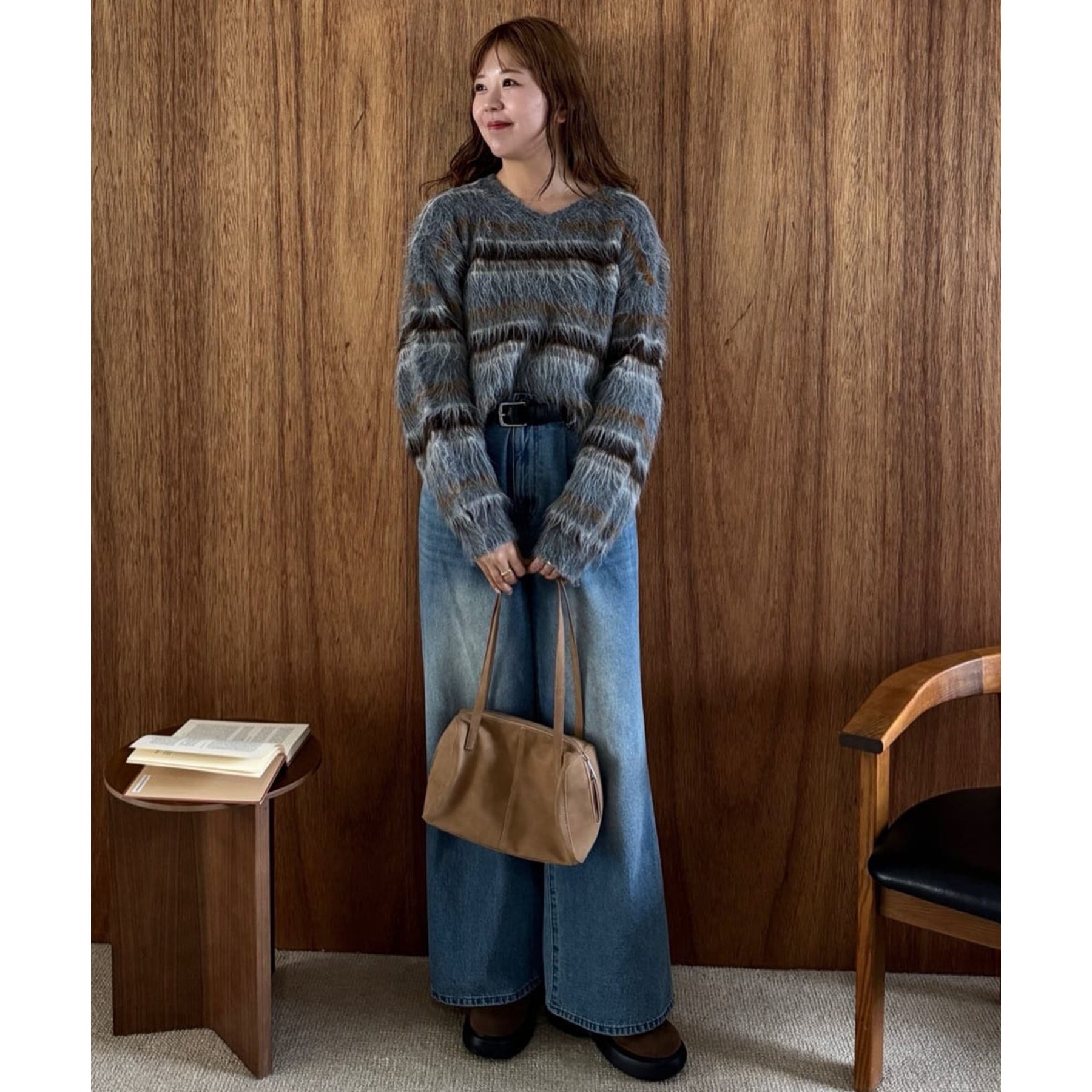 157cmスタッフ(Mサイズ着用):長めの着丈なのでブーツや少し高めのスニーカー合わせがおすすめ!甘めなブラウスと合わせてカジュアルダウンさせた着こなしも可愛い♡