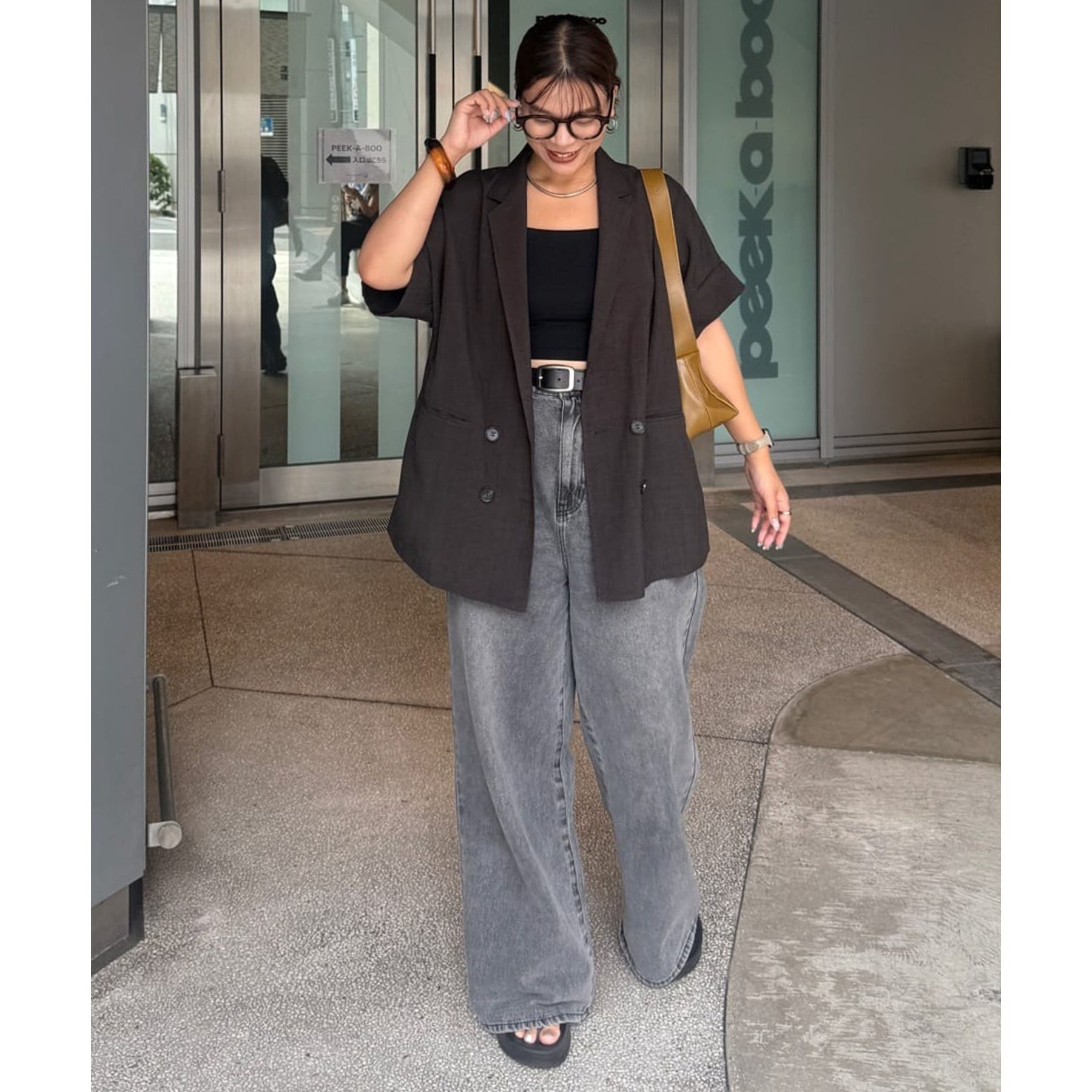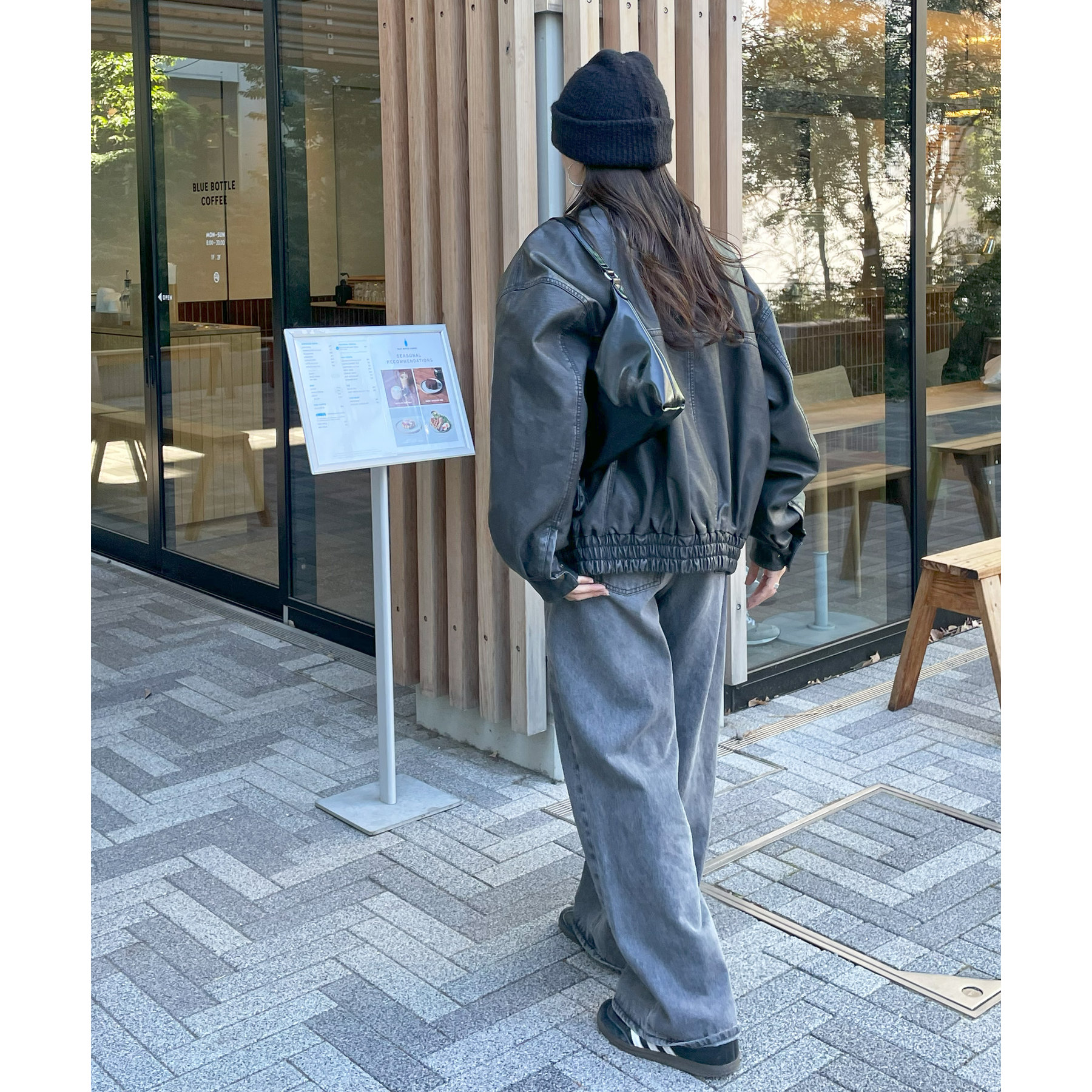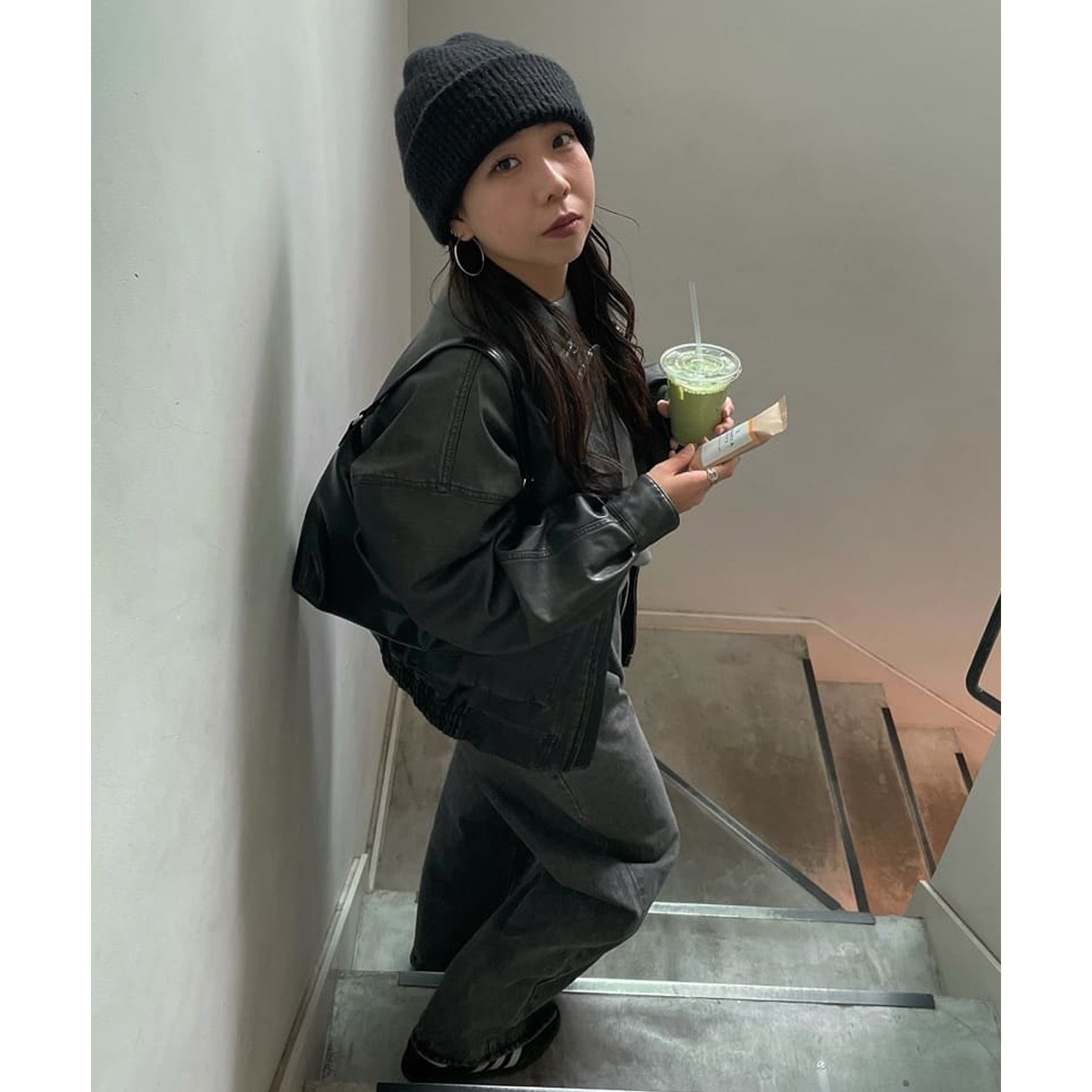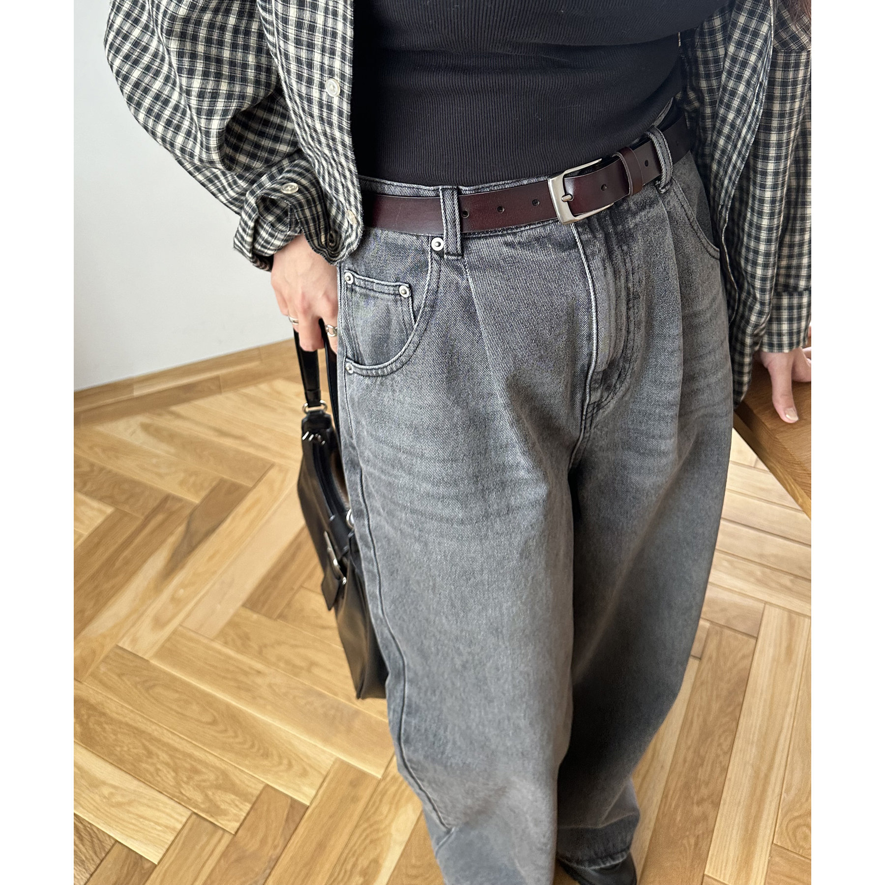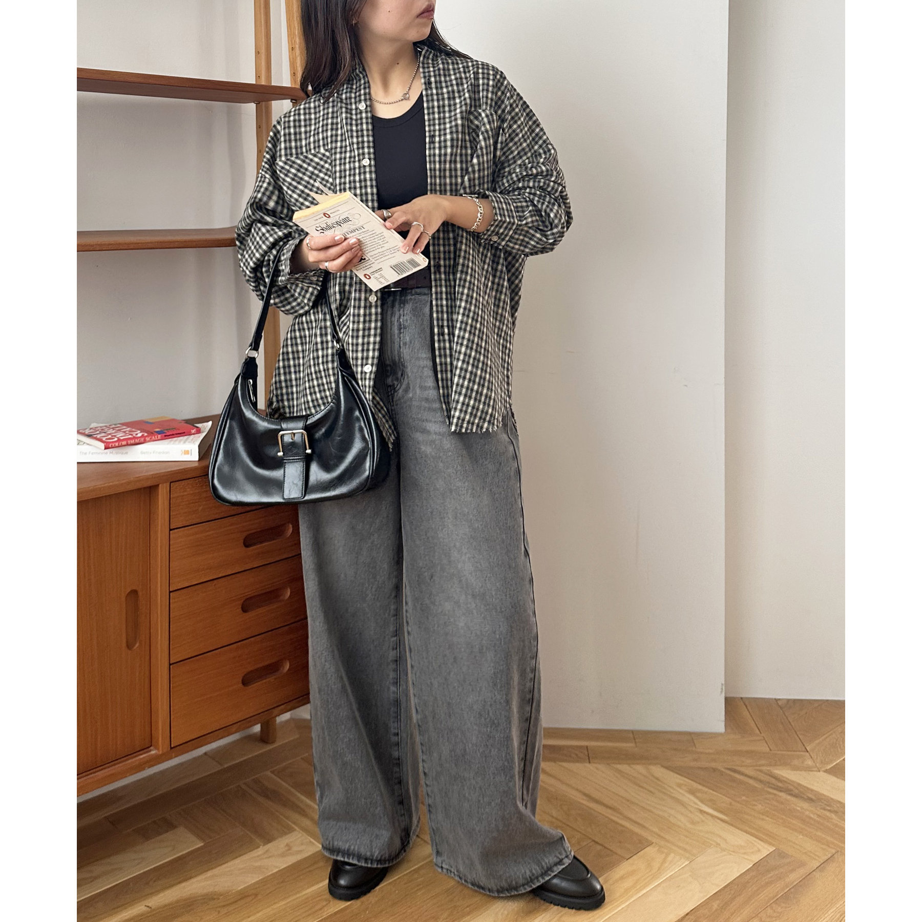 157cmスタッフ(Mサイズ着用):長めの着丈なのでブーツや少し高めのスニーカー合わせがおすすめ!甘めなブラウスと合わせてカジュアルダウンさせた着こなしも可愛い♡