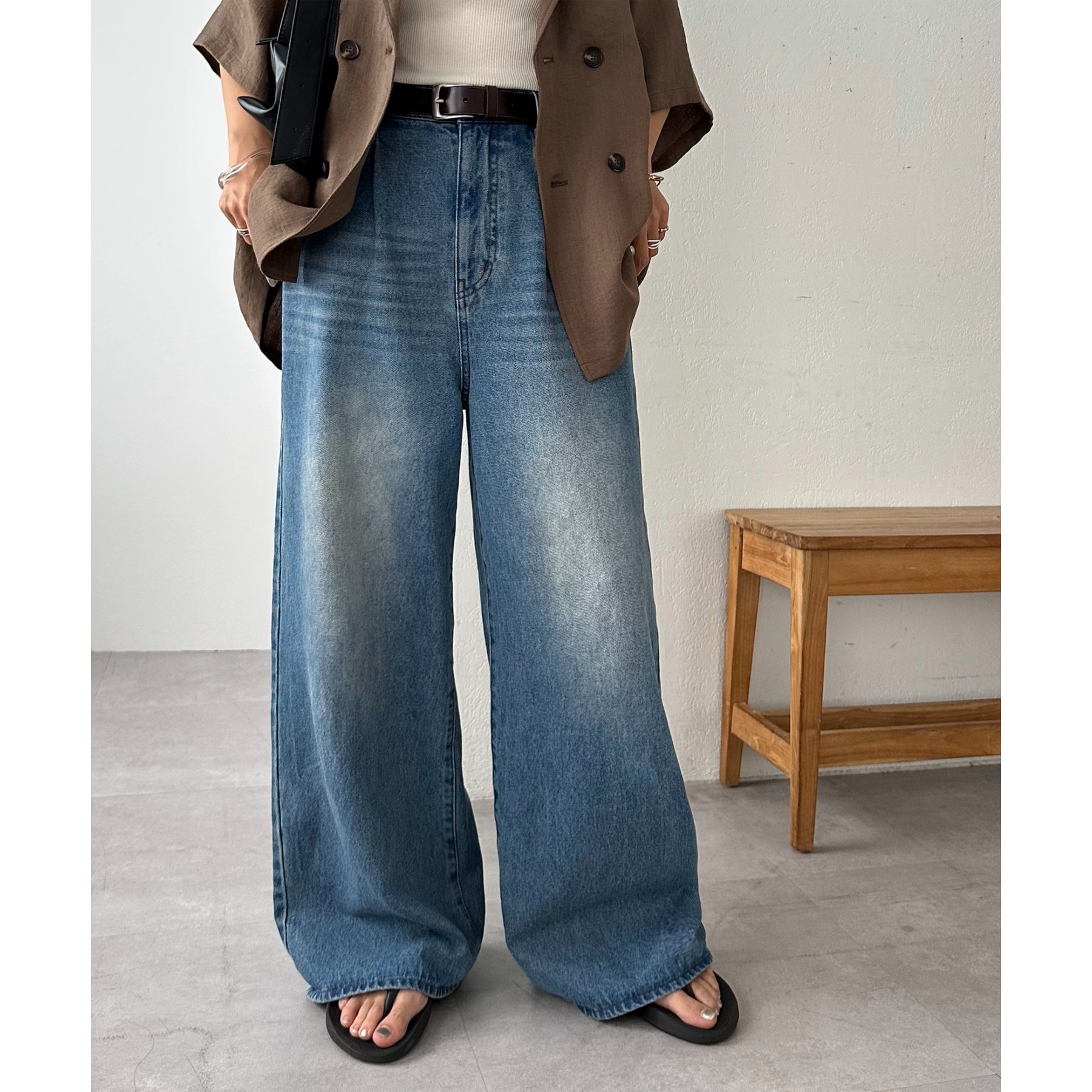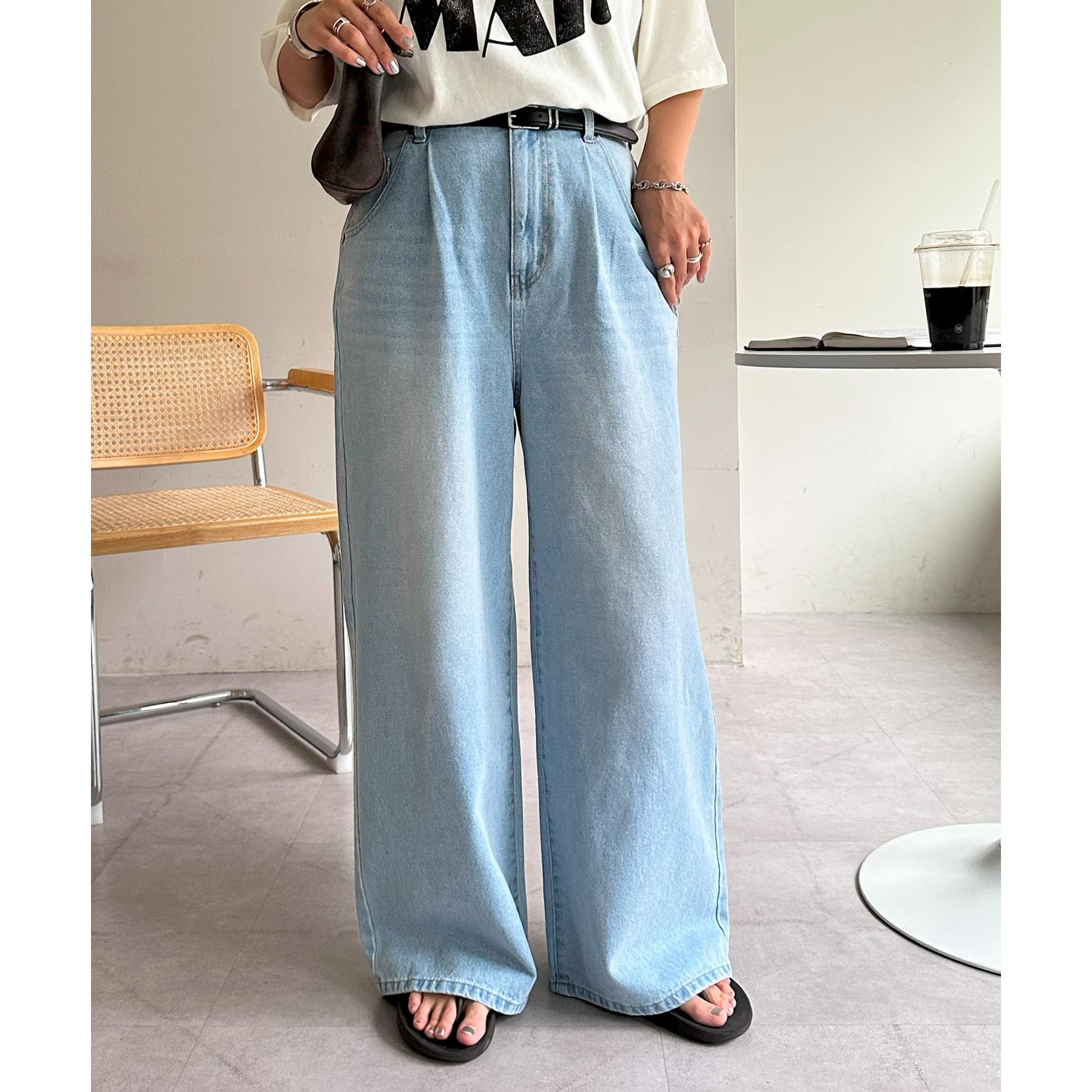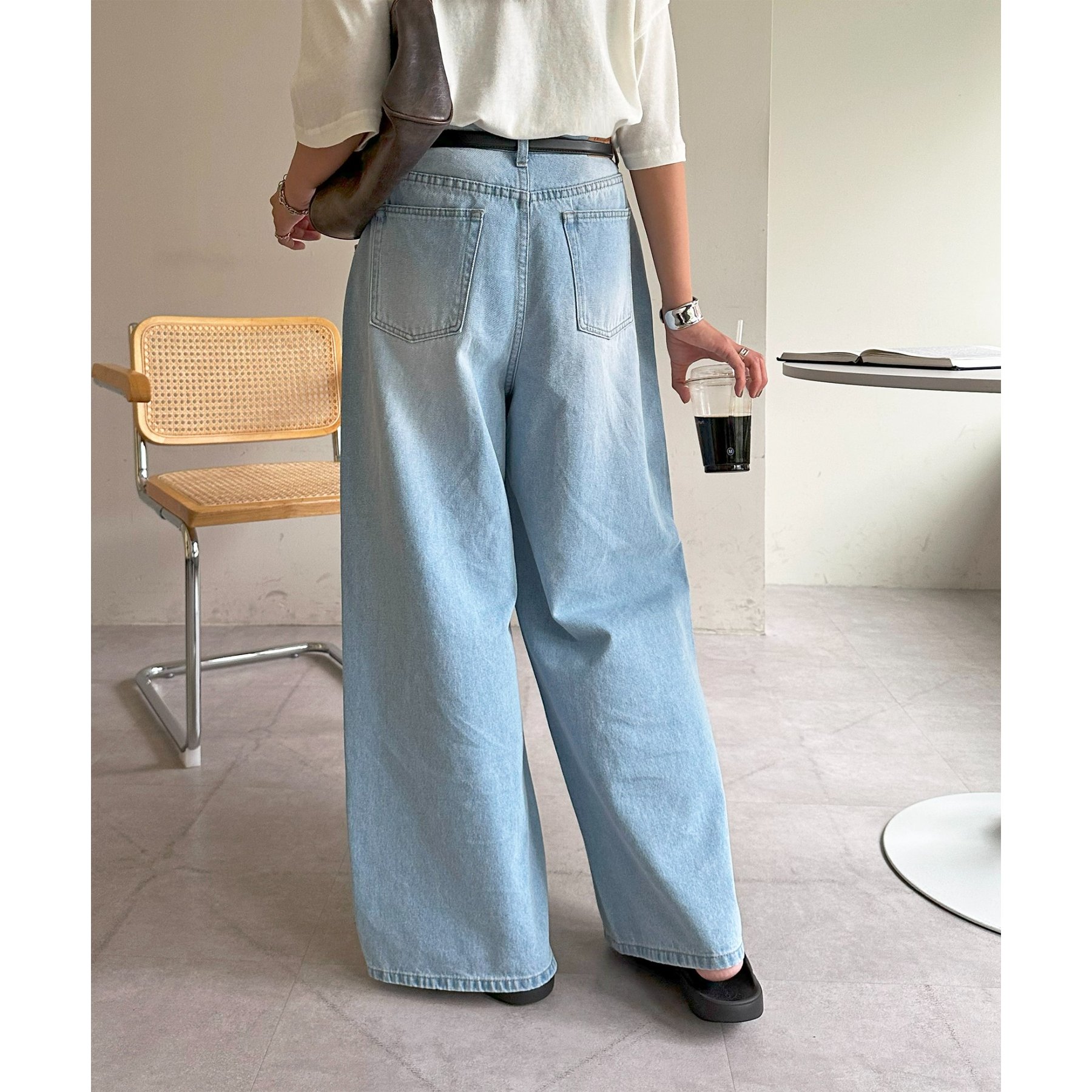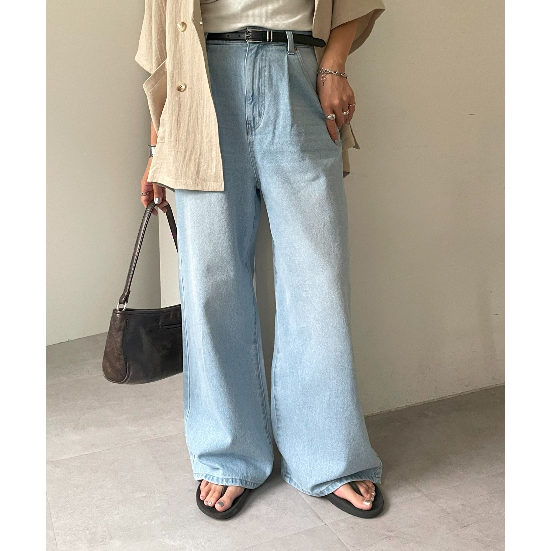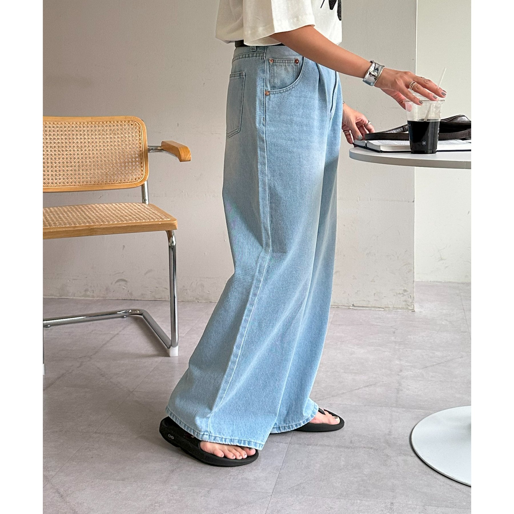綺麗なシルエットでどんなスタイルにもマッチするワイドデニムパンツ