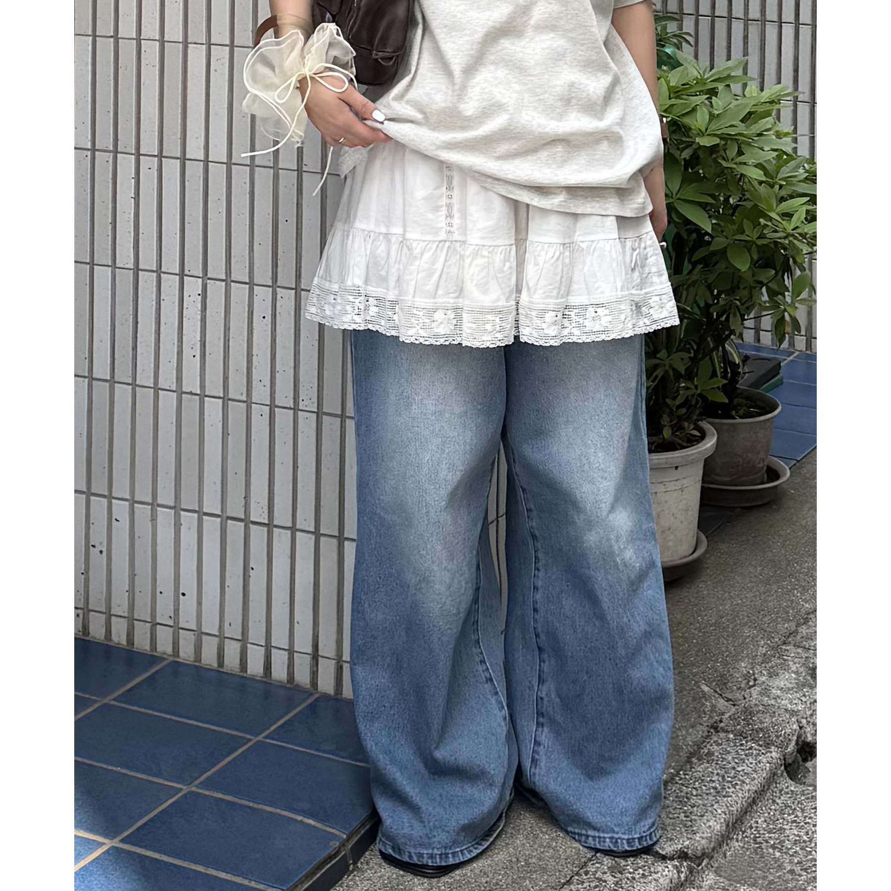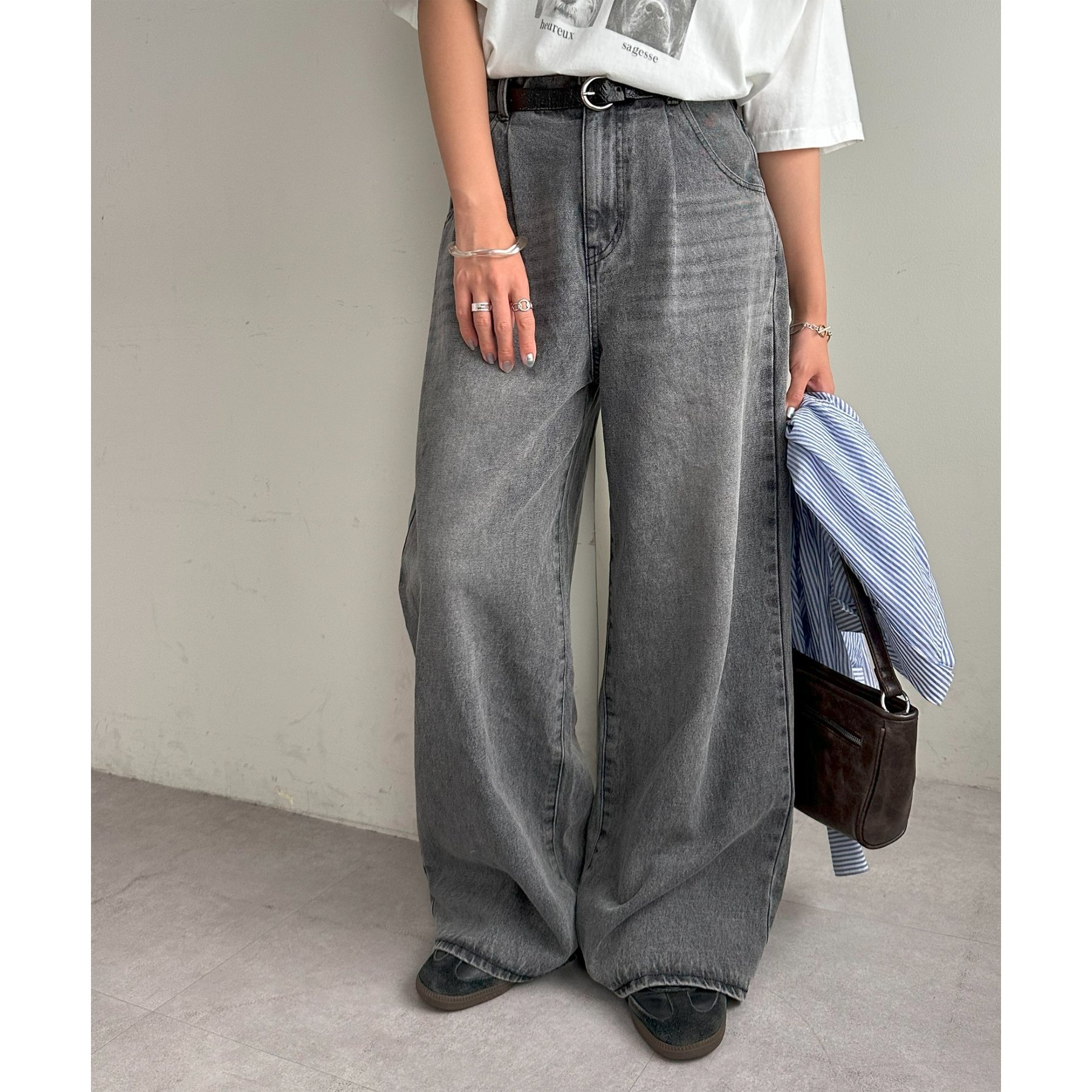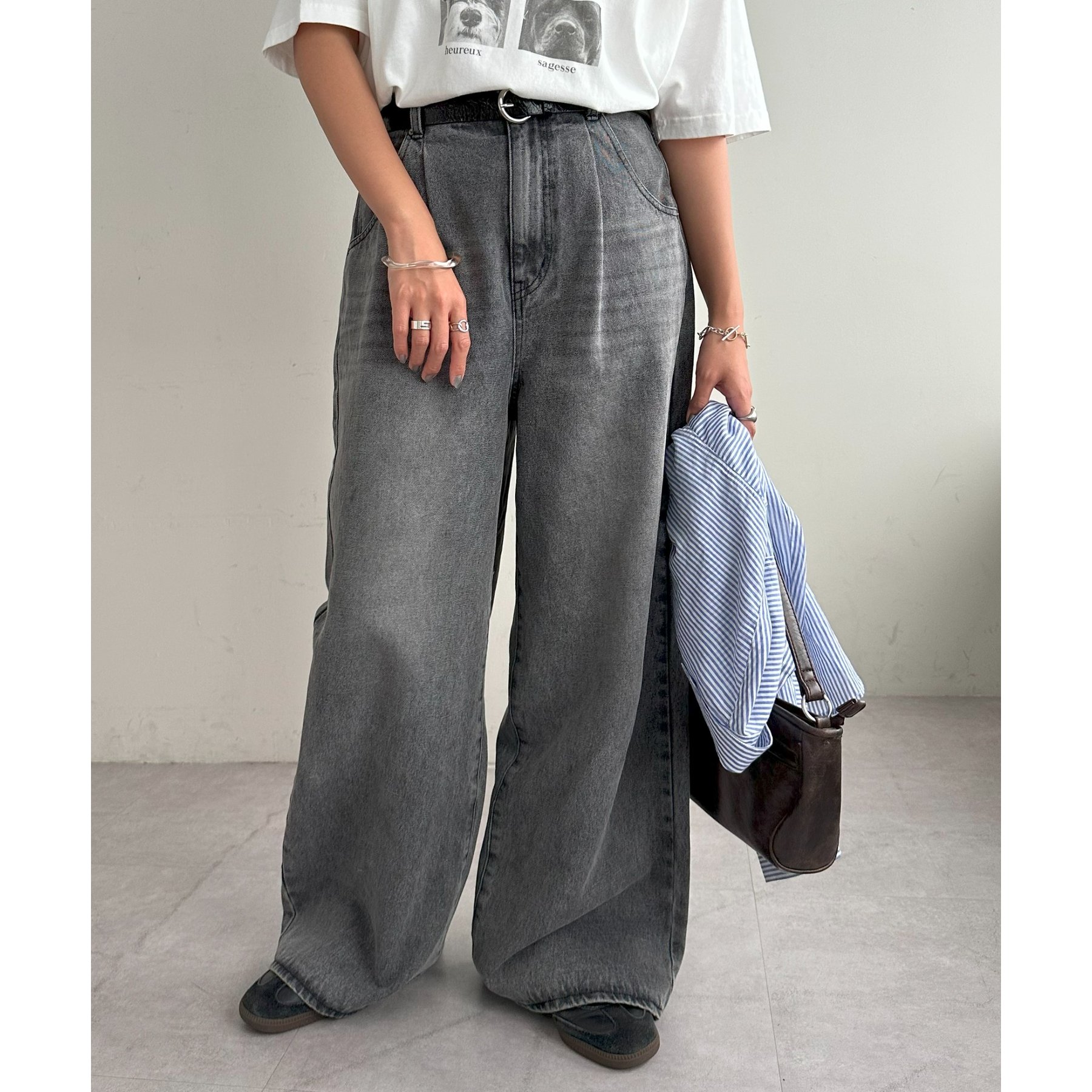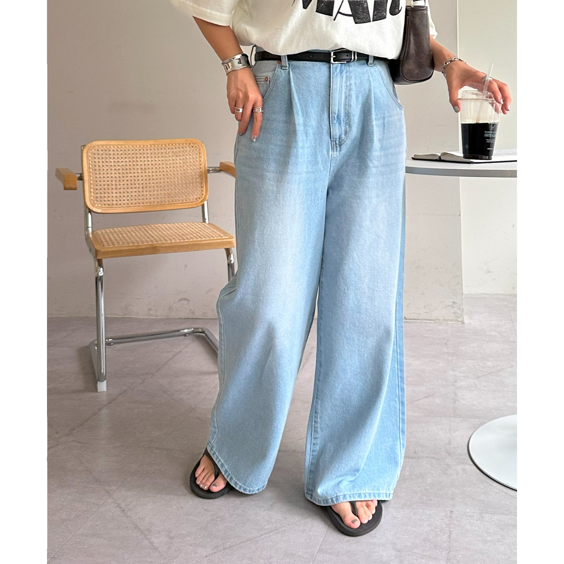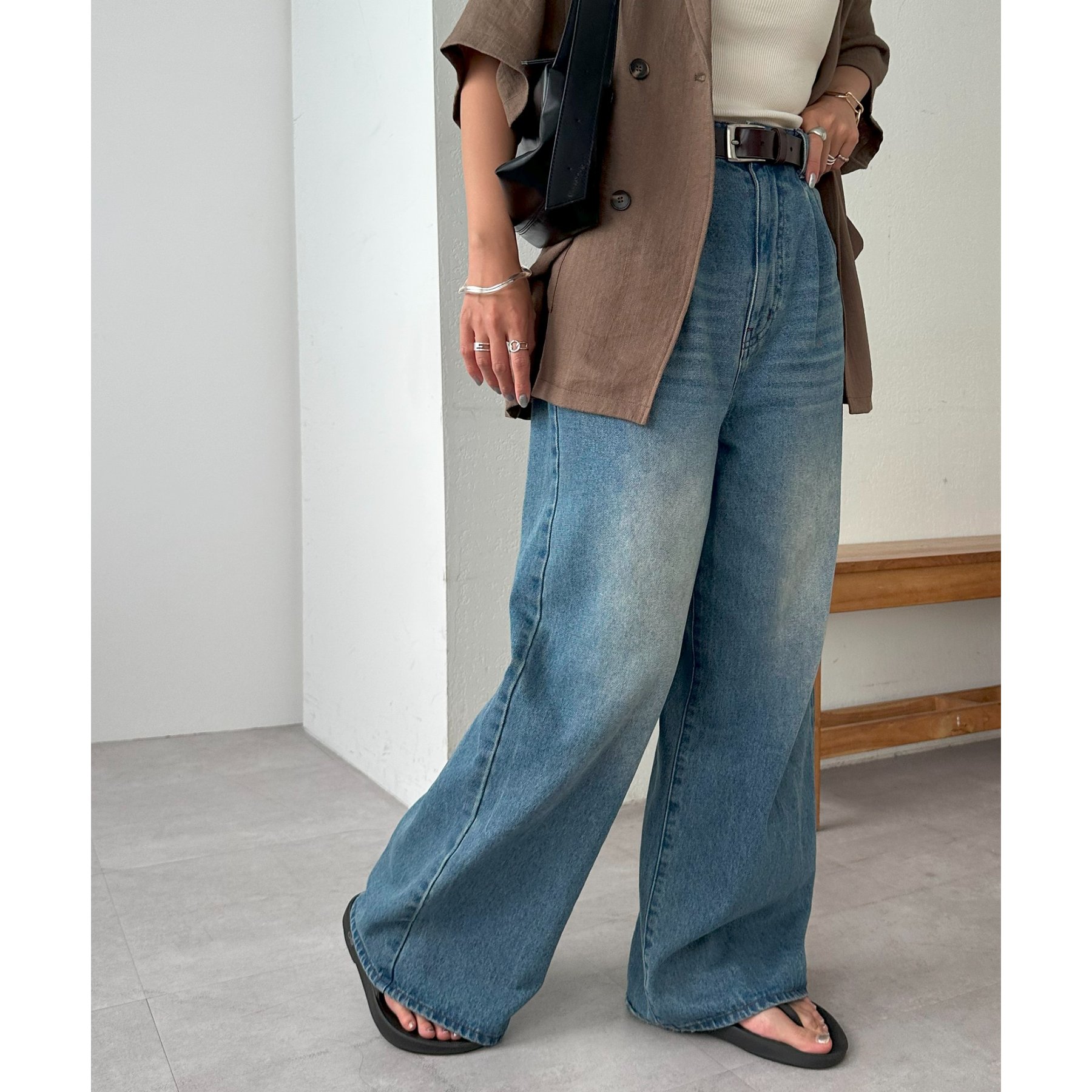 綺麗なシルエットでどんなスタイルにもマッチするワイドデニムパンツ