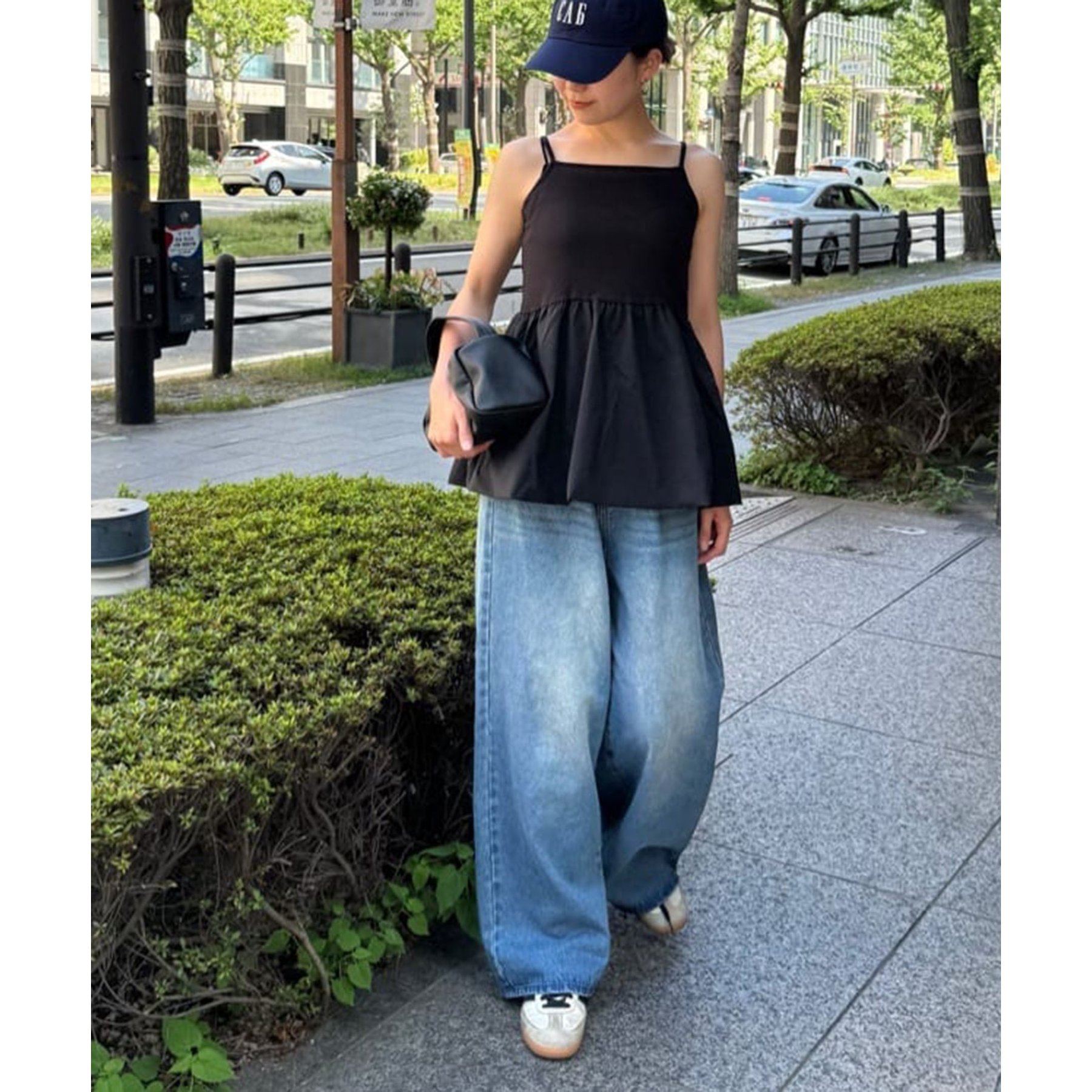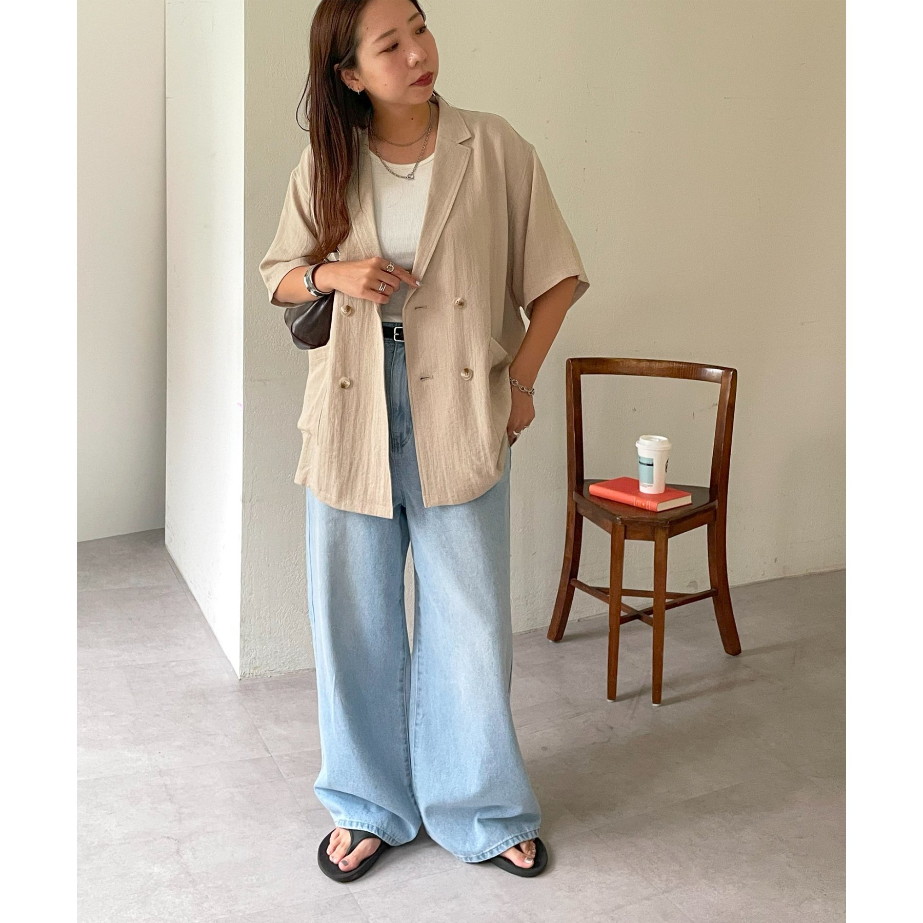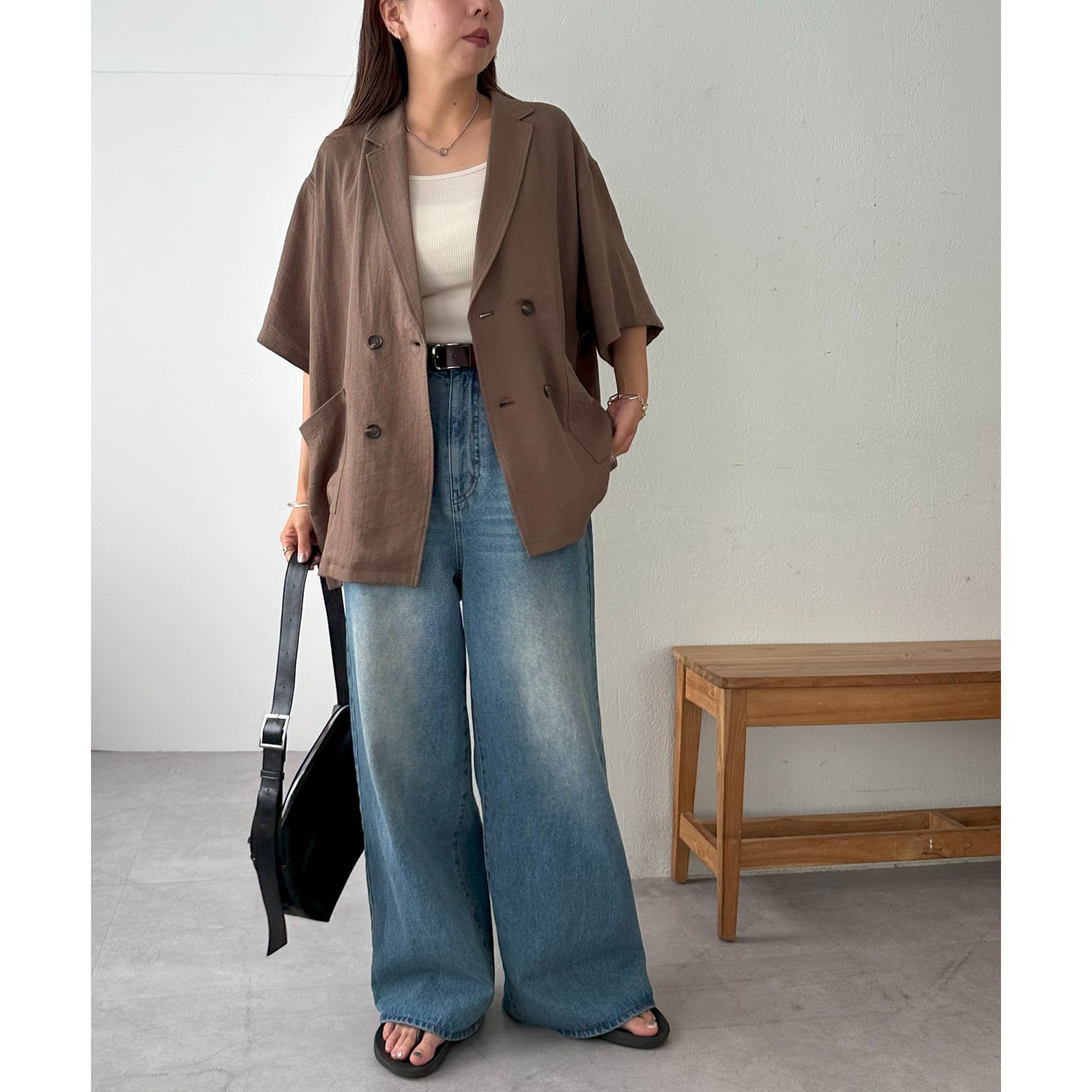 シャツやロゴTに合わせたカジュアルコーデや、ブラウスやトレンド感のあるキャミチュニック合わせも◎様々なテイストのコーディネートに活躍します。ボリューム感のあるシルエットを活かしてトップスはコンパクトにまとめるとバランスが良く、スタイルアップが叶います◎