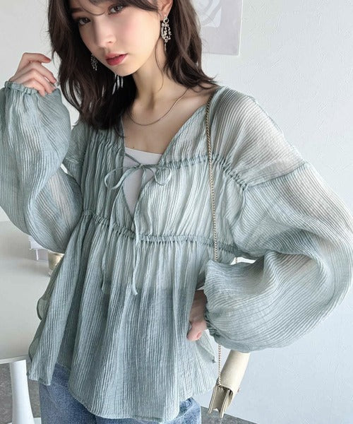ふんわりとした肌触りで涼し気な印象の大人かわいいブラウス♪