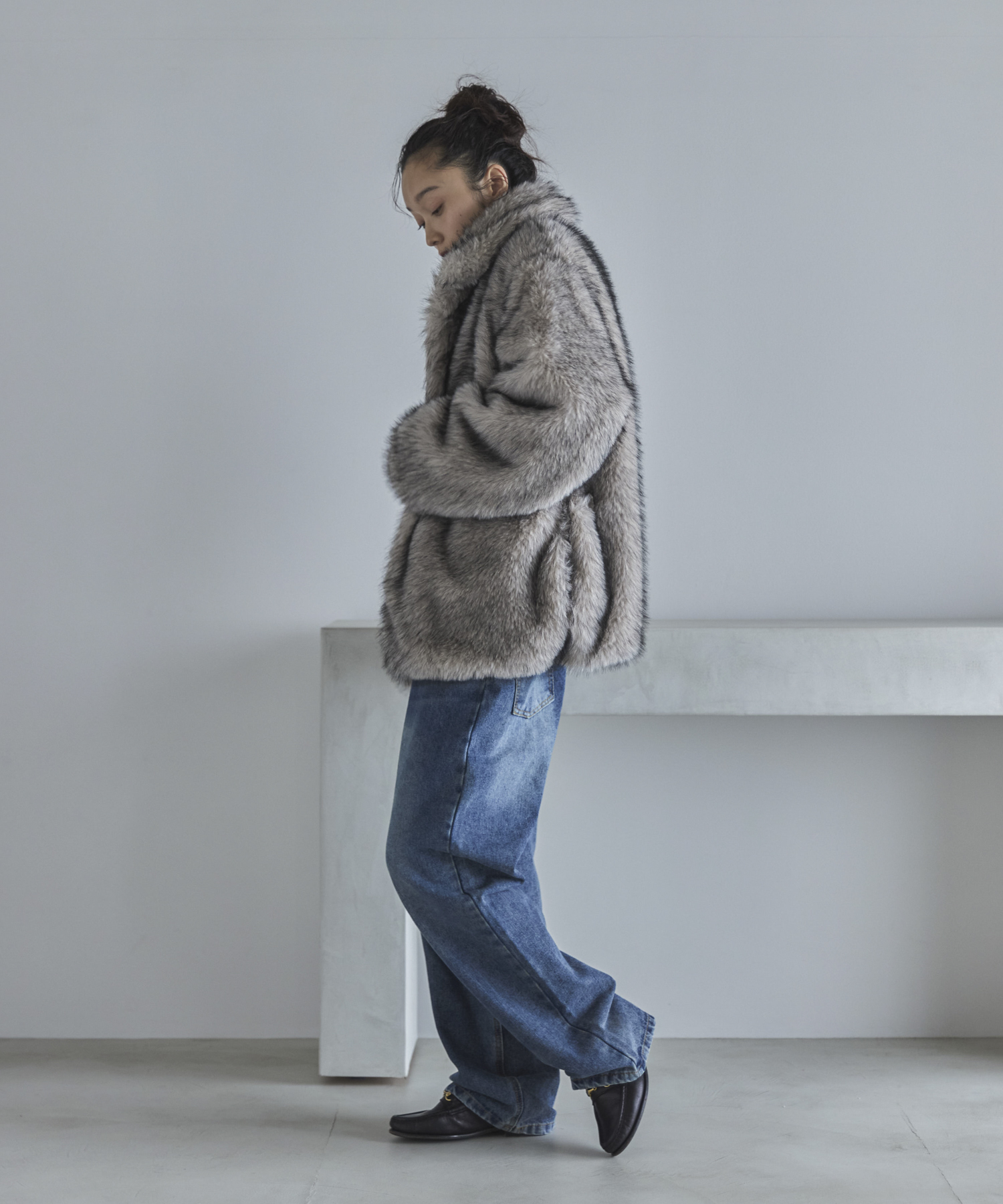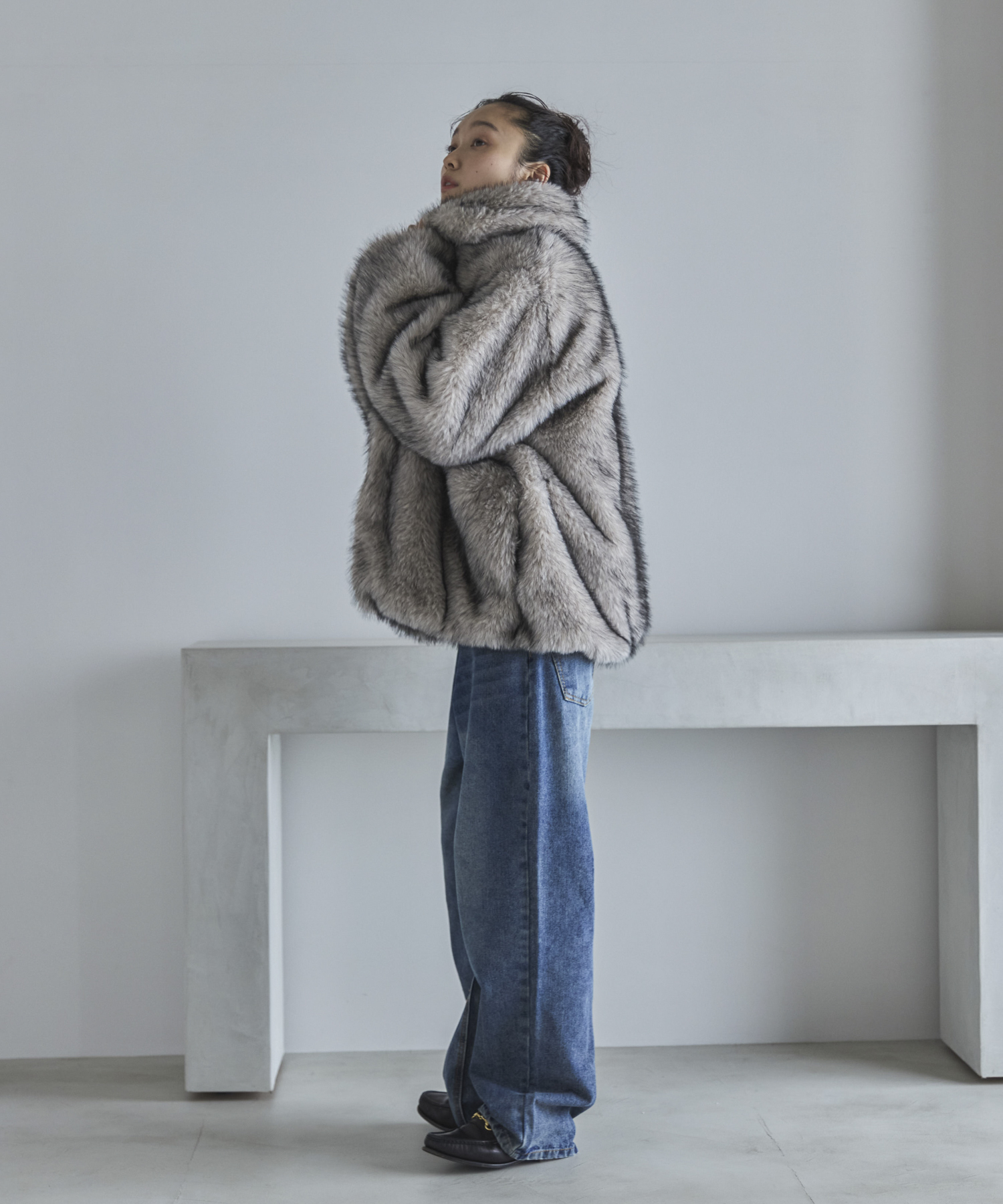 奥行きのあるミックスカラーのファーで高見え感とお洒落さを兼ね備えた一着。
