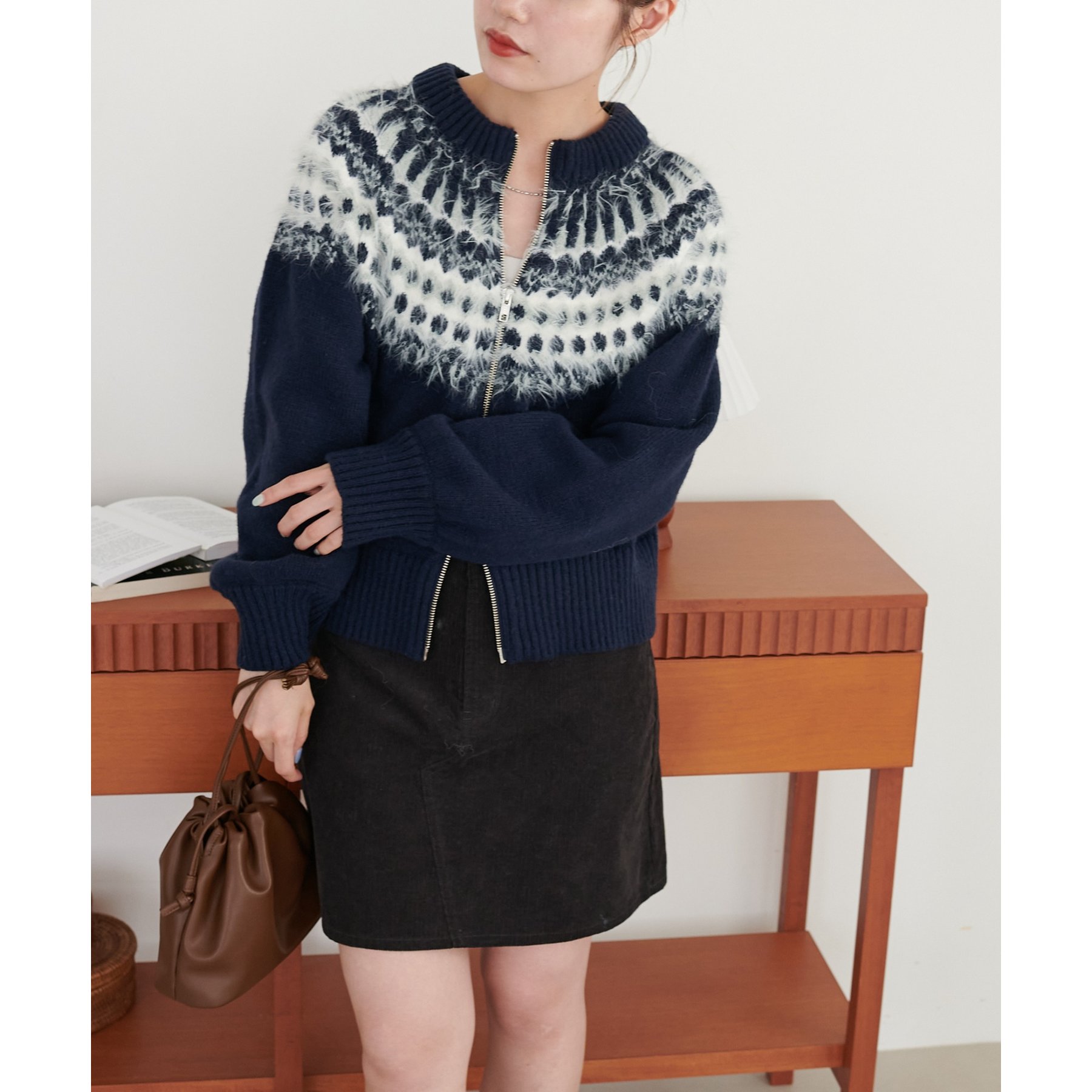 前開きのダブルジップ仕様は、上下どちらからも開閉できるため、着こなしのアレンジや温度調整がしやすいデザインになっています♪
