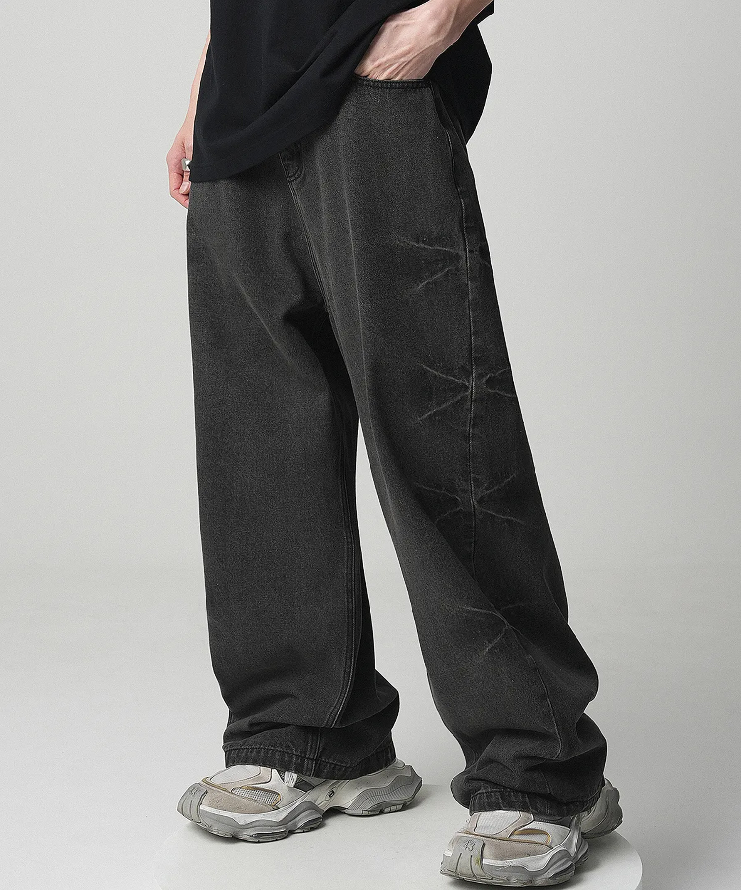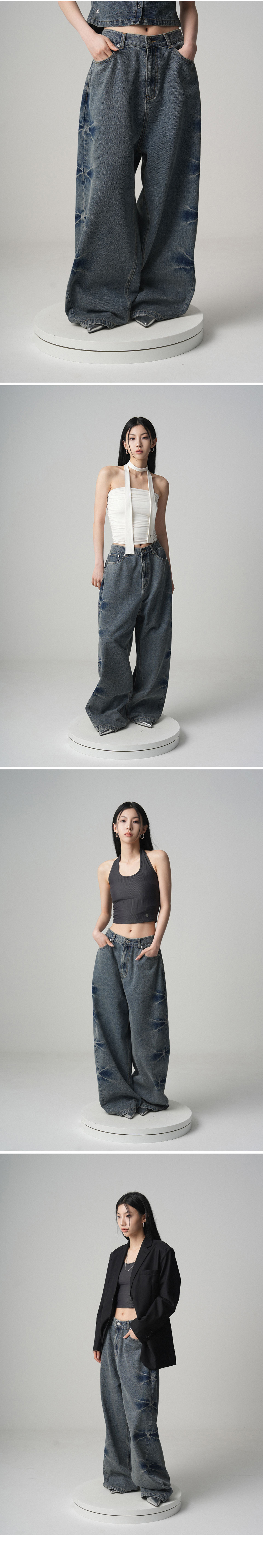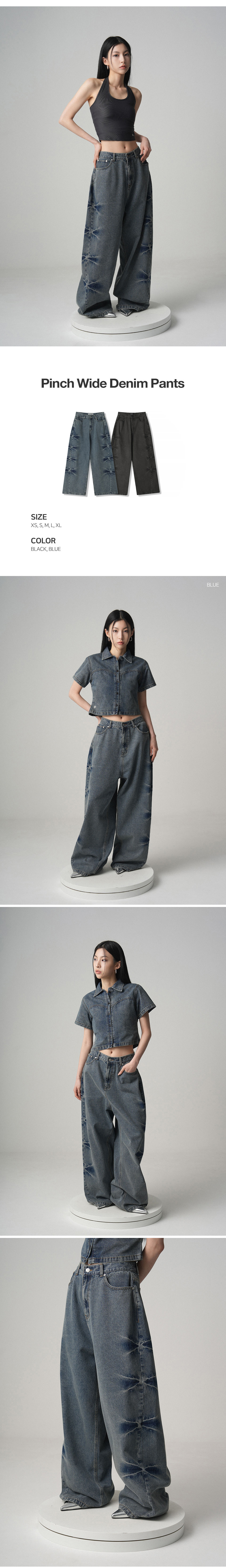 Pinch Wide Denim Pants - 2COL