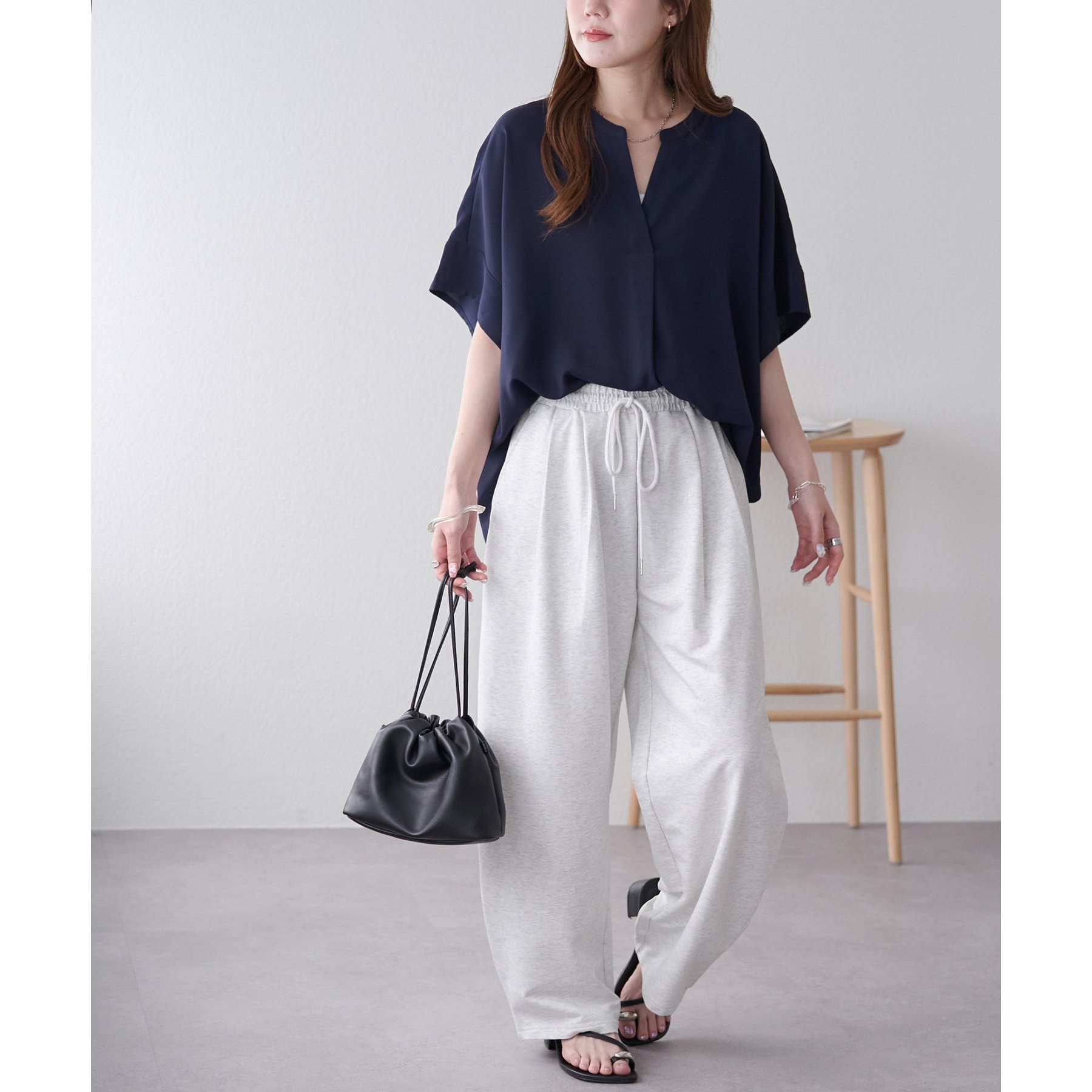 腰回りやヒップにも余裕がありリラックスした着心地が叶うのも嬉しいポイントです。
