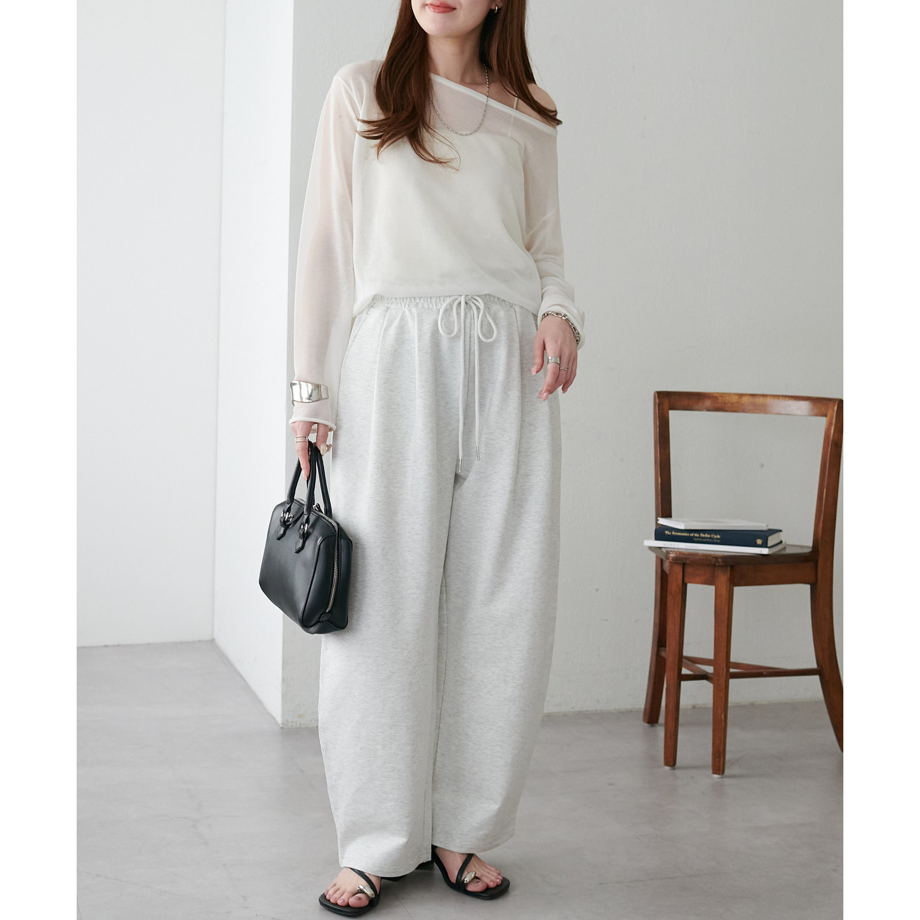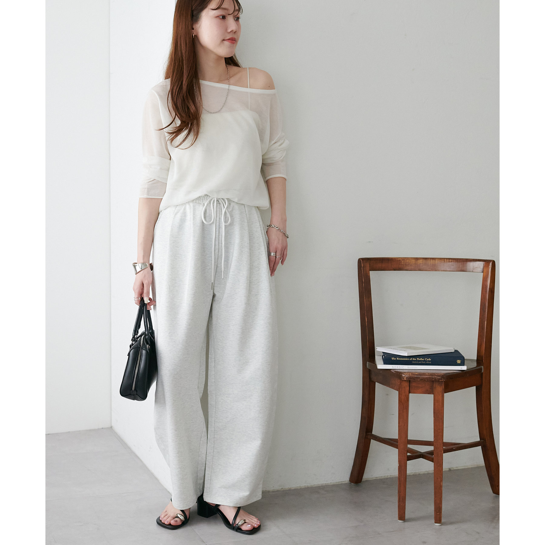 ボリューム感は出るので、低身長の方はコンパクトな着丈のトップスと合わせるとバランスが取りやすくなります◎