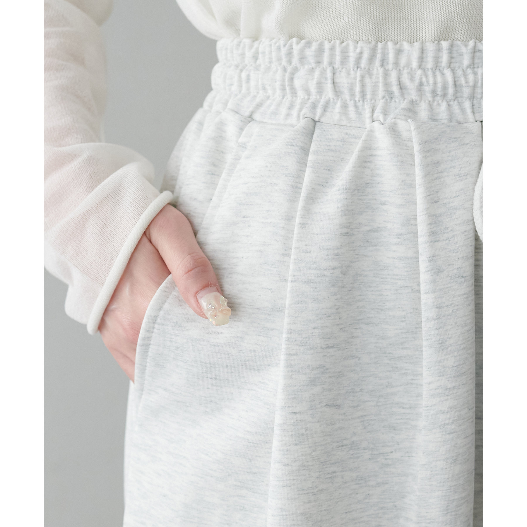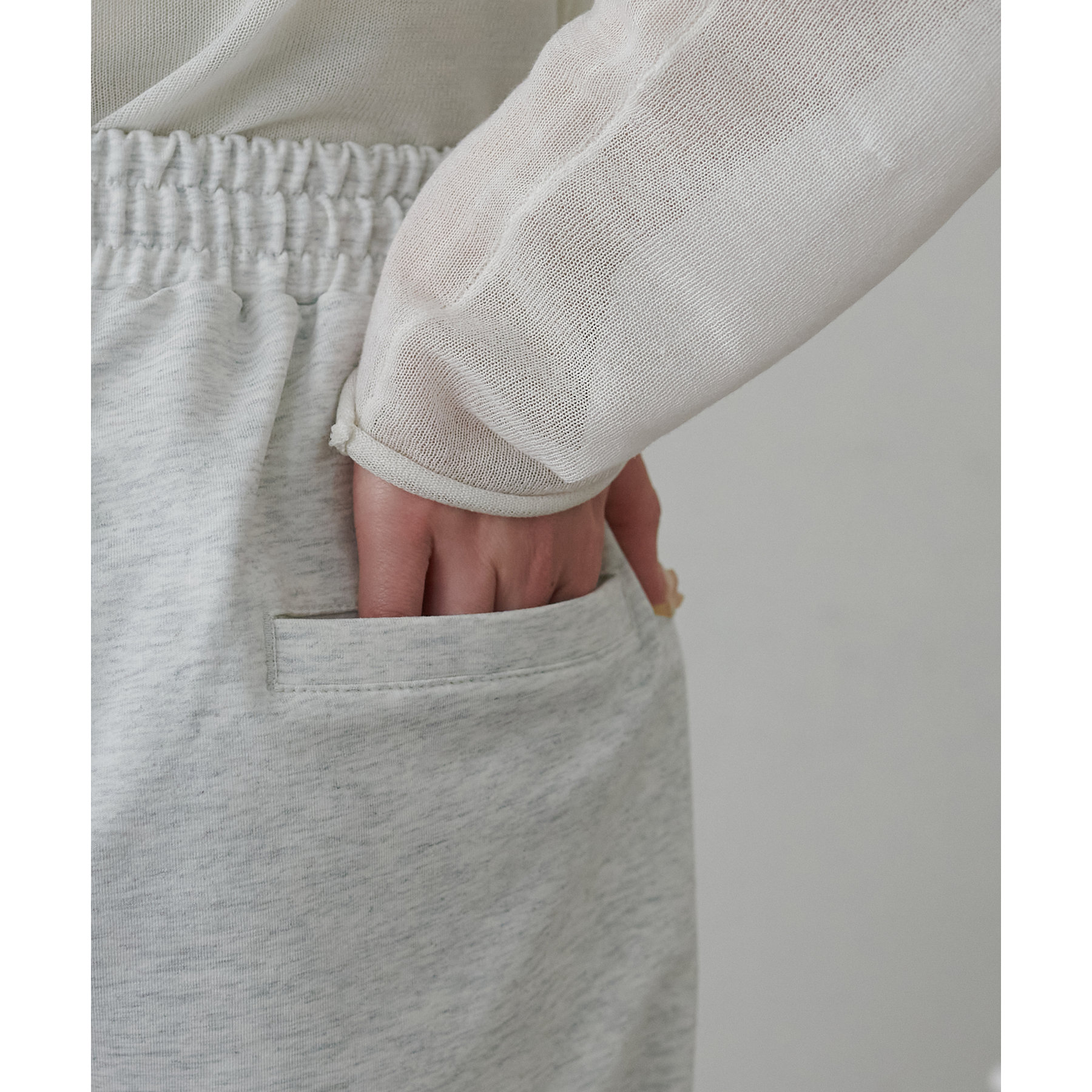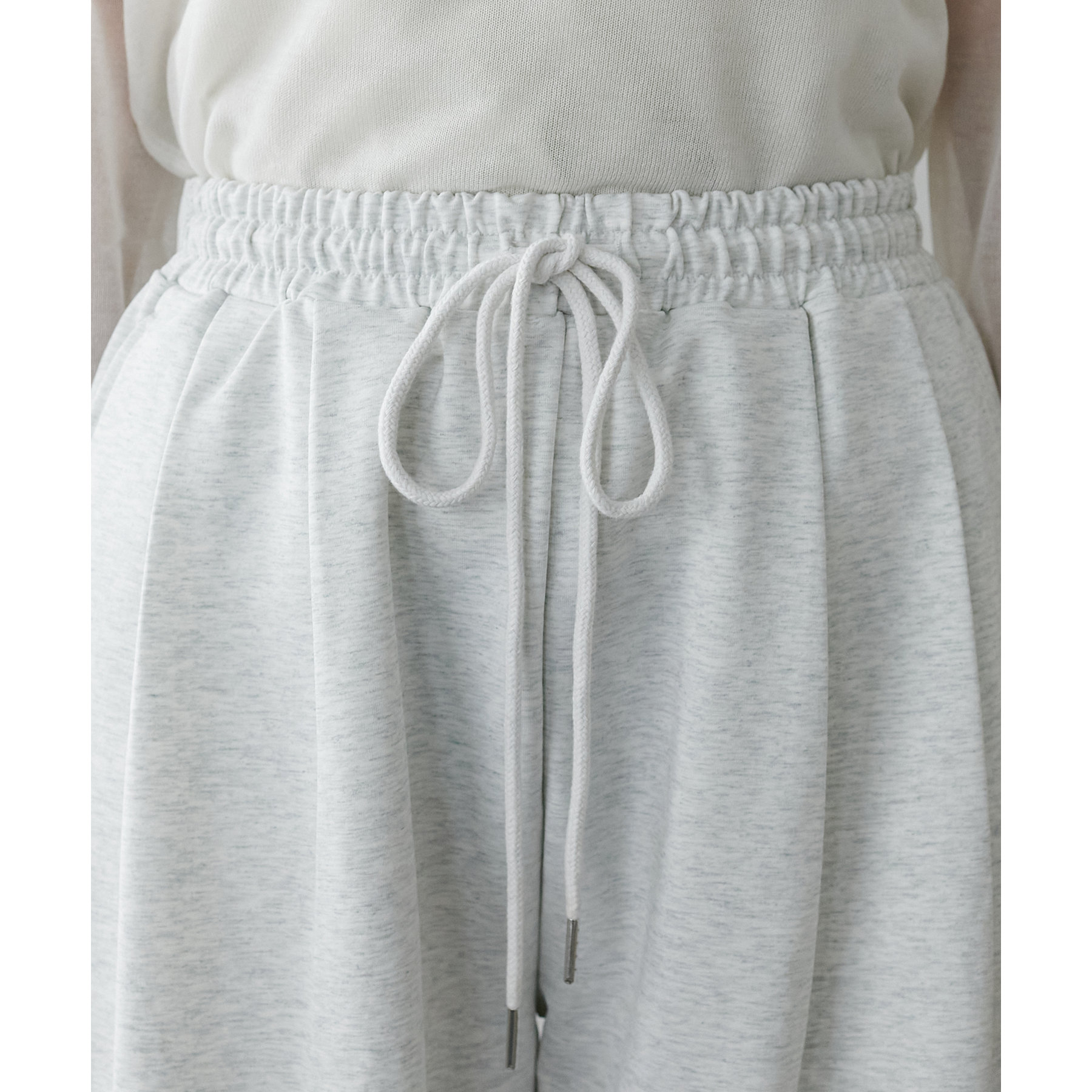 ウエストには、ゴムにプラスして紐がついていることで、お好きな位置で調整して着用いただくことが可能になっています。