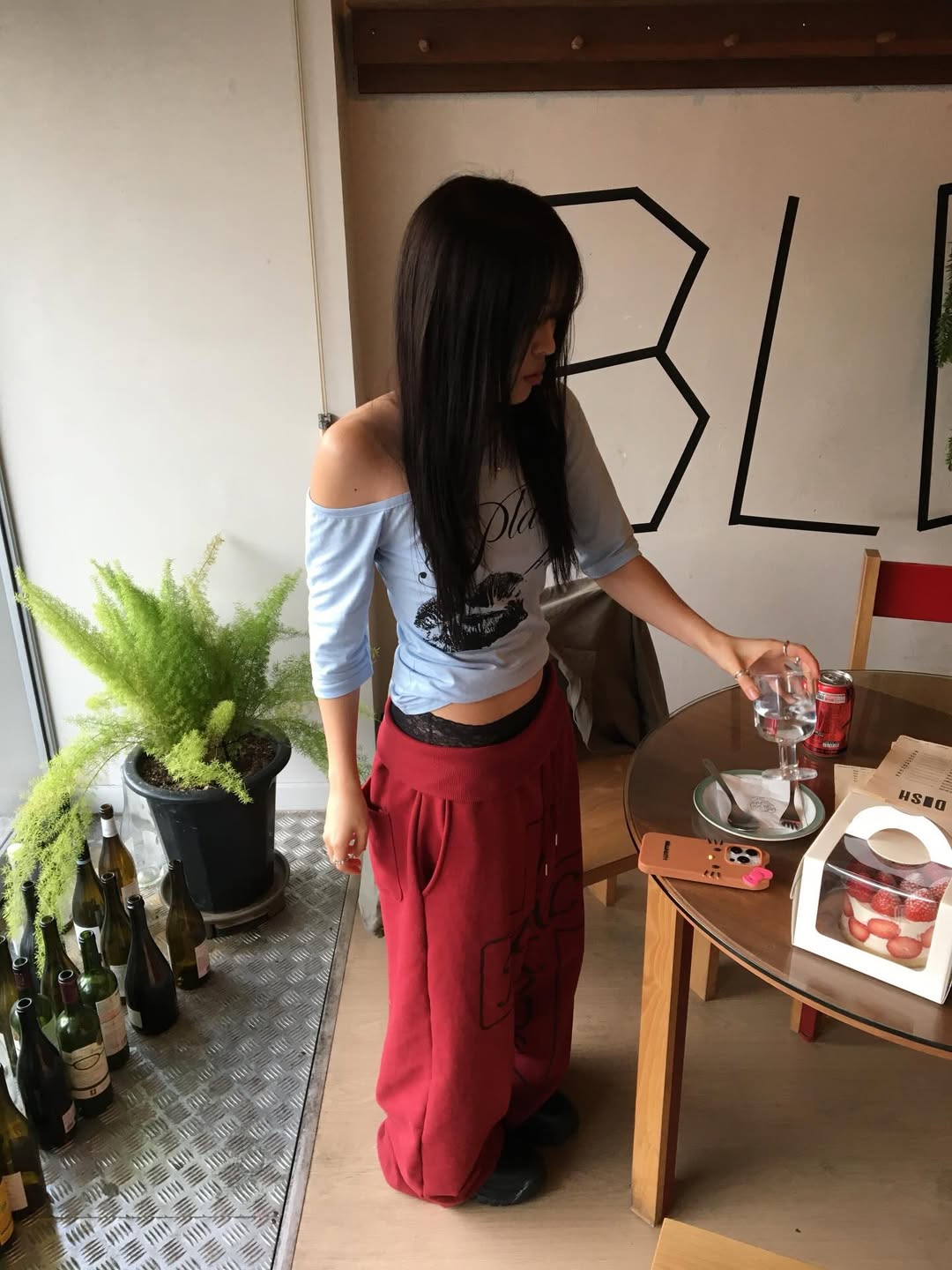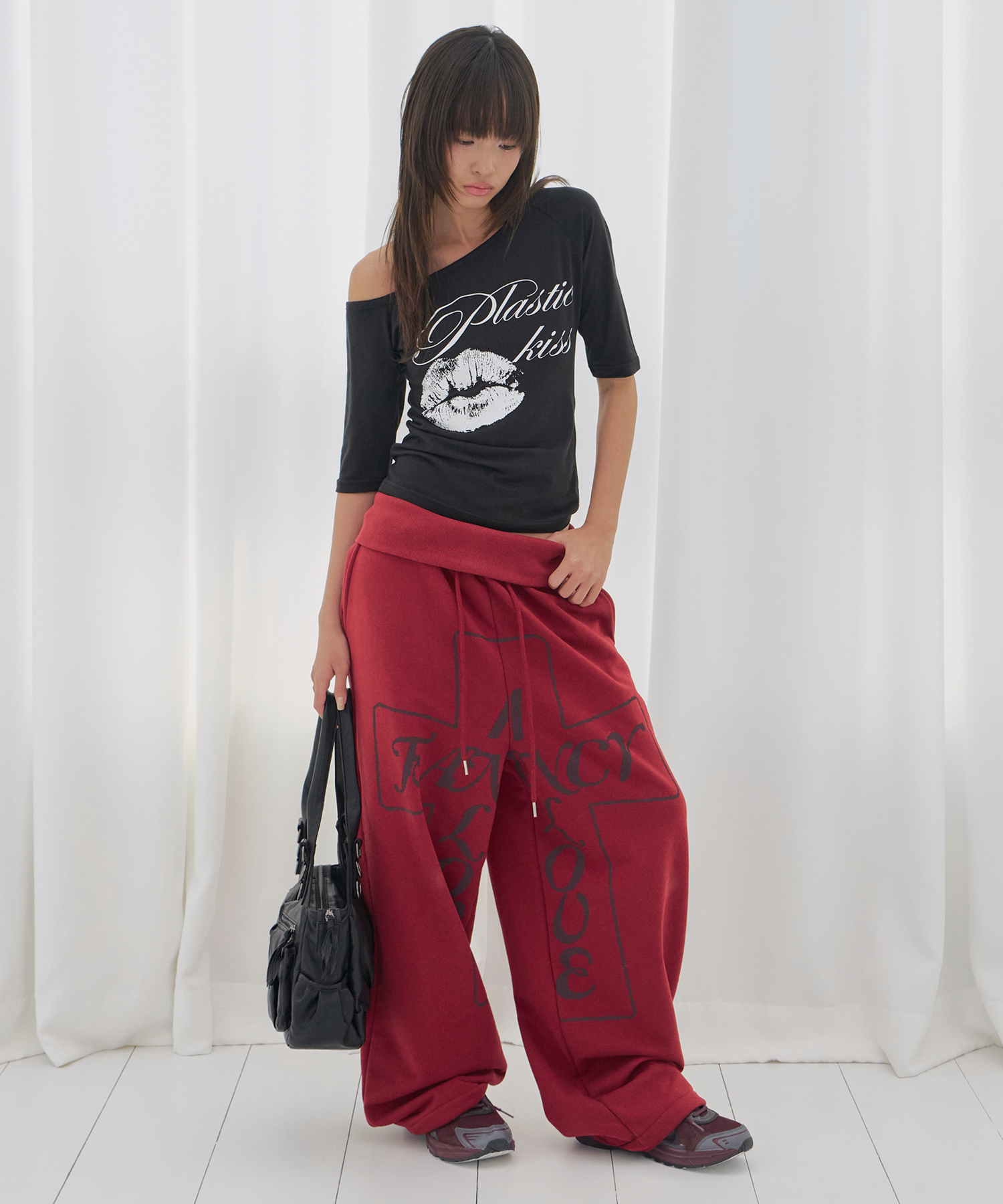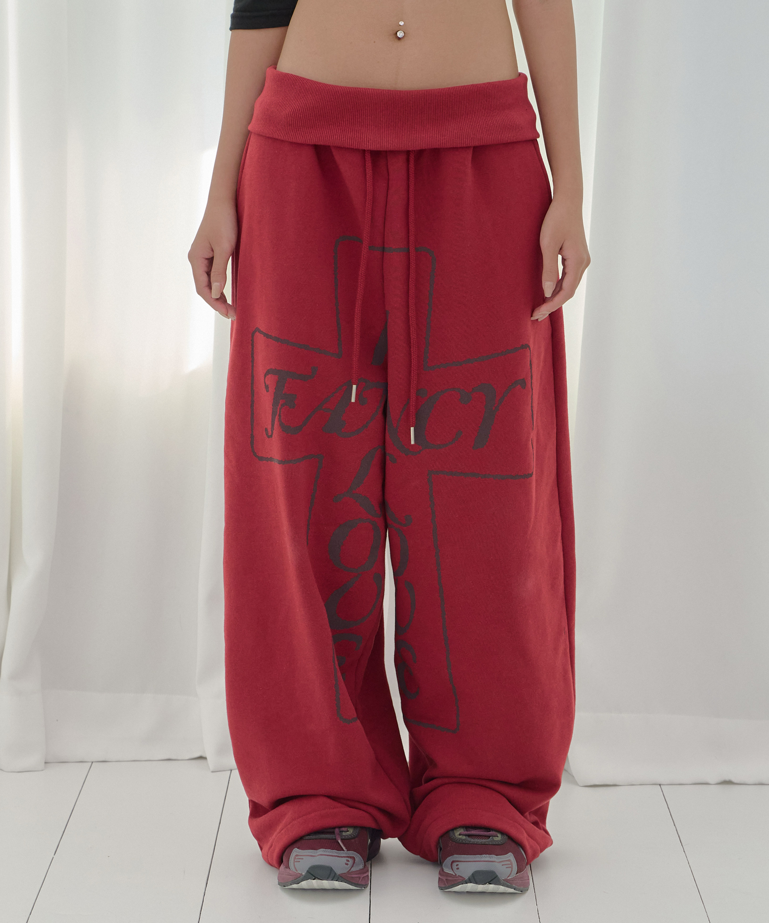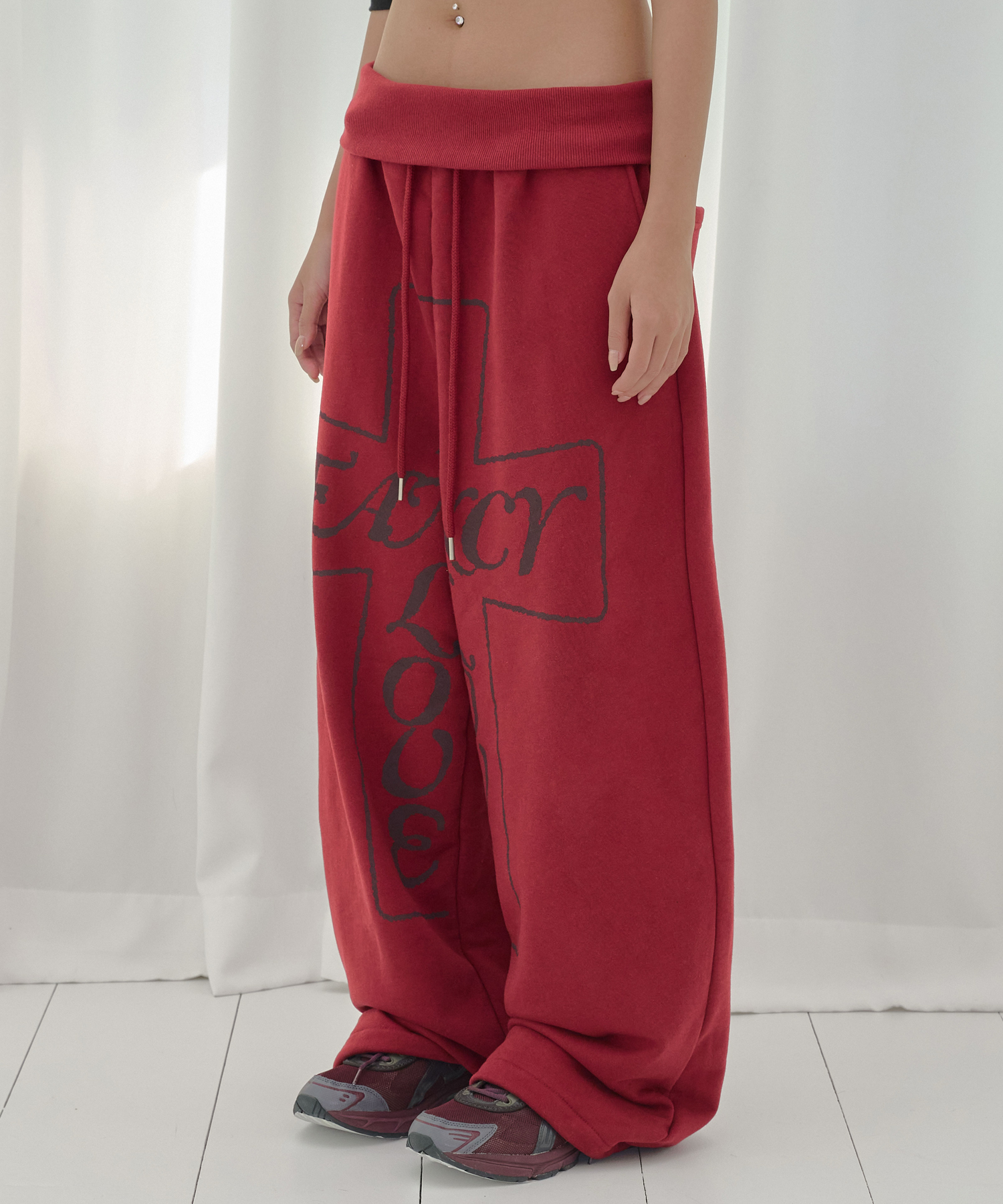 クロスウエストゴムスウェットパンツ(チェリーレッド)