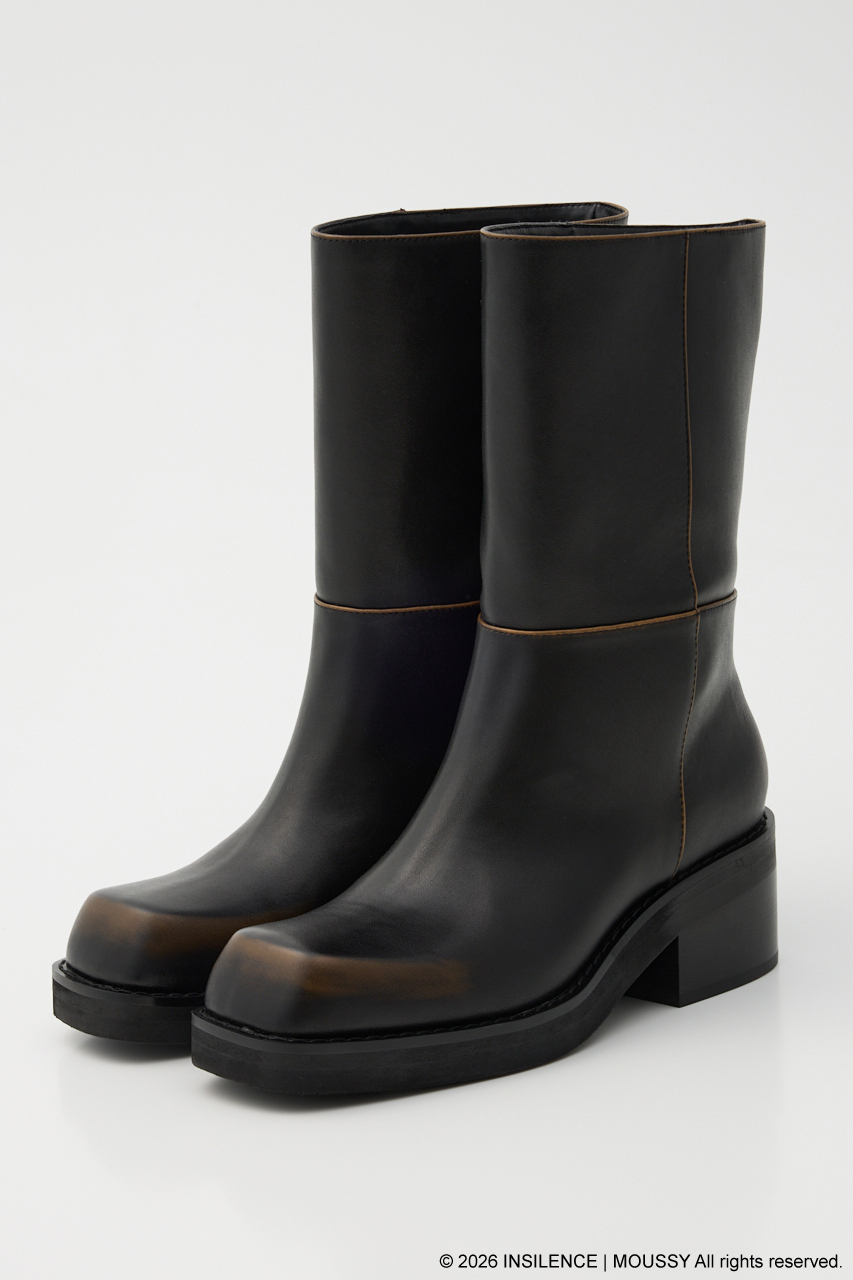 INSILENCEコラボならではのミニマルな感性が光るスクエアトゥブーツ。