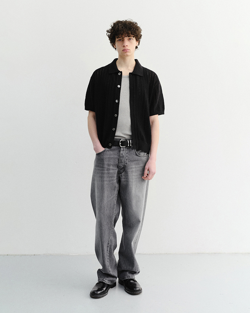 CROCHET COLLARED CARDIGAN BLACK_M_UDSW6B321BK