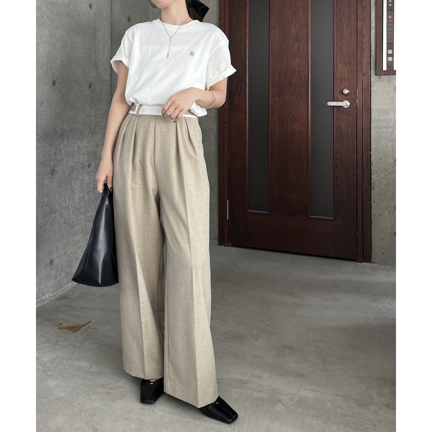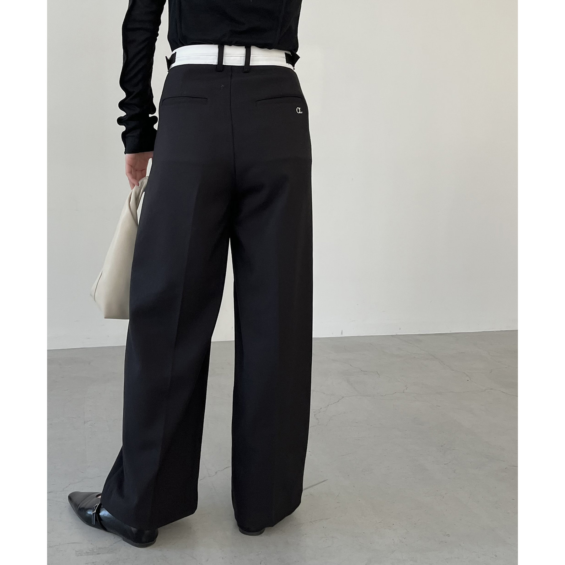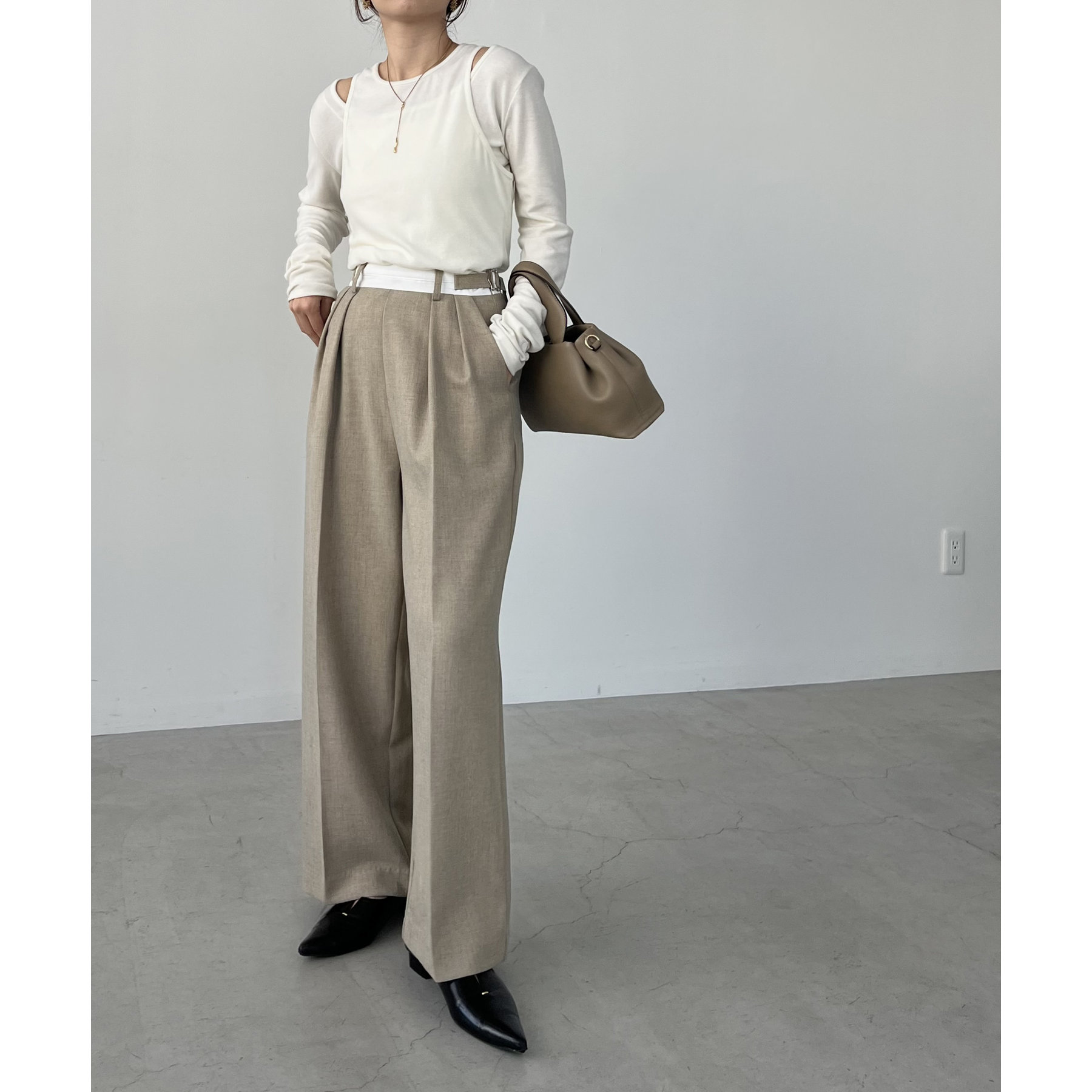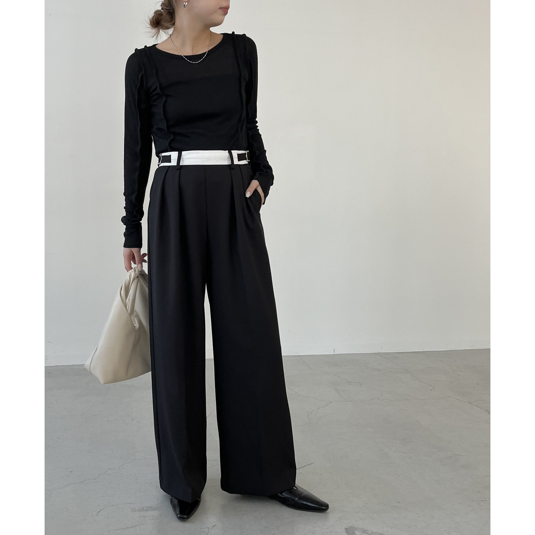 ・インしたときに配色ベルトがポイントになるタックパンツ