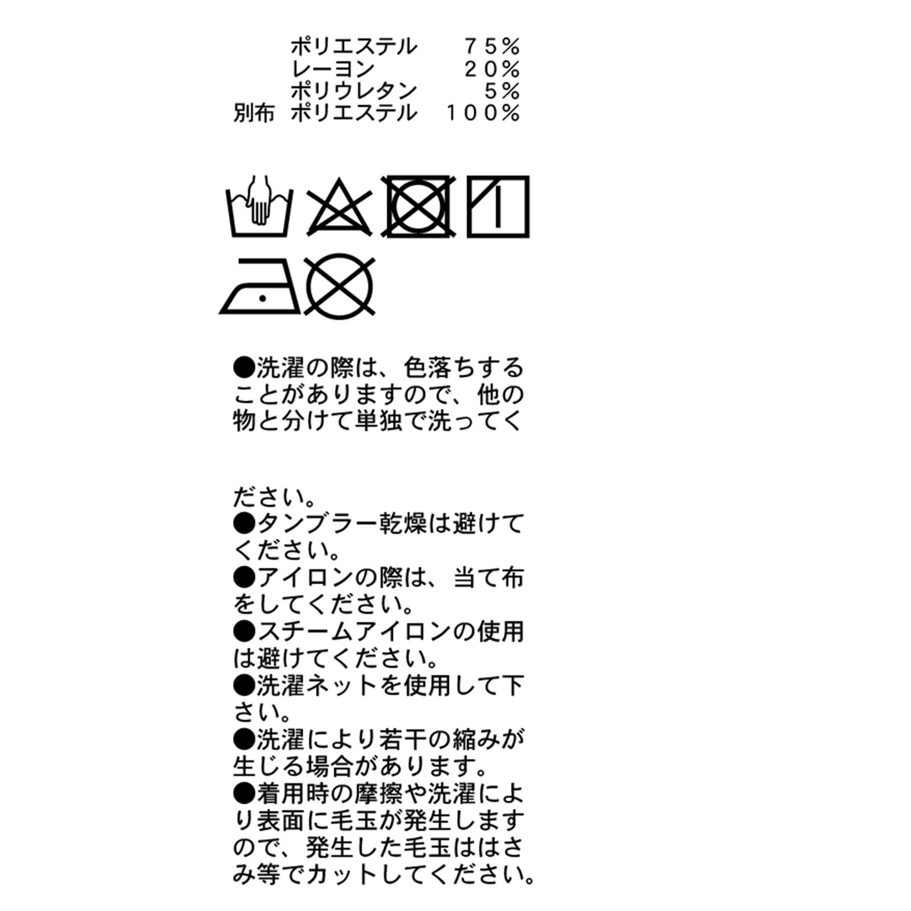 本体:ポリエステル75% レーヨン20% ポリウレタン5%