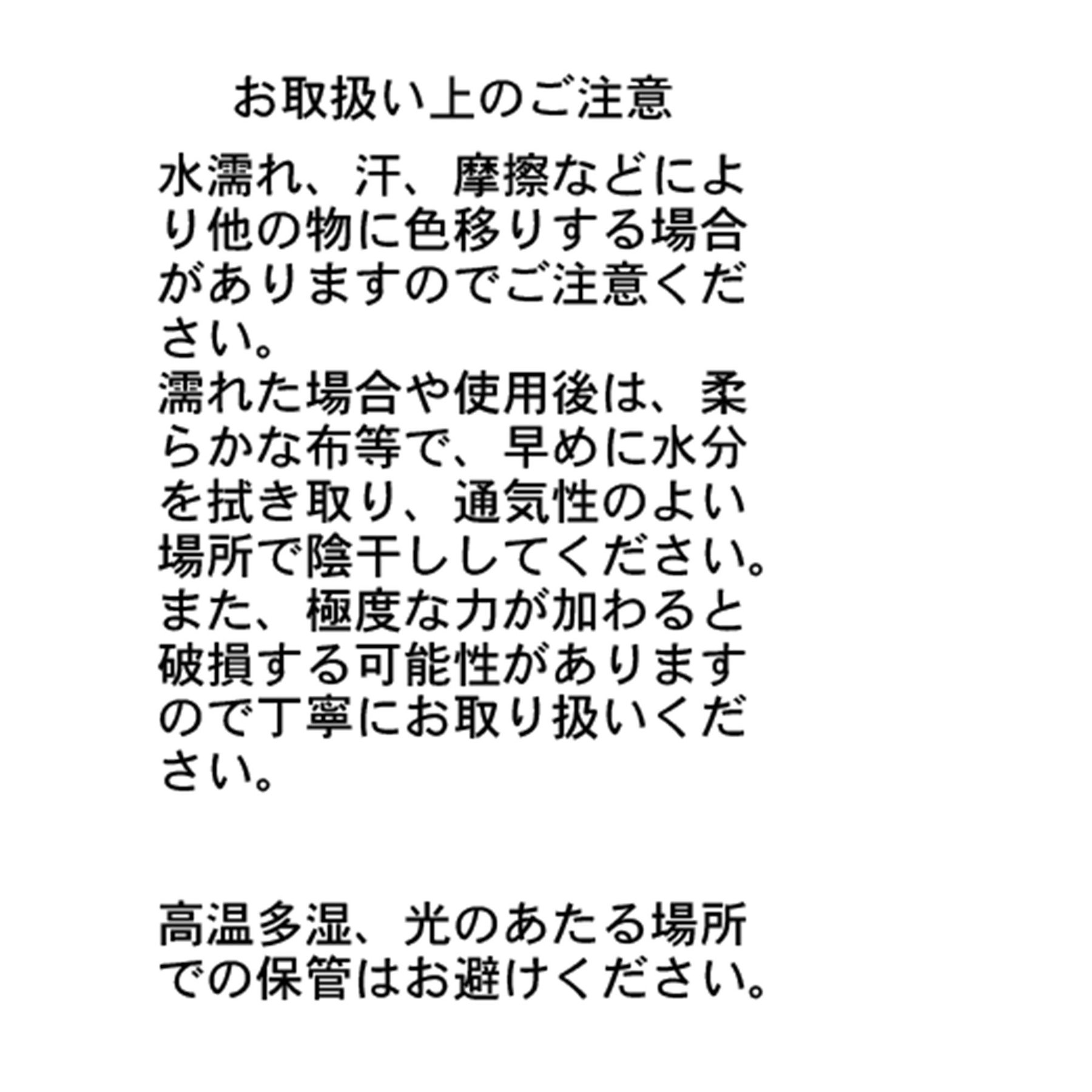 ※水濡れ、汗、摩擦などにより他の物に色移りする場合がございます。