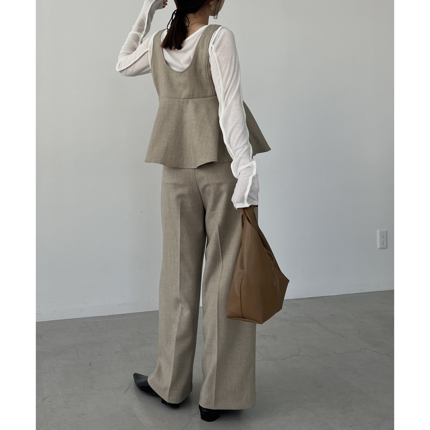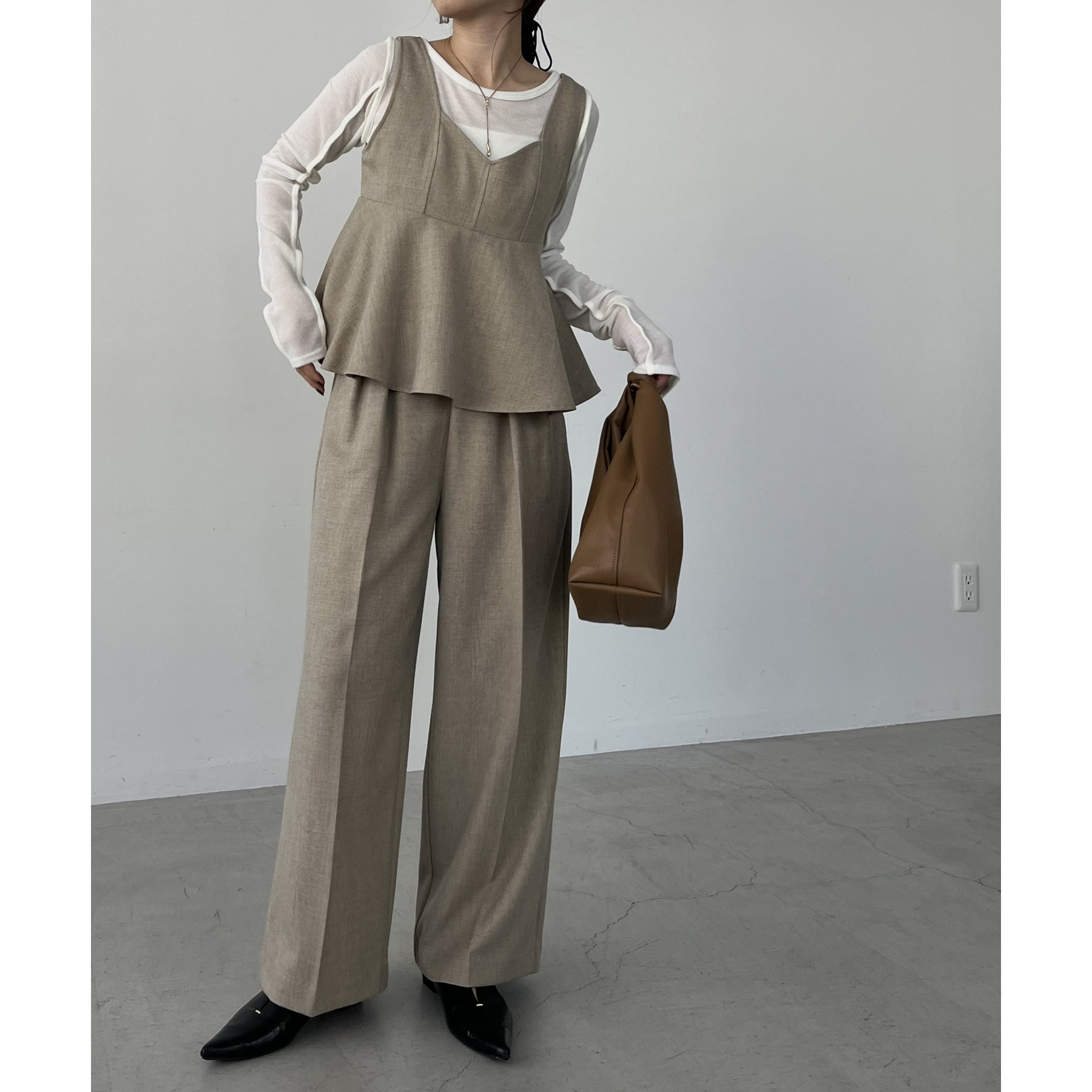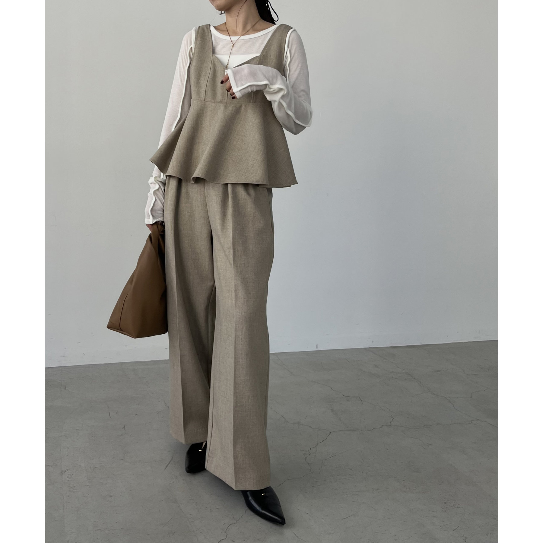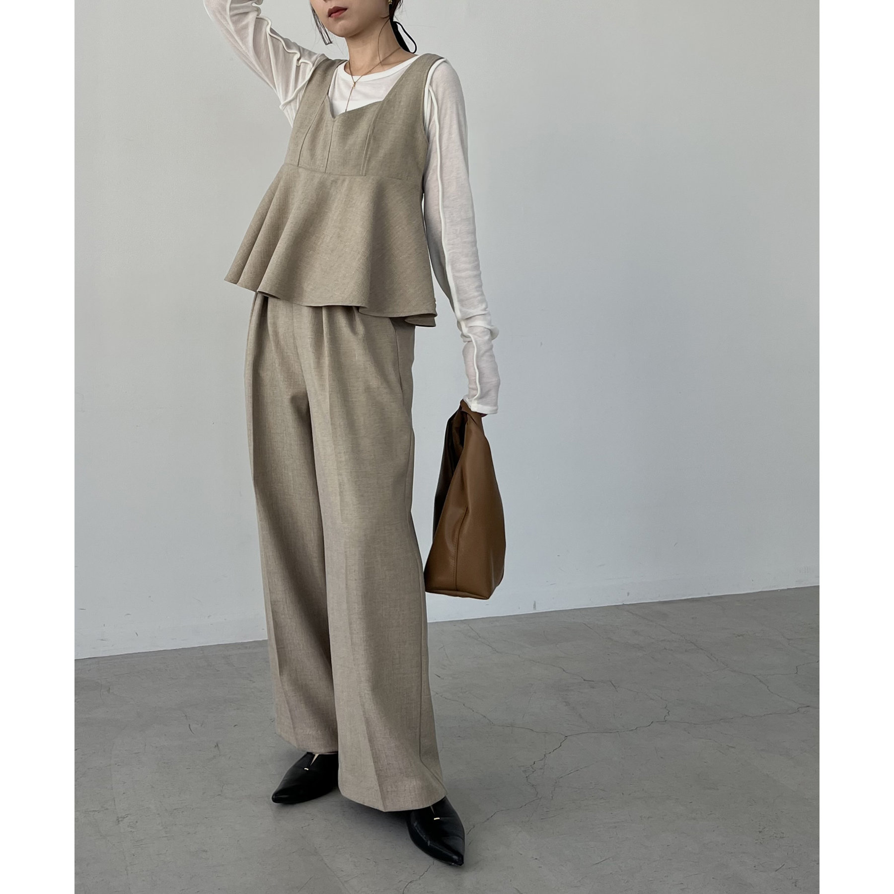 【ベージュ着用アイテム②】ペプラムトップス