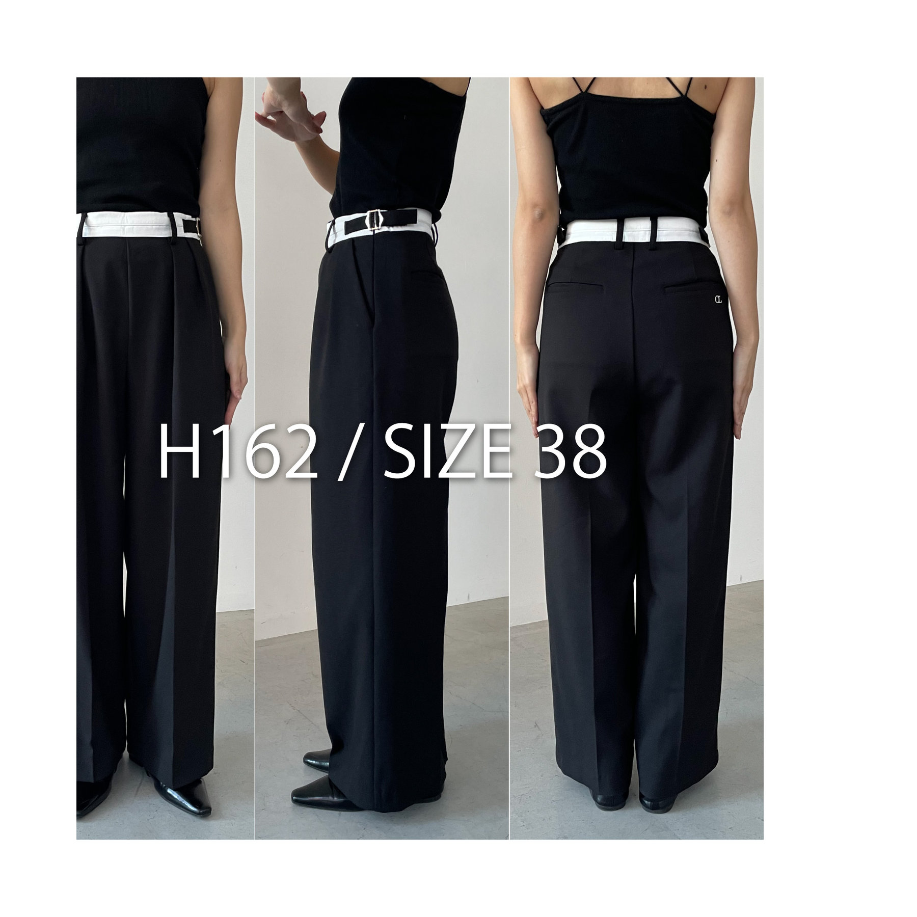 サイズ:38 ウエスト:64~70(ベルトを締めた際のサイズ) ヒップ:110 股上:32 股下:68.5 もも周り:- 裾周り:56