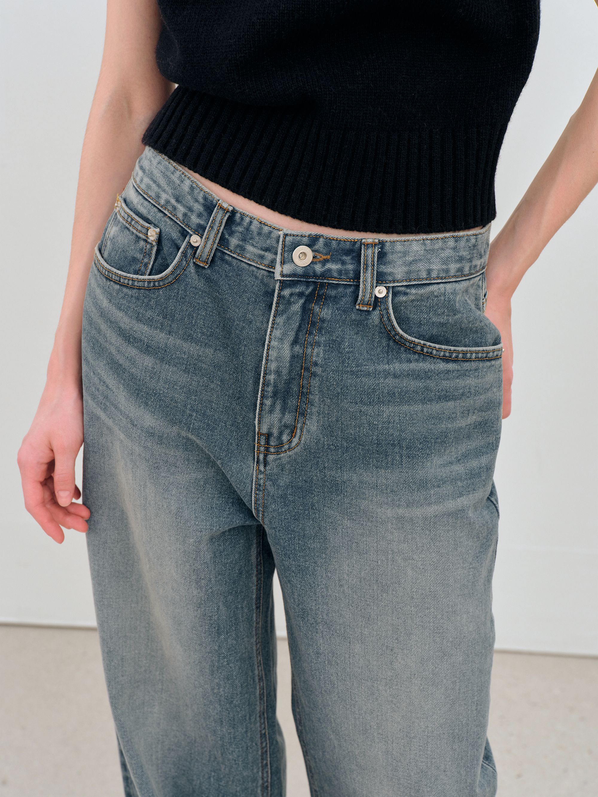 ・ヴィンテージライクなウォッシュ加工が魅力のワイドデニム