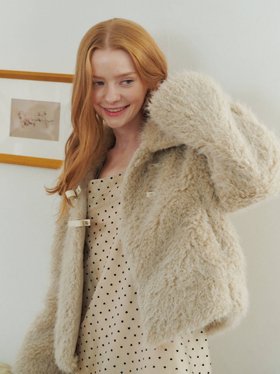 Ribbon buckle shearling fur jacket_Beige