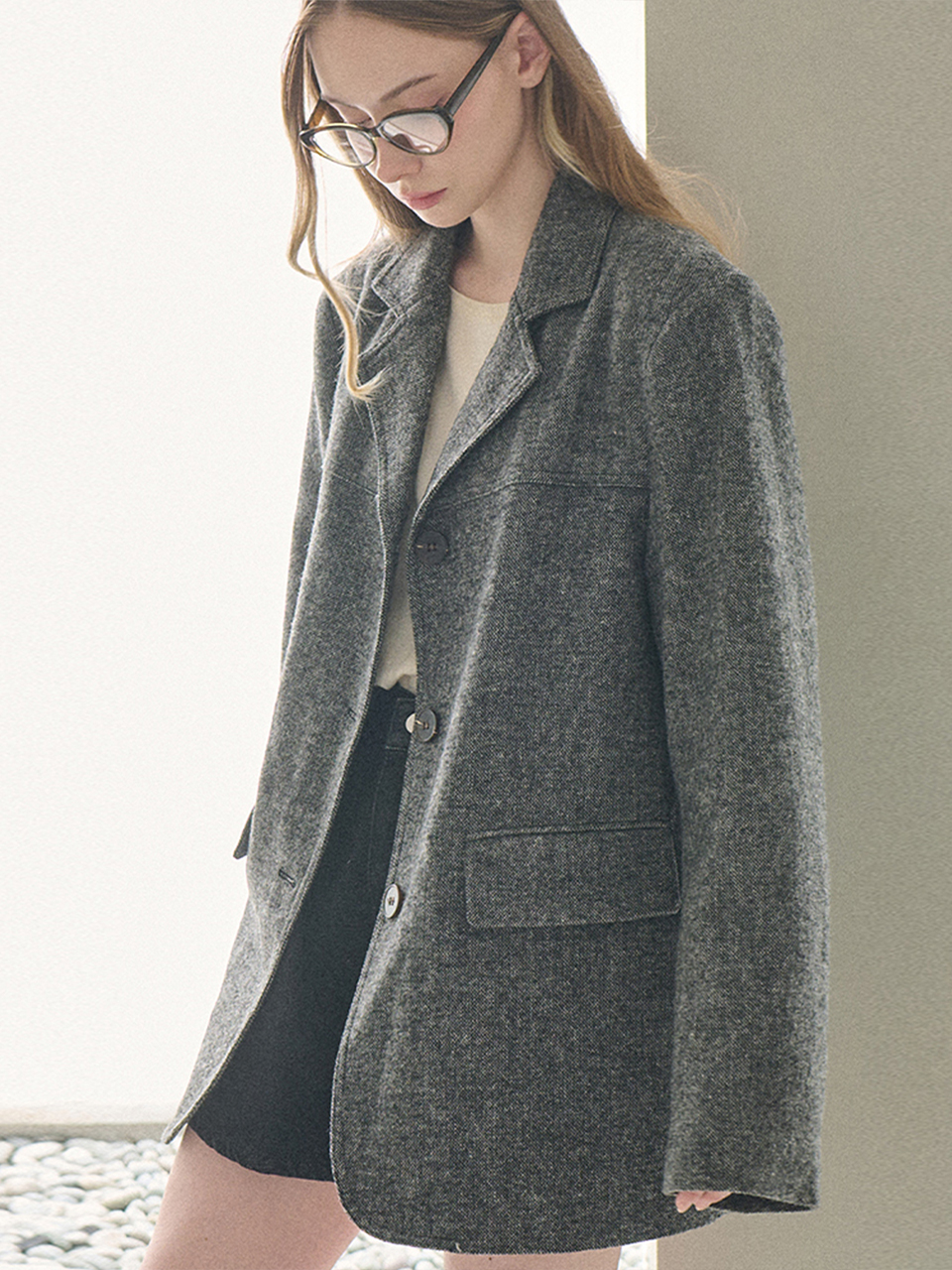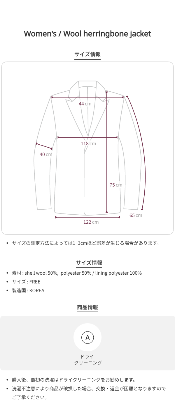 [Wool 50%] Wool herringbone jacket