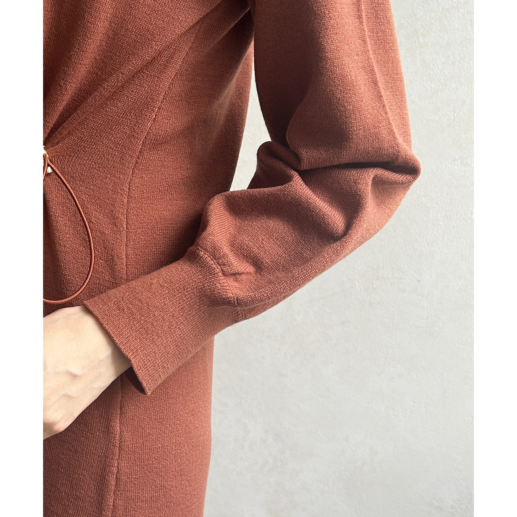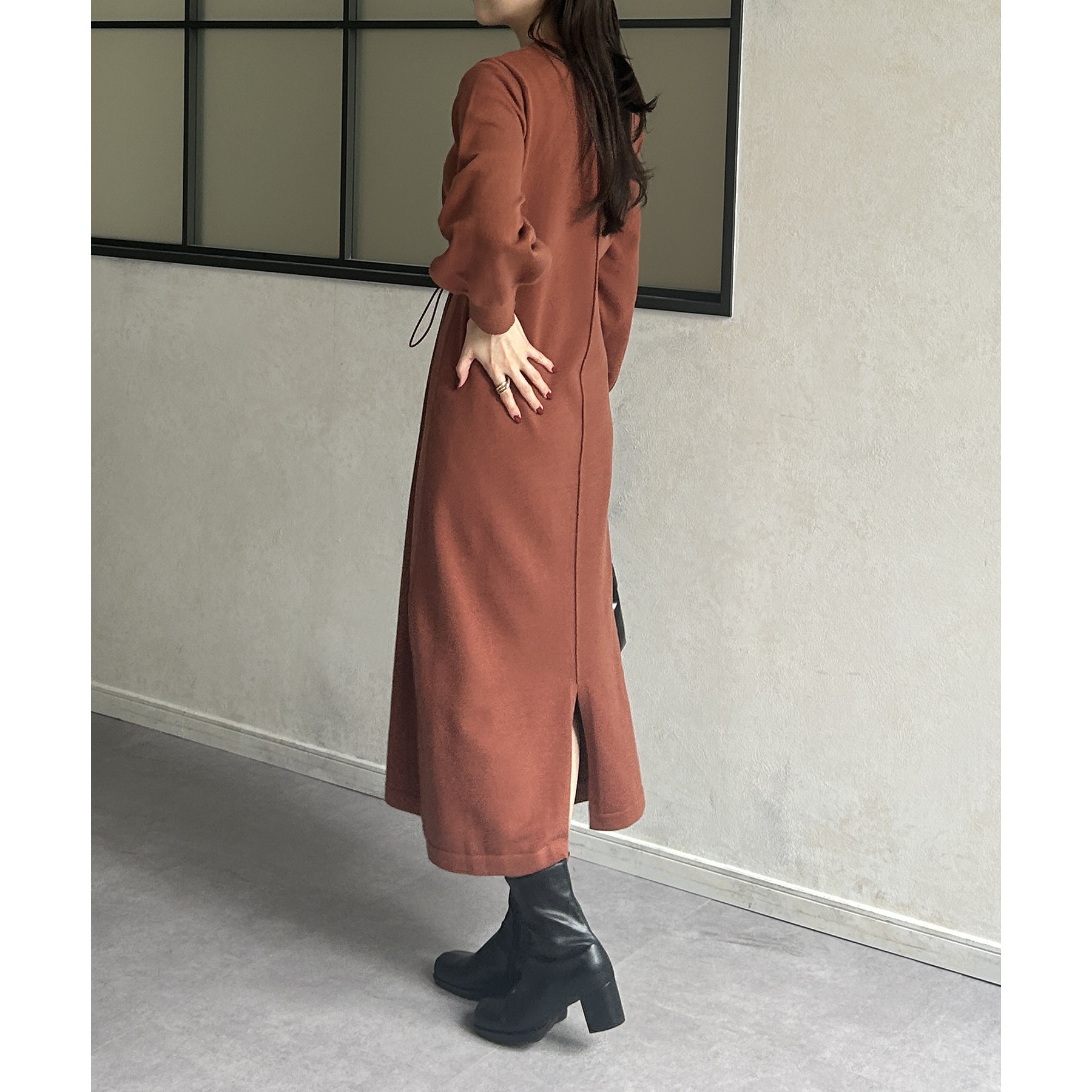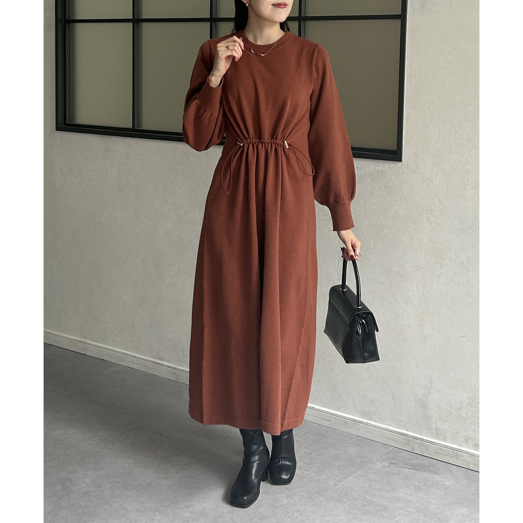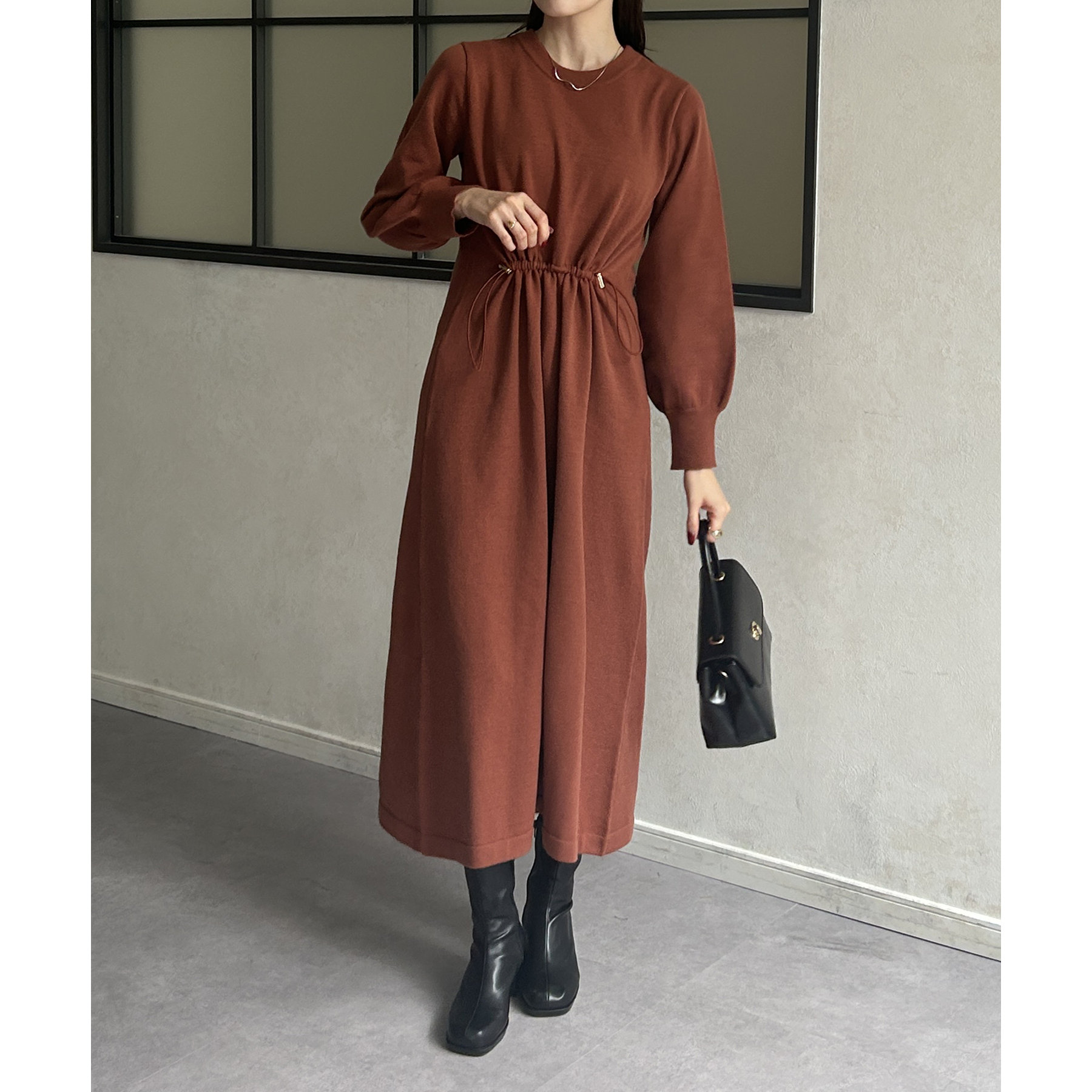 ウエストドロスト袖ボリュームニットワンピース